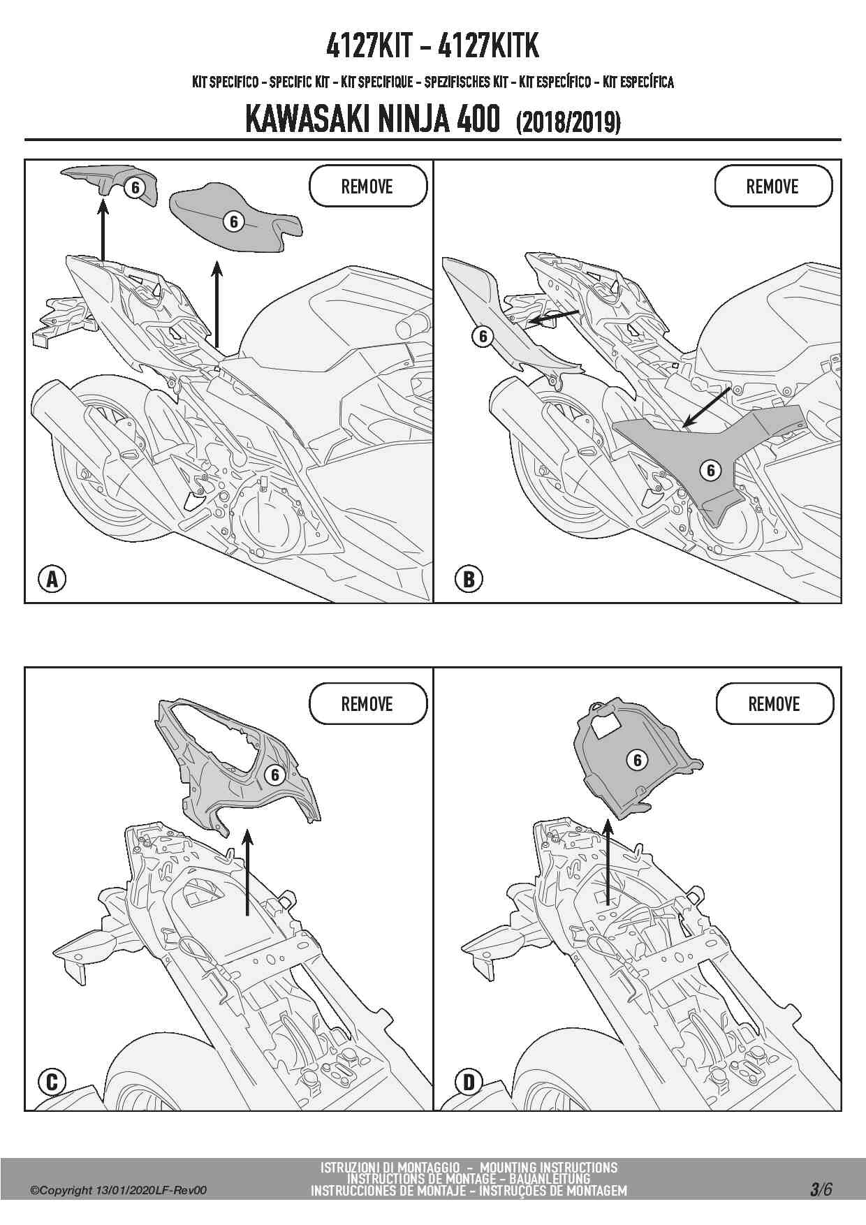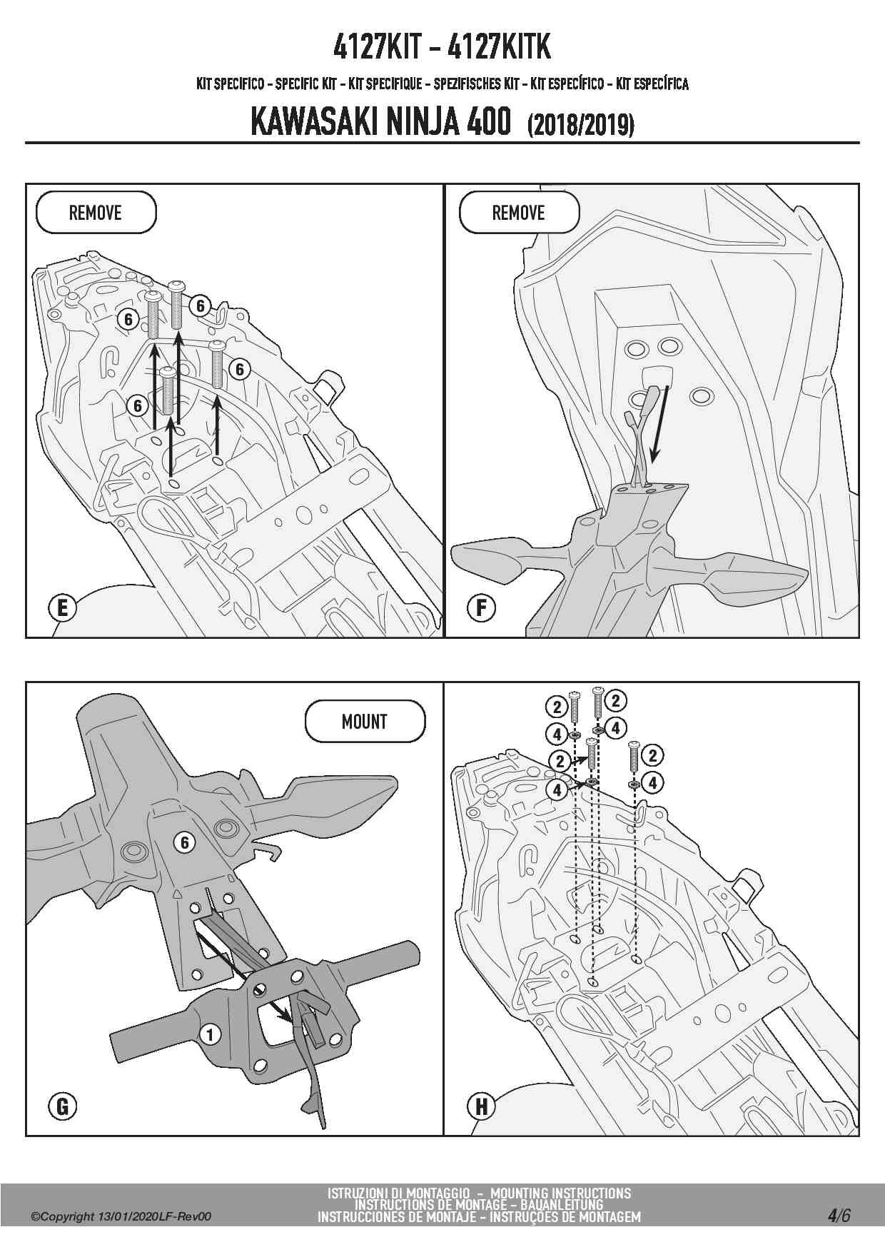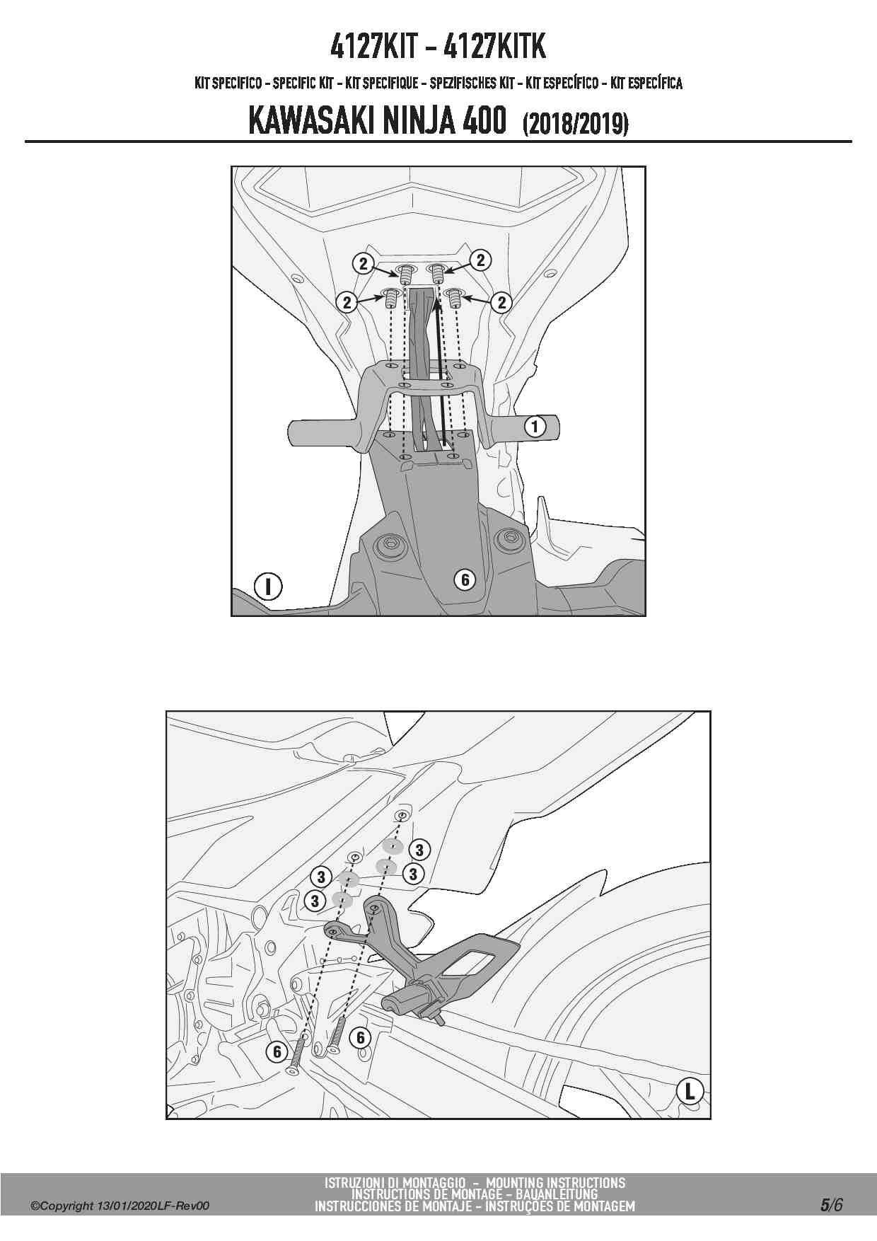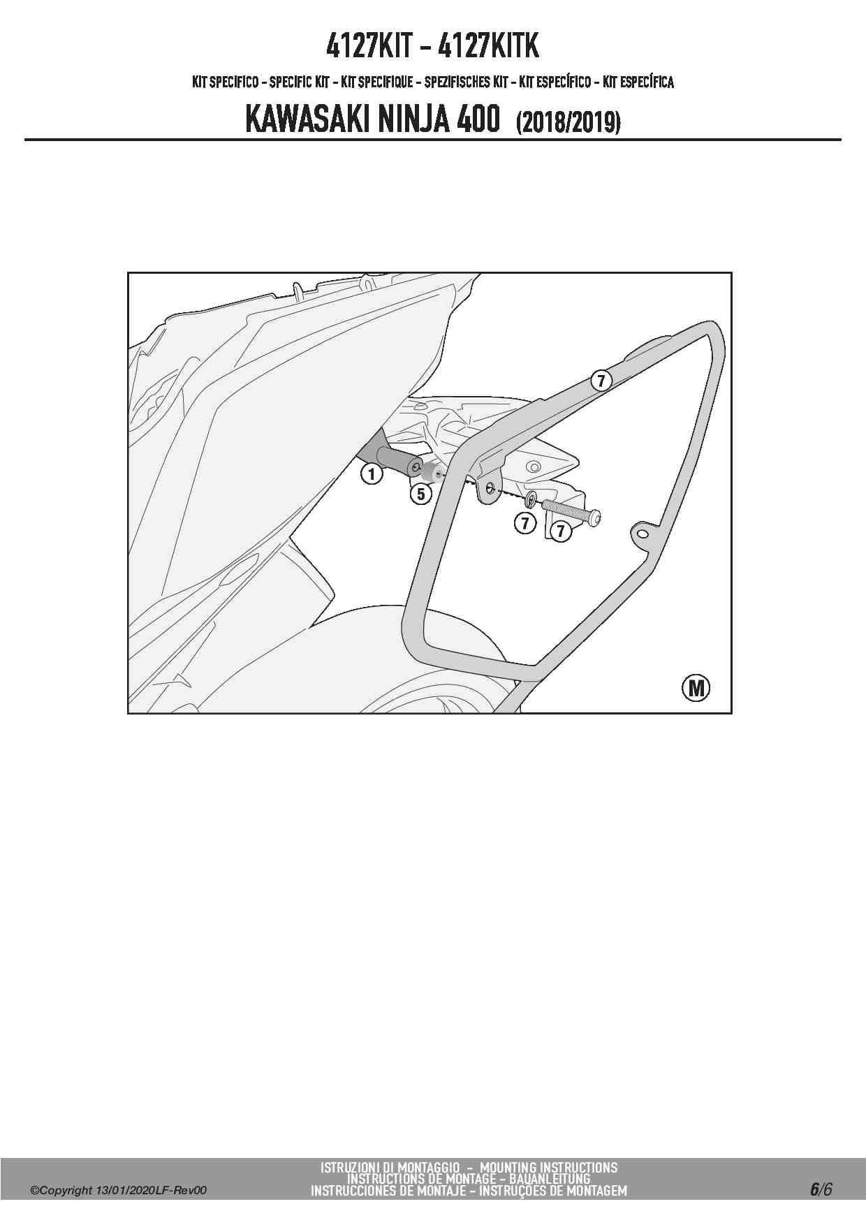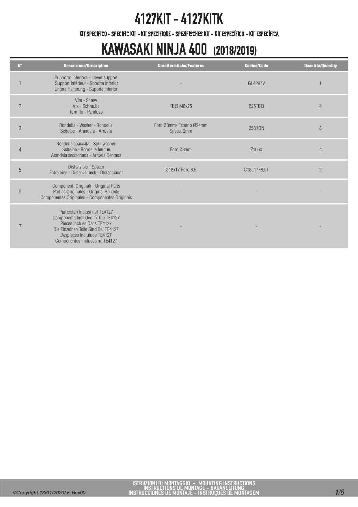 Kit montażowy Kappa 4127KITK do stelaża bocznego TE4127K bez stelaża centralnego KZ4127/KZ4129 - Kawasaki Ninja 400 (18-22) / Z 400 (19-22)