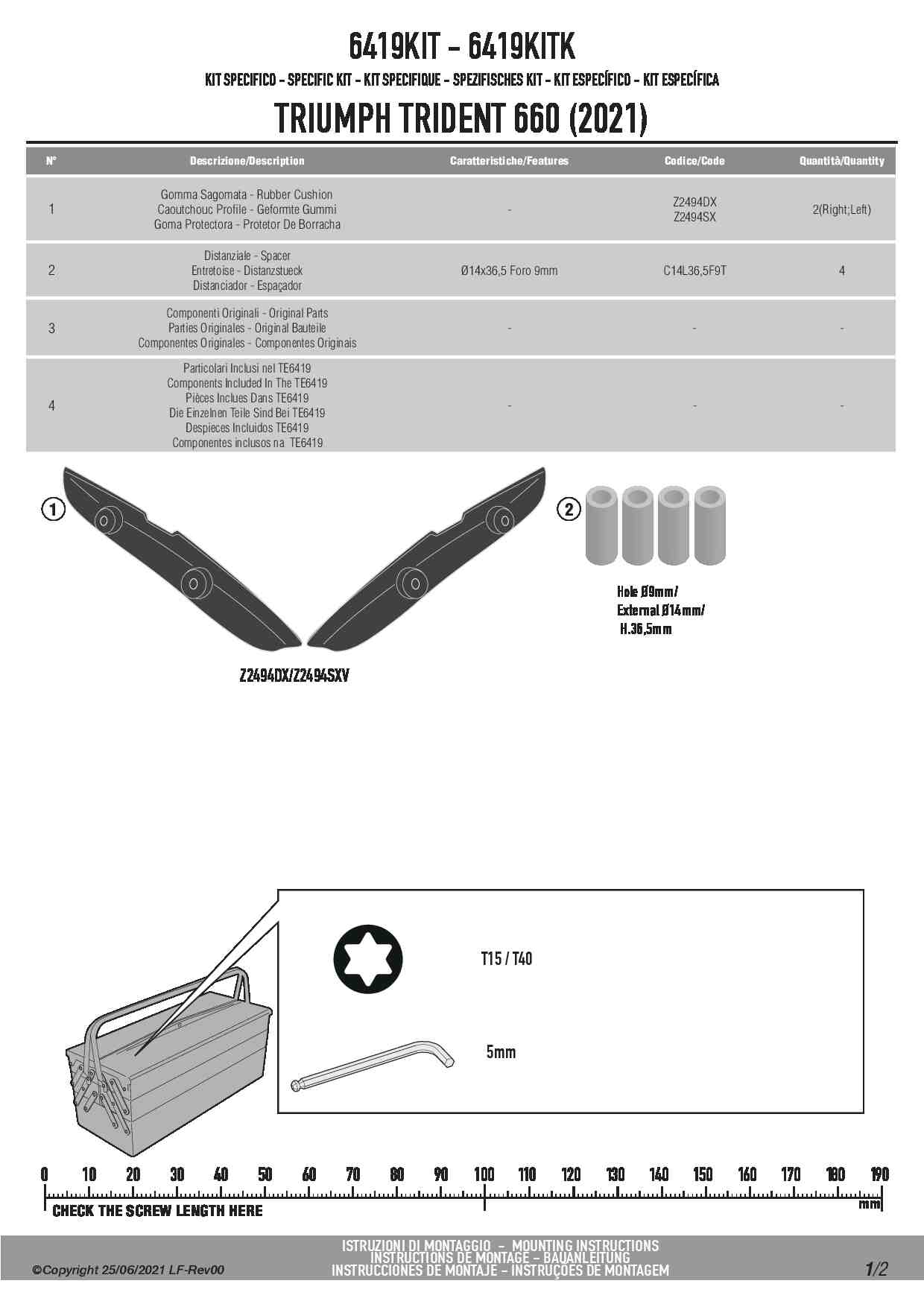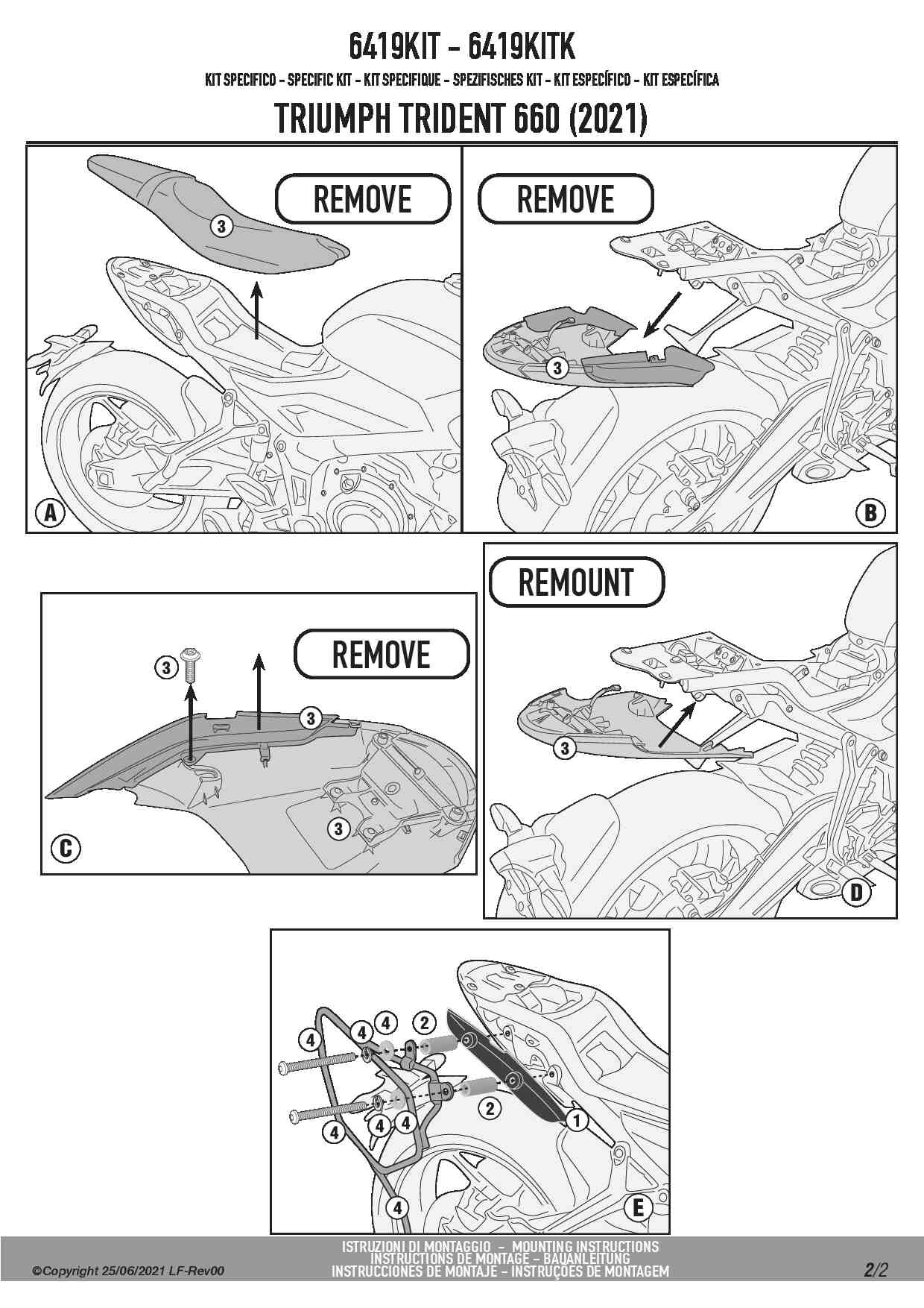 Specjalny zestaw umożliwiający zamontowanie stelaży bocznych pod sakwy TE6419K bez stelaża centralnego KR6419. Dedykowany do motocykla Triumph Trident 660.