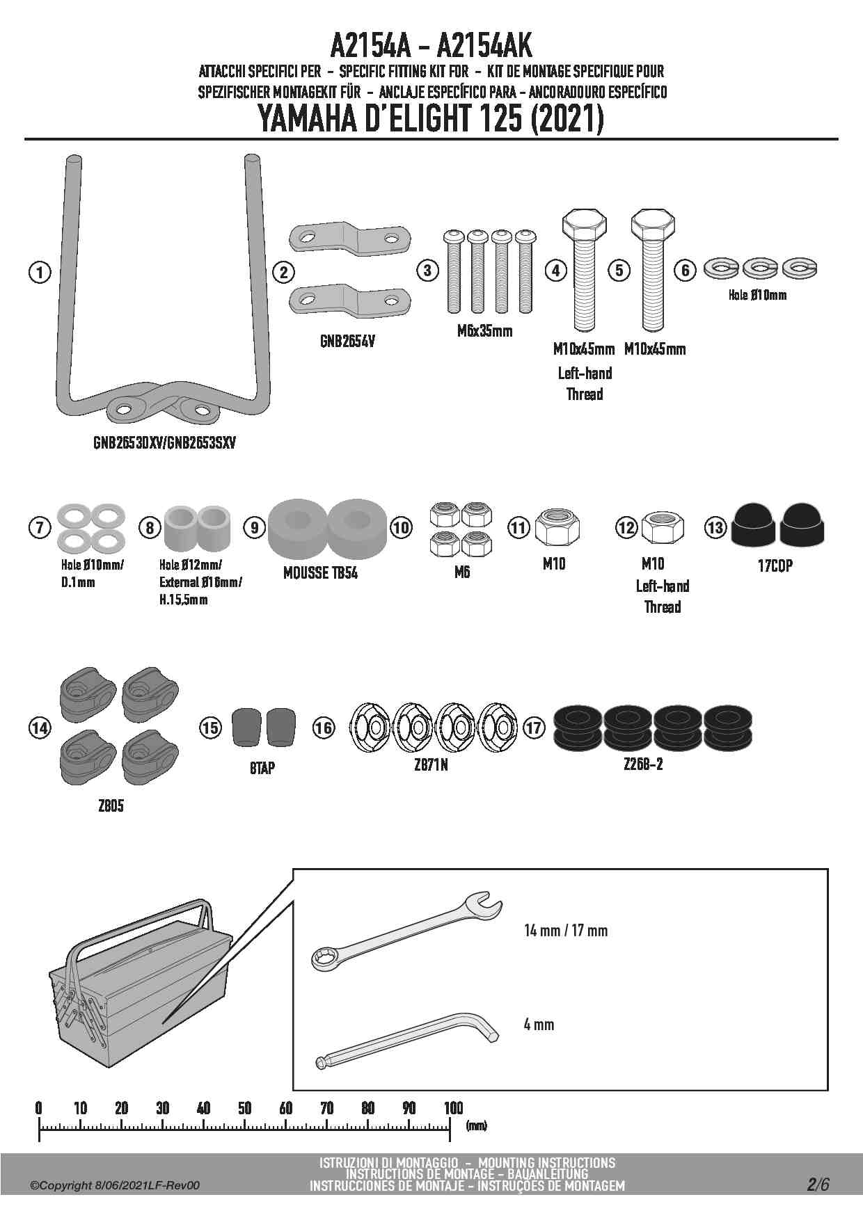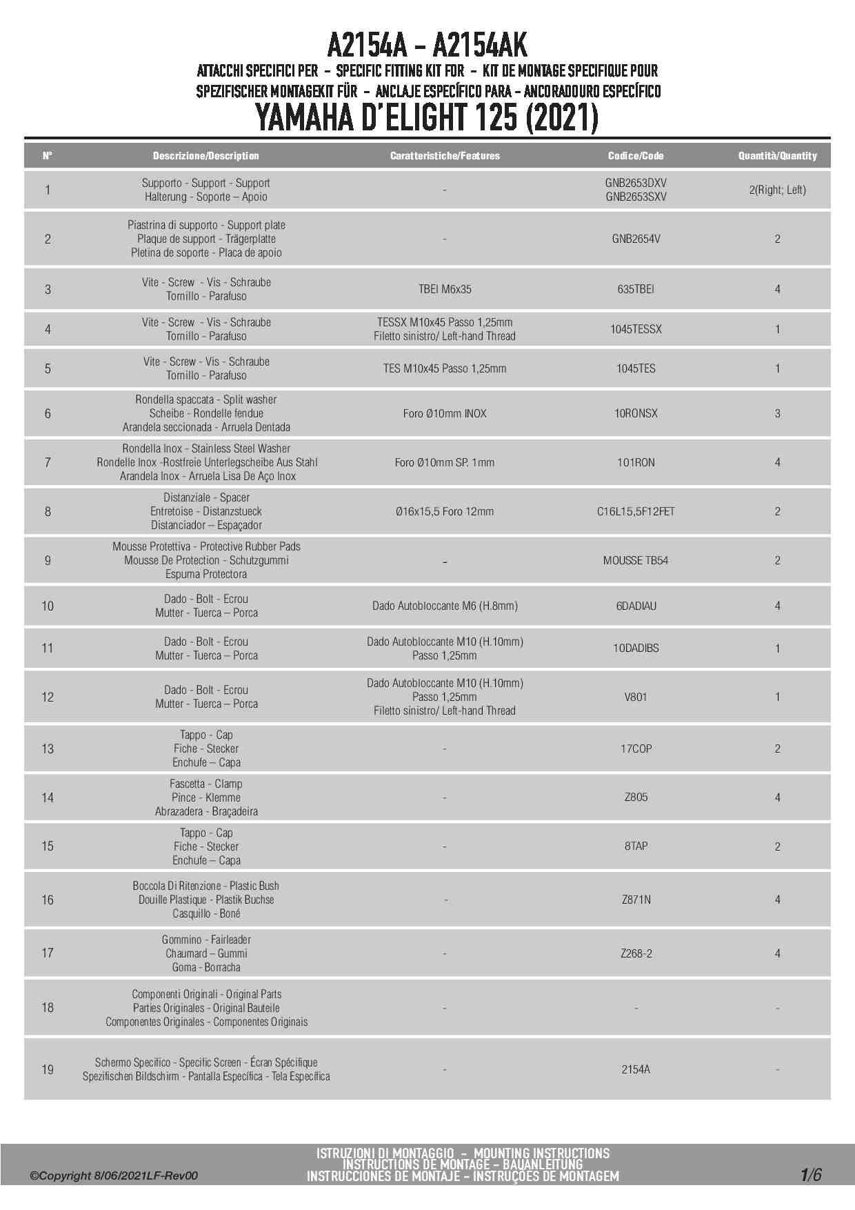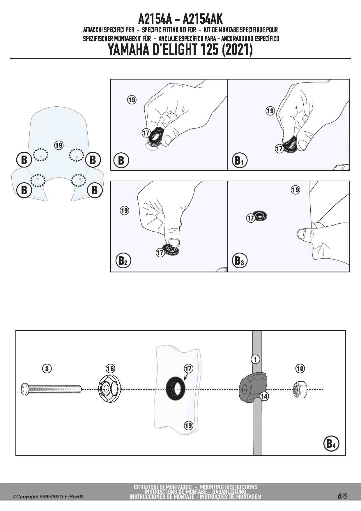 Dedykowany kit montażowy, który umożliwia zamontowanie szyby Kappa 2154AK na skuterze Yamaha Delight 125.