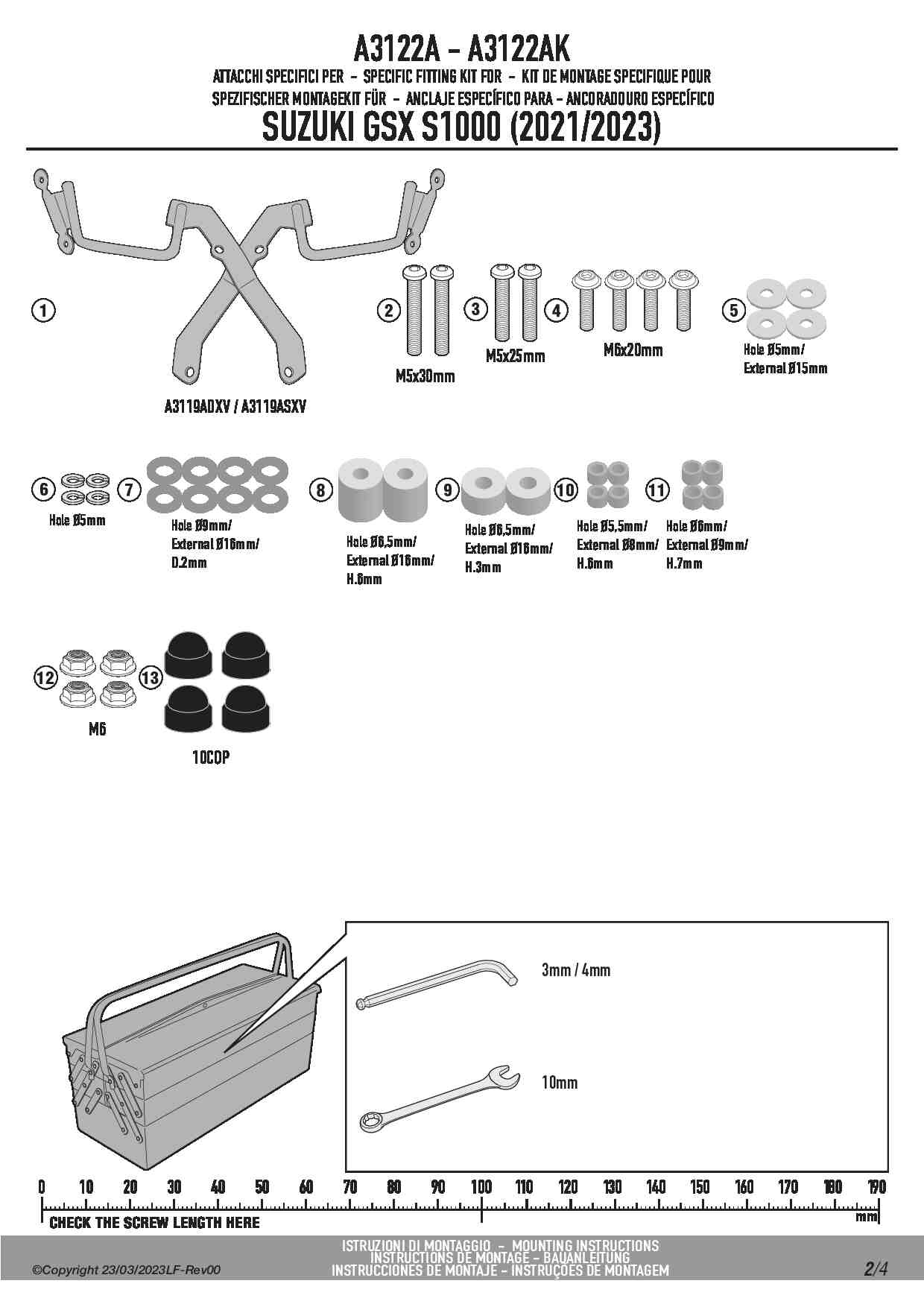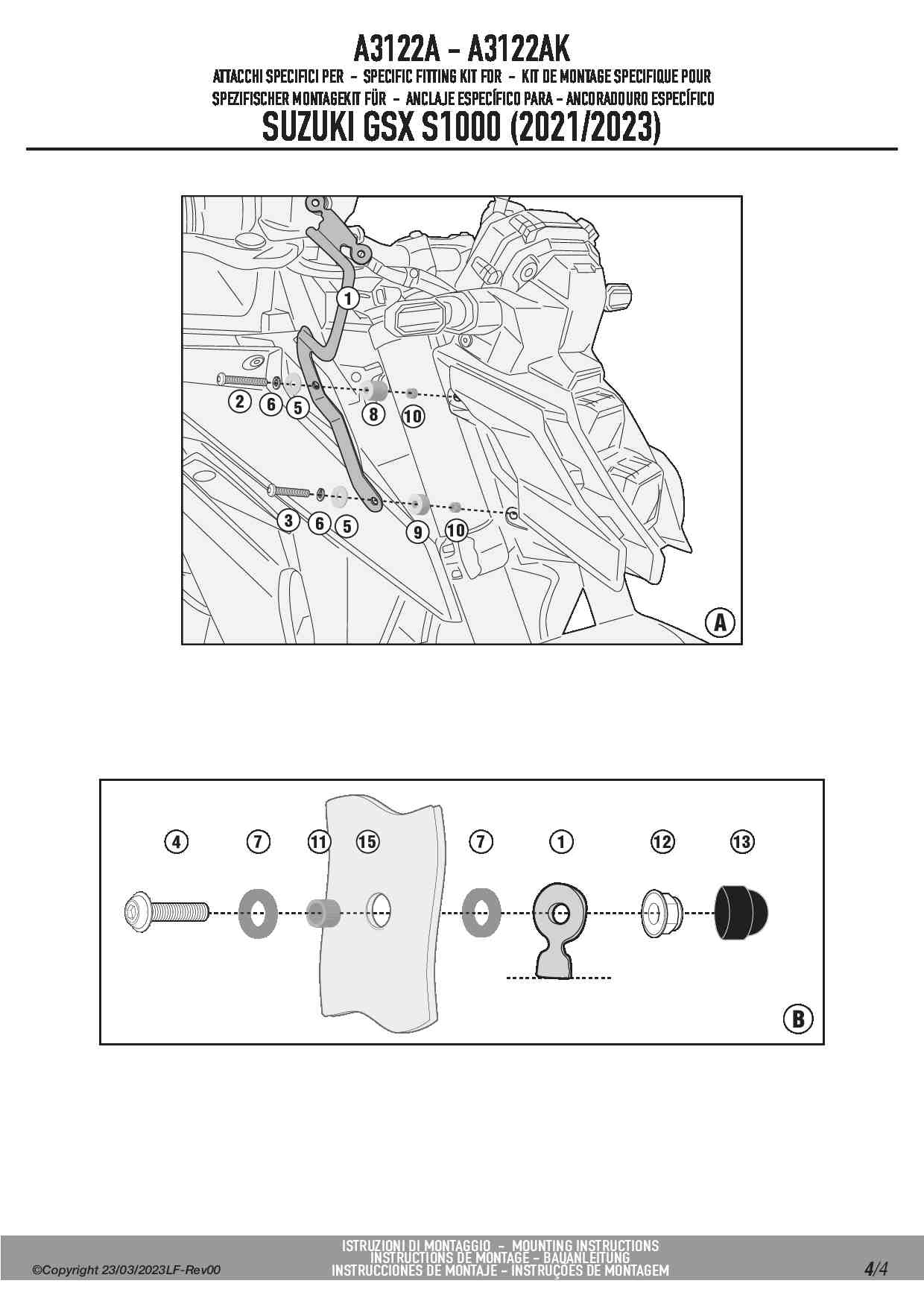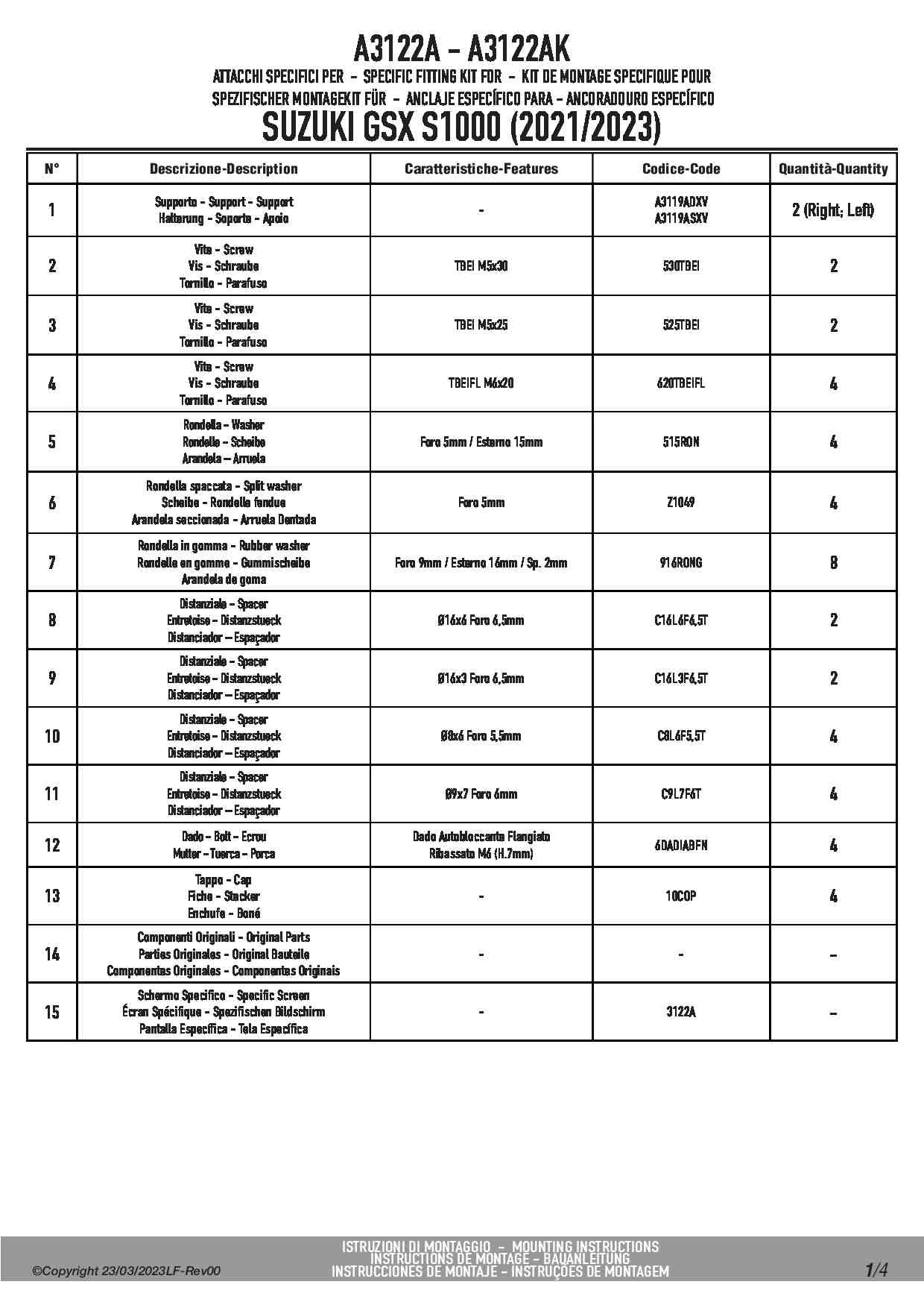 Dedykowany kit montażowy, który umożliwia zamontowanie szyby Kappa 3122SK na motocyklu Suzuki GSX S1000.