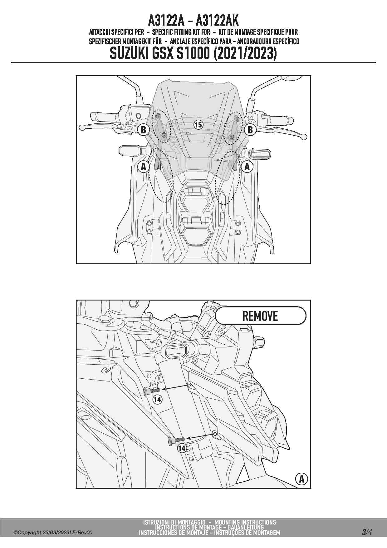 Kappa A3122AK Kit montażowy do szyby 3119SK Suzuki GSX S1000 (21-25)