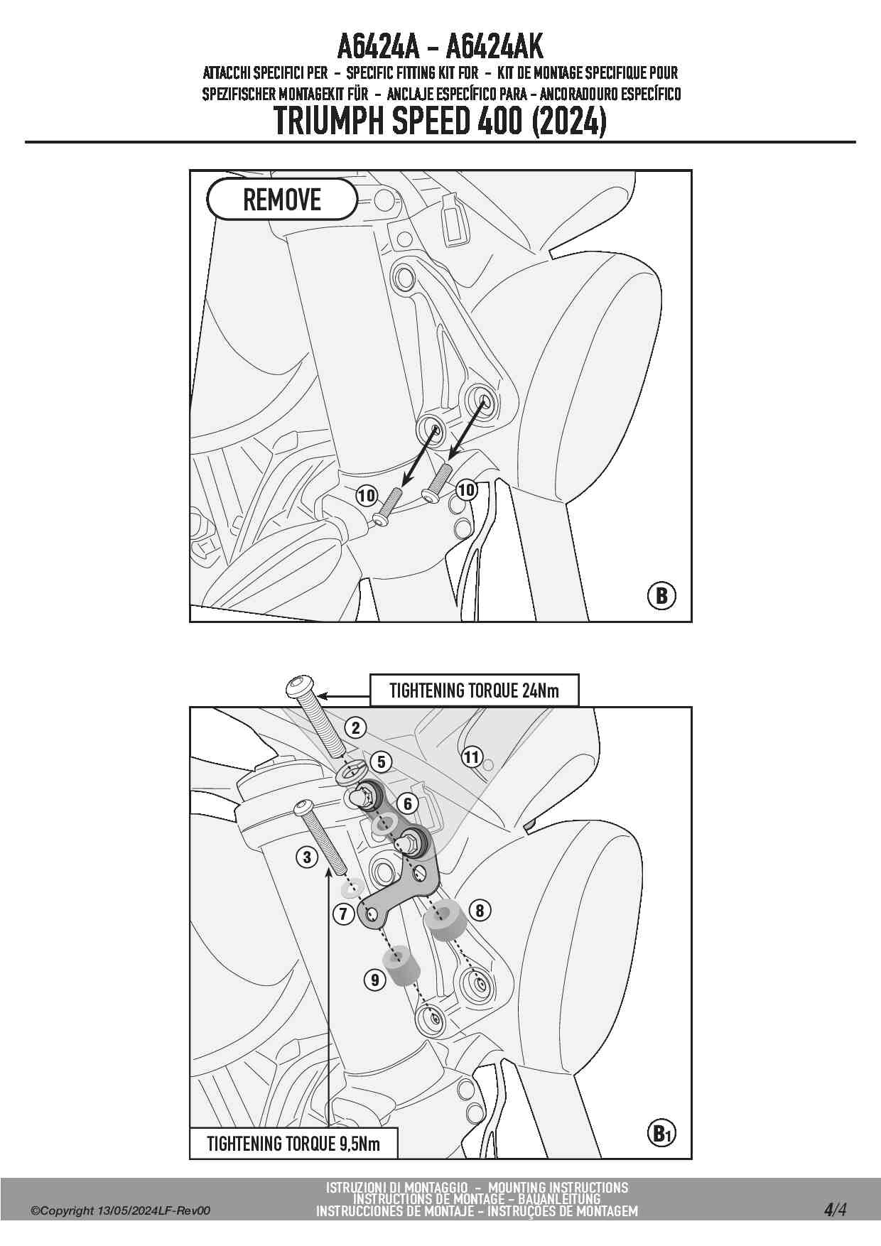 Kappa A6424AK Kit montażowy do szyby KA201 Triumph Speed 400 (24-25)