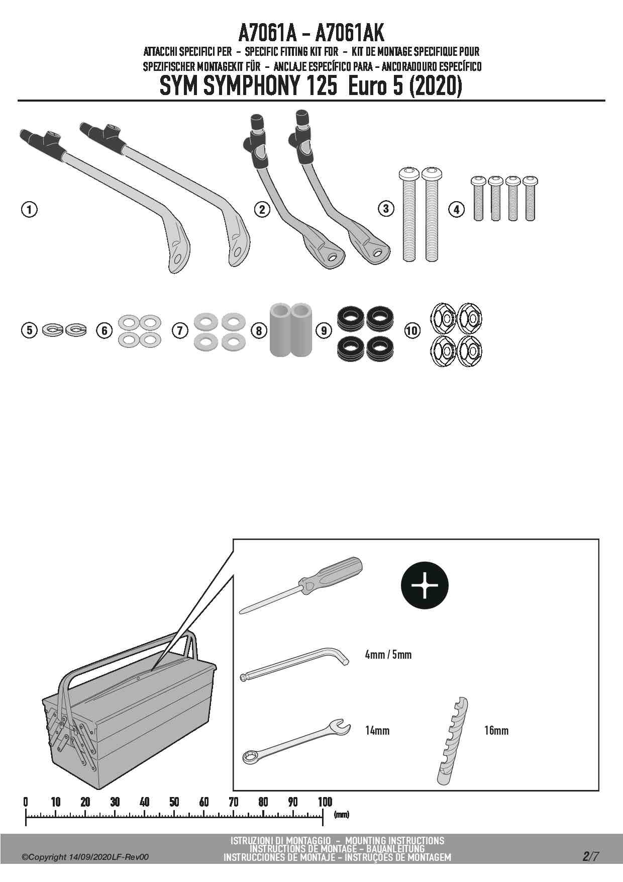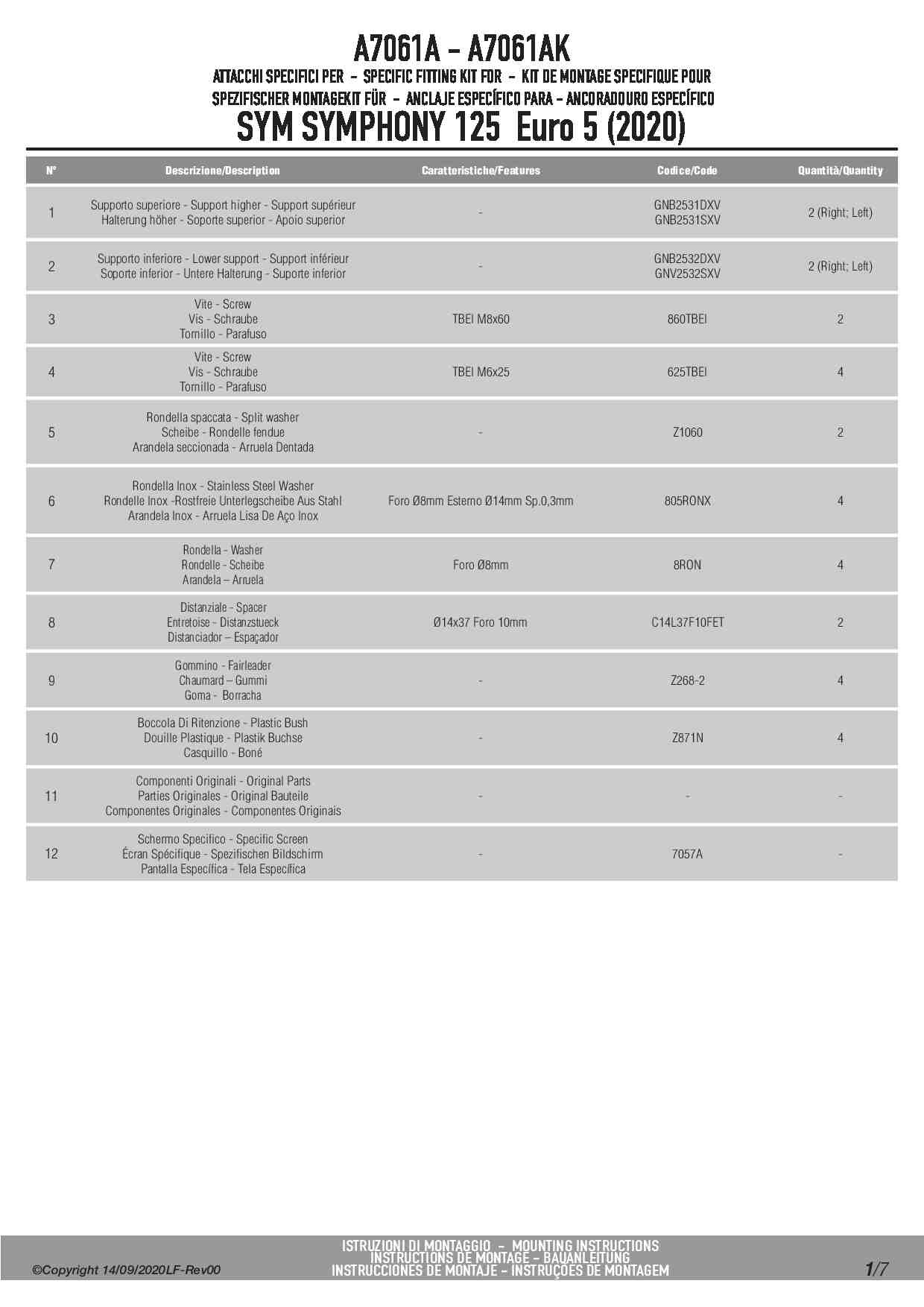 Dedykowany kit montażowy, który umożliwia zamontowanie szyby Kappa 7057AK na skuterze Sym Symphony 125 Euro 5 (20).