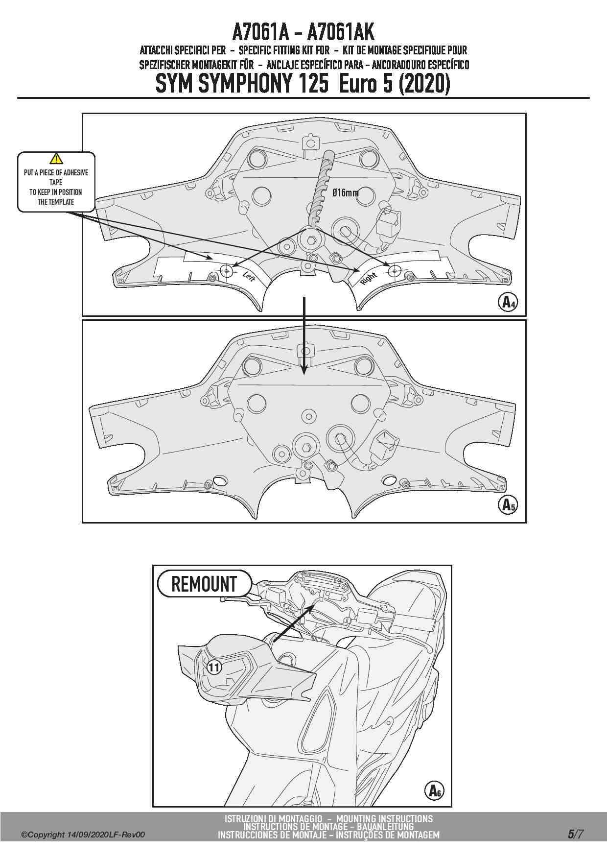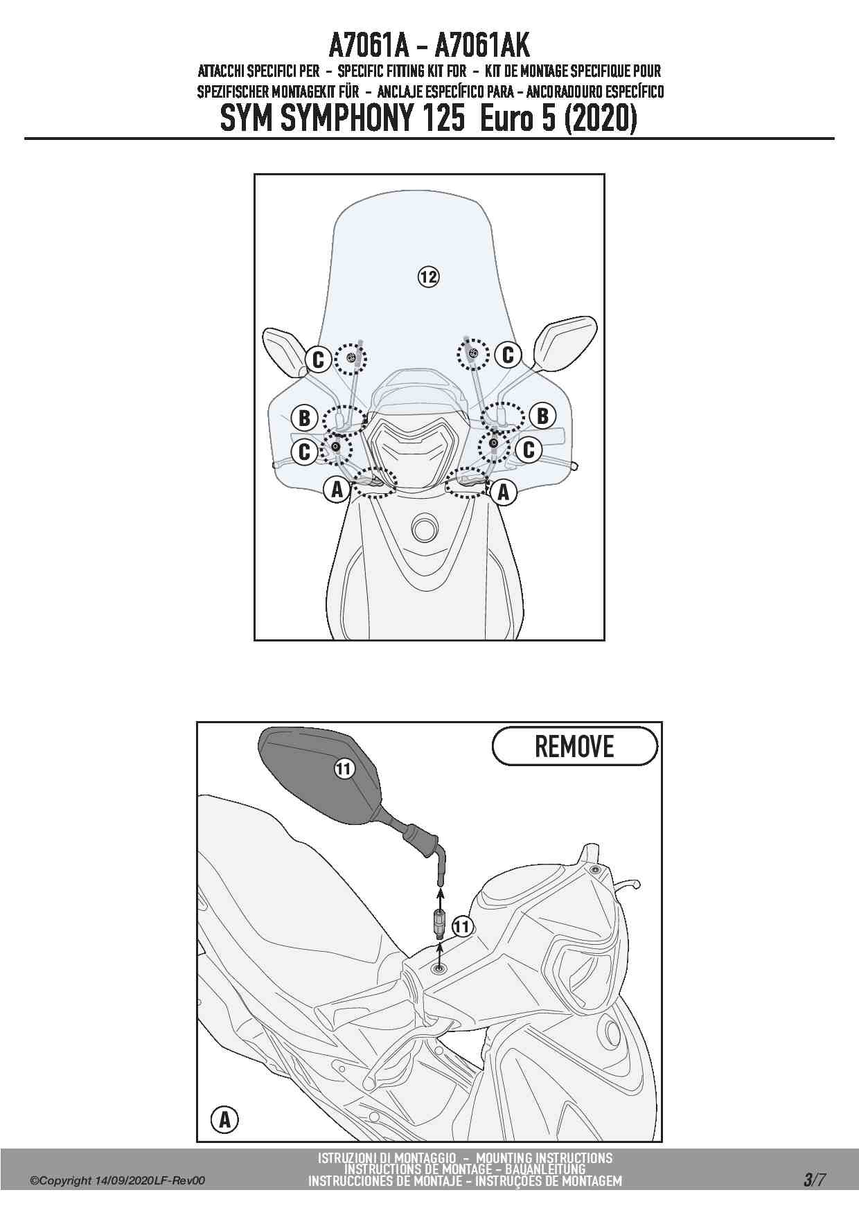Kappa A7061AK Kit montażowy do szyby 7057AK Sym Symphony 125 Euro 5 (20)