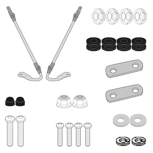 Dedykowany kit montażowy, który umożliwia zamontowanie szyby Kappa KD1181ST na skuterze NIU MQi GT.