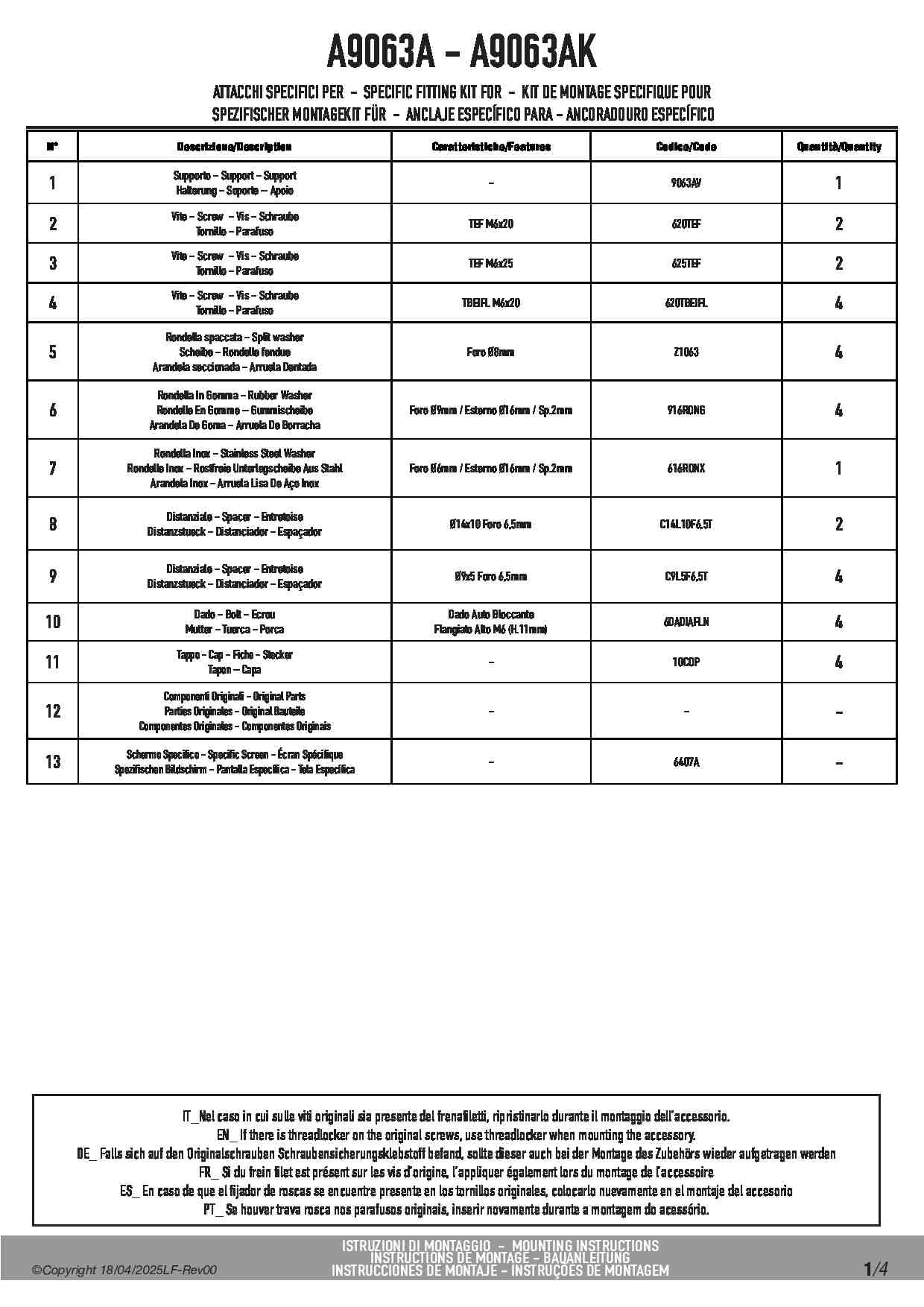 Zestaw montażowy Kappa A9063AK