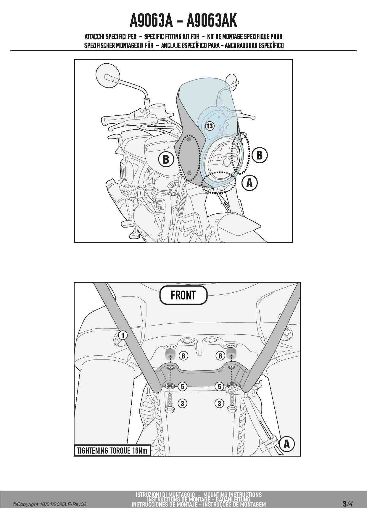 Dedykowany kit montażowy, który umożliwia zamontowanie szyby Kappa 6407AK do motocykla Royal Enfield Bear 650.