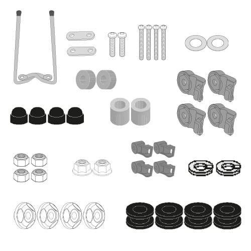 Dedykowany kit montażowy, który umożliwia zamocowanie szyby Kappa KD1181ST do skutera Sunra Robo-S.