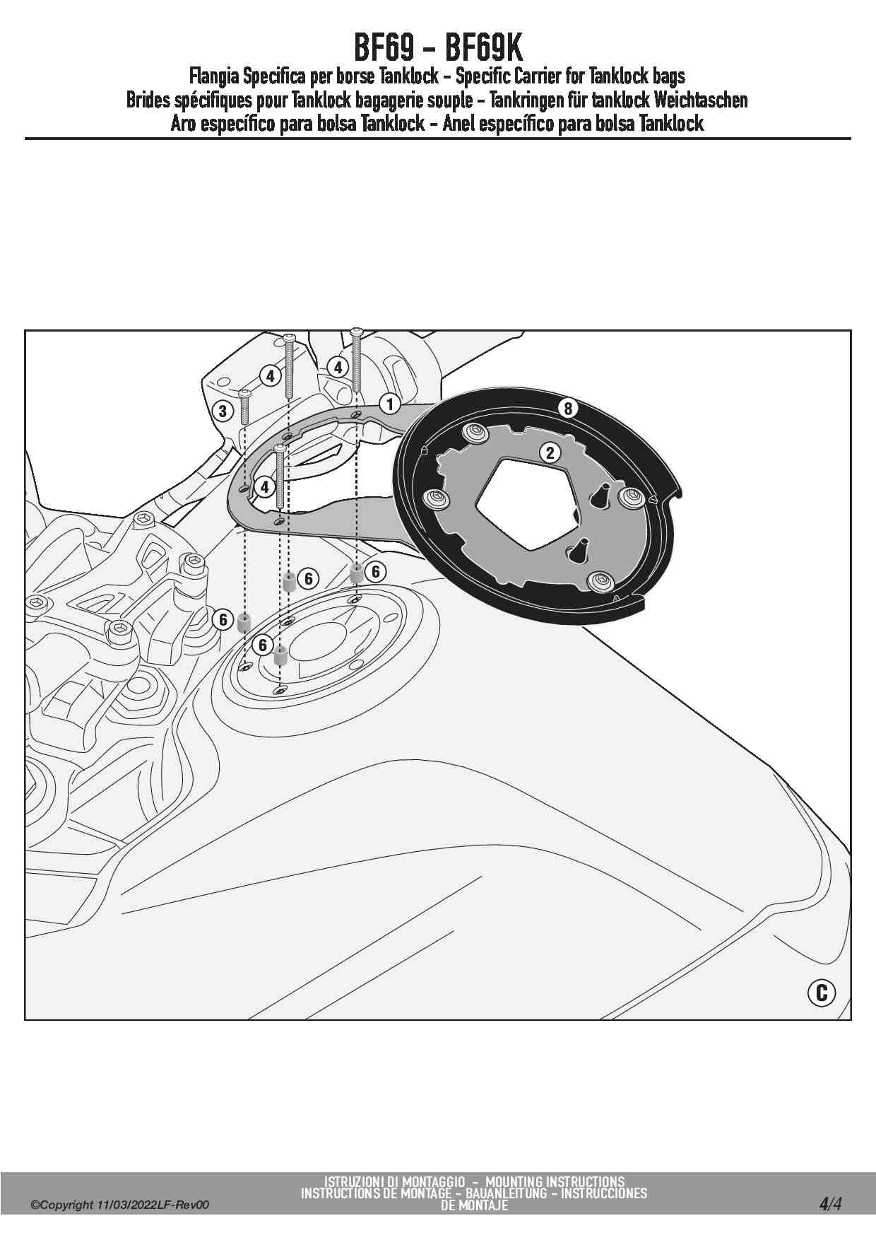 Mocowanie torby w systemie TANKLOCK na korek wlewu paliwa Kappa BF69K do motocykla Triumph Tiger Sport 660 (22-25) / 800 (25)