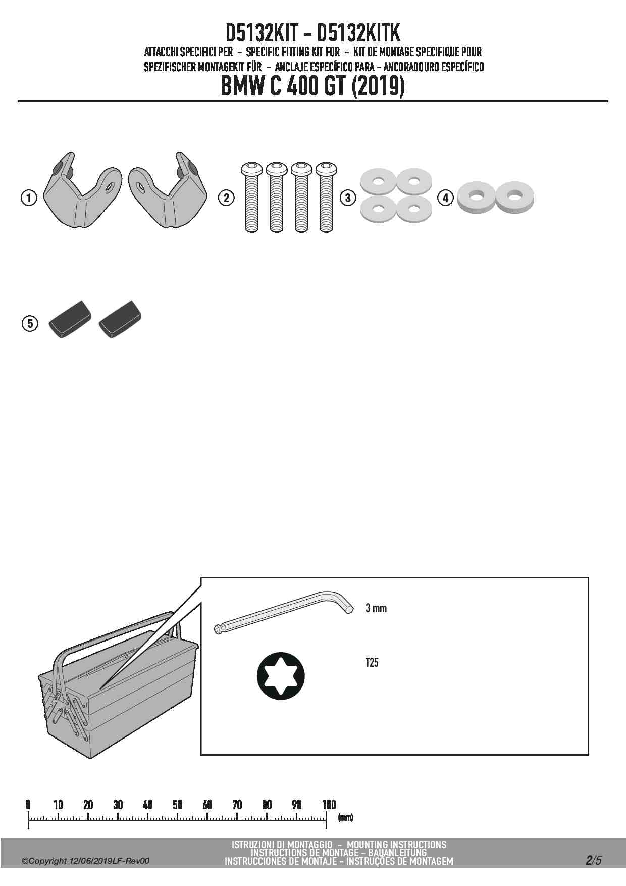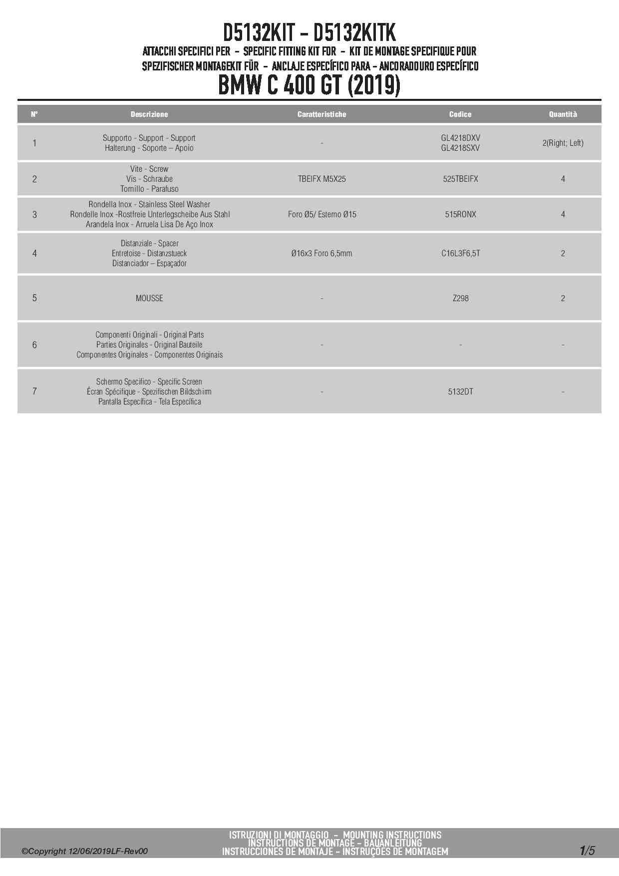 Dedykowany kit montażowy, który umożliwia zamontowanie szyby Kappa 5132DTK na skuterze BMW C 400 GT (19-24).