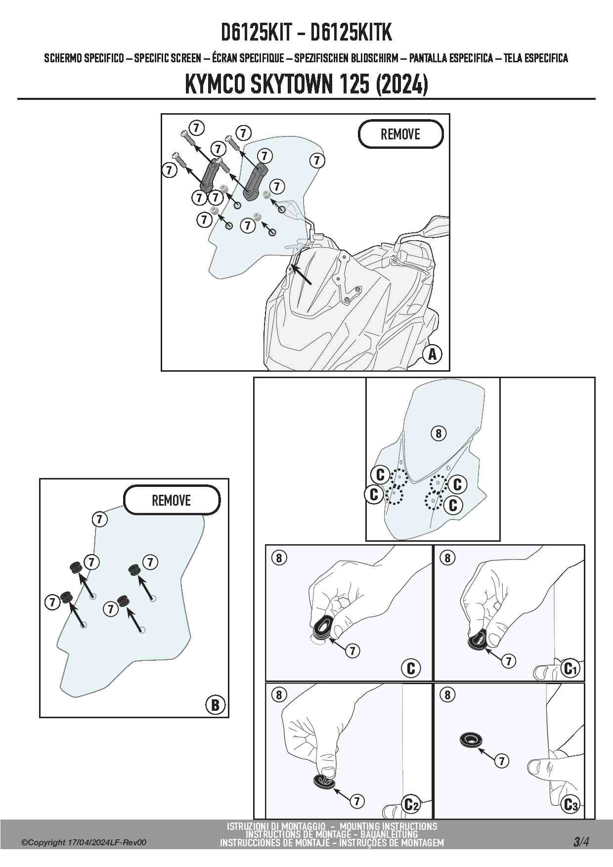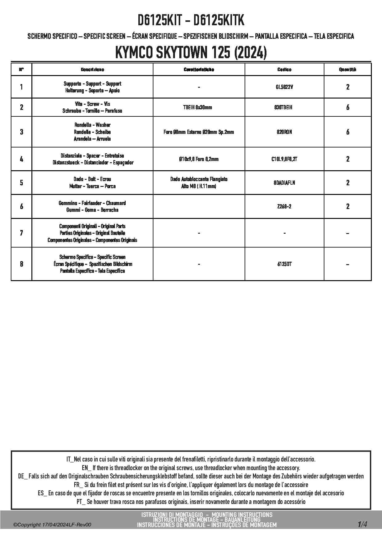 Dedykowany kit montażowy, który umożliwia zamontowanie szyby Kappa 6125DTK na skuterze Kymco Skytown 125.