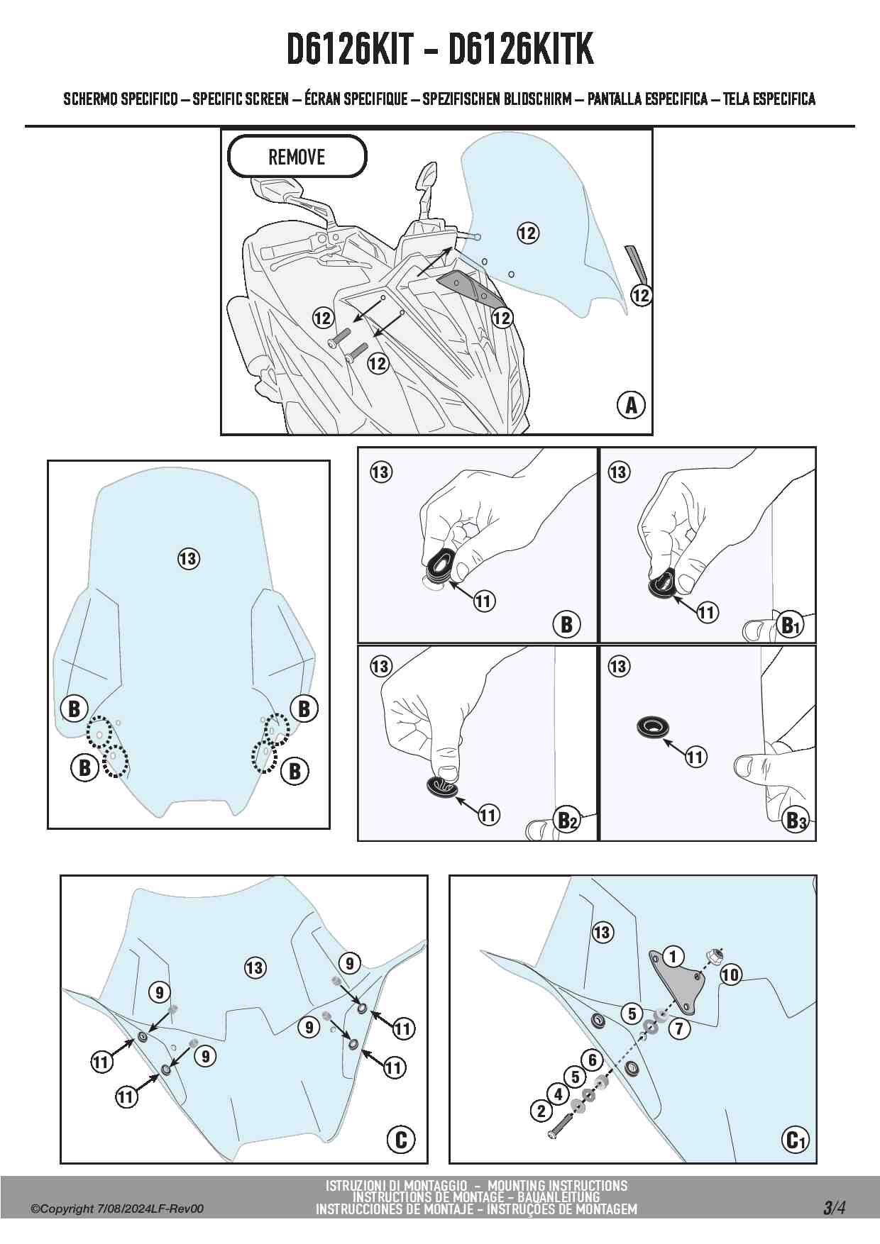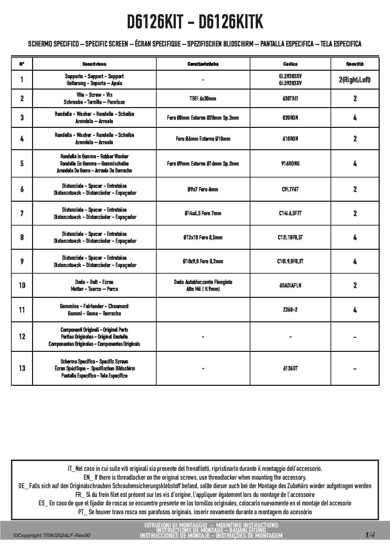 Dedykowany kit montażowy, który umożliwia zamontowanie szyby Kappa 6126DTK na skuterze Kymco Downtown 350 GT.