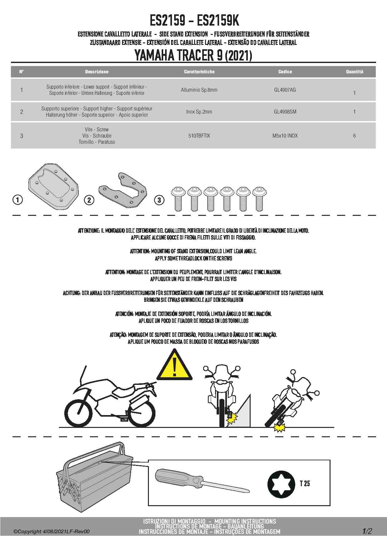 Poszerzenie stopki bocznej Kappa ES2159K do motocykla Yamaha Tracer 9 / GT/GT+ (21-24)