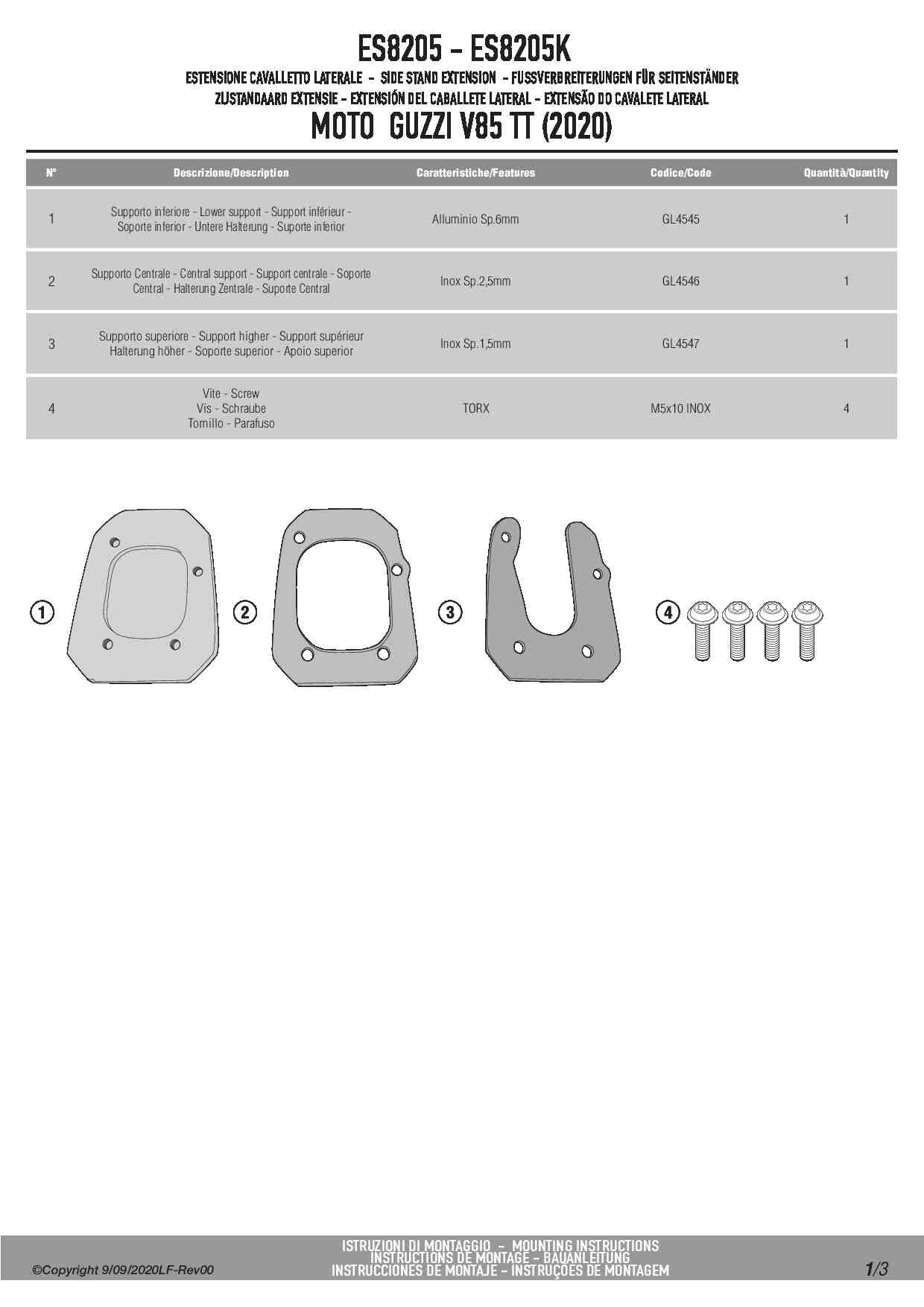 Kappa ES8205K Poszerzenie stopki bocznej Moto Guzzi V85 TT (20-25)