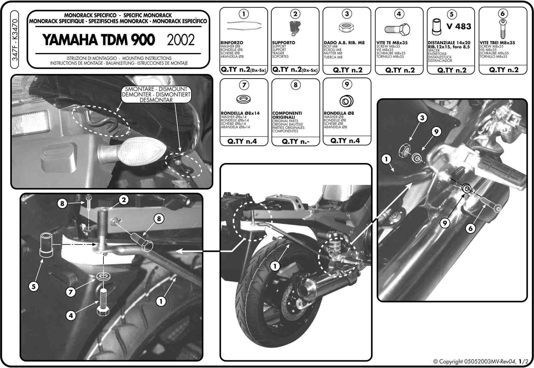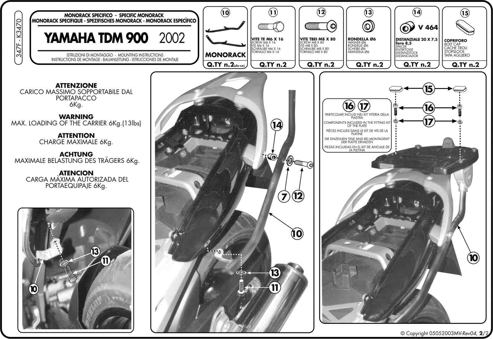 Stelaż kufra centralnego Kappa K3470 do motocykla Yamaha TDM 900 (02-14)