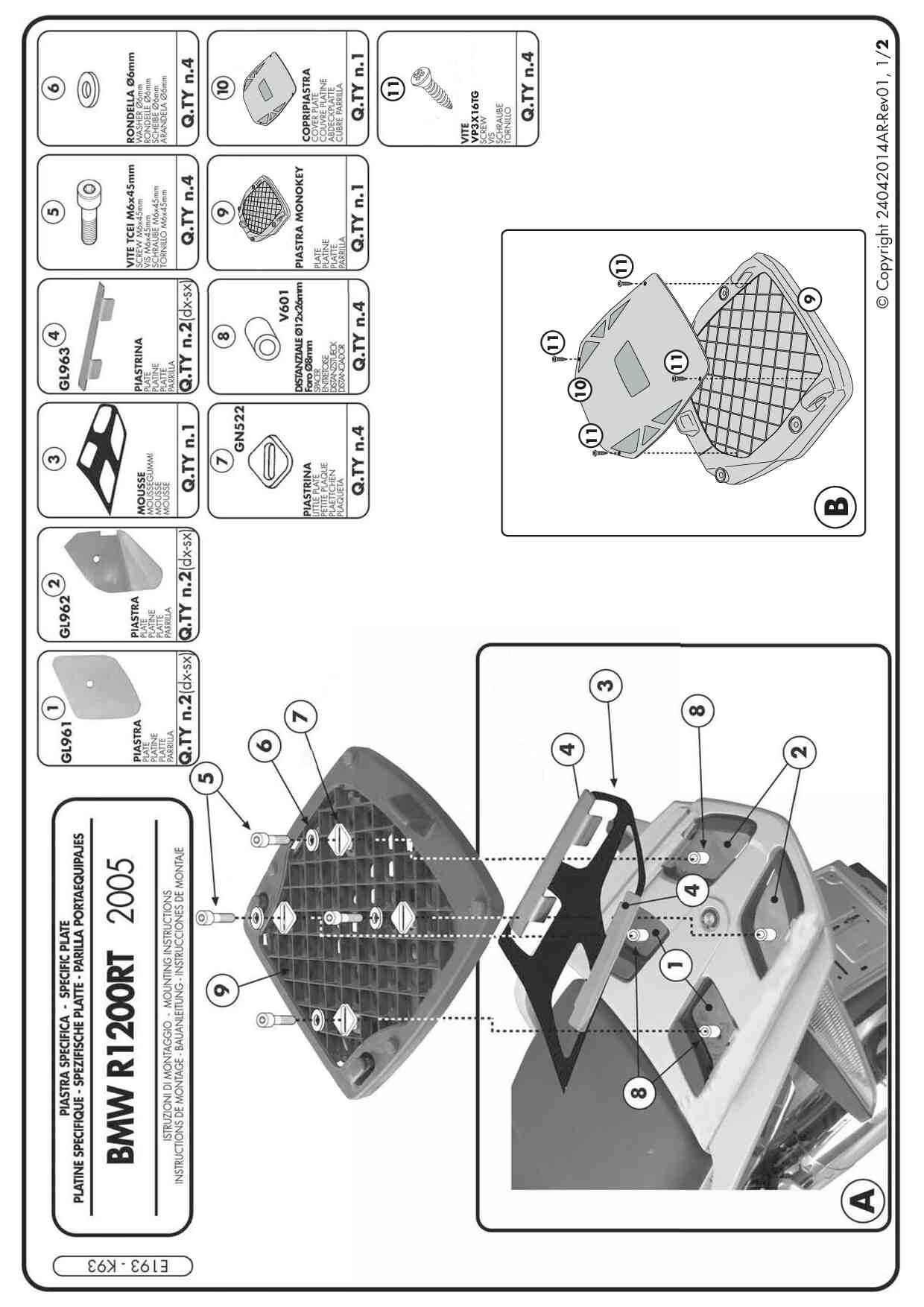Stelaż kufra centralnego Kappa K93 do motocykla BMW R 1200 RT (05-13)