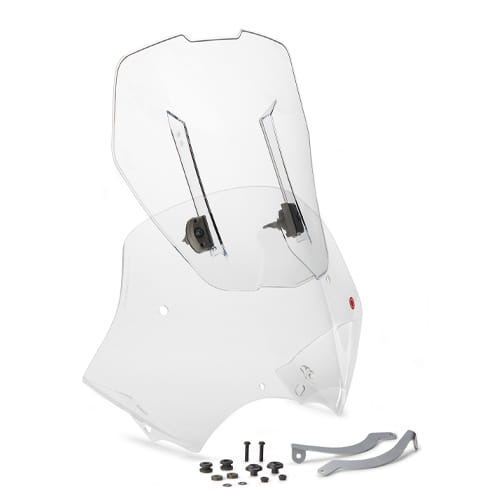 Airstream to regulowana przednia szyba, która została zaprojektowana dla uzyskania najlepszej możliwej aerodynamiki. Dzięki szybkiej i łatwej regulacji możesz dostosować szybę do własnych potrzeb niezależnie czy poruszasz się z wysokimi prędkościami, czy też potrzebujesz maksymalnej ochrony. Motocykliści, którzy podróżują w deszczu, nie będą mieli problemu ze stojącymi kroplami wody na szybie, które po oświetleniu przez reflektory samochodów sprawiają, że jazda staje się naprawdę niebezpieczna. W takich warunkach owiewkę Airstream można obniżyć poniżej linii oczu i w bezpieczny sposób kontynuować jazdę. Dodatkowo szyby zostały wyposażone w odblaskowe wstawki, które zwiększają widoczność.