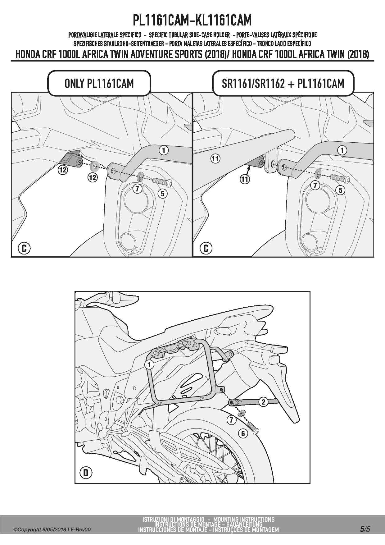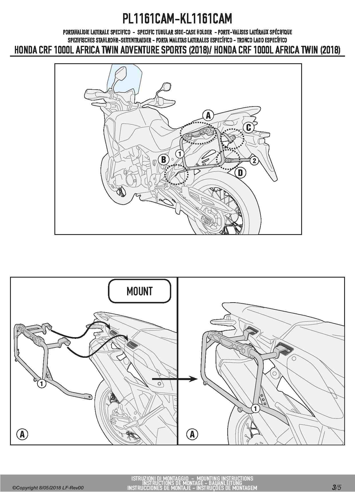 Stelaż kufrów bocznych Kappa KL1161CAM do motocykla Honda CRF1000L Africa Twin (18-19) / CRF1000L Africa Twin Adventure Sports (18-19)