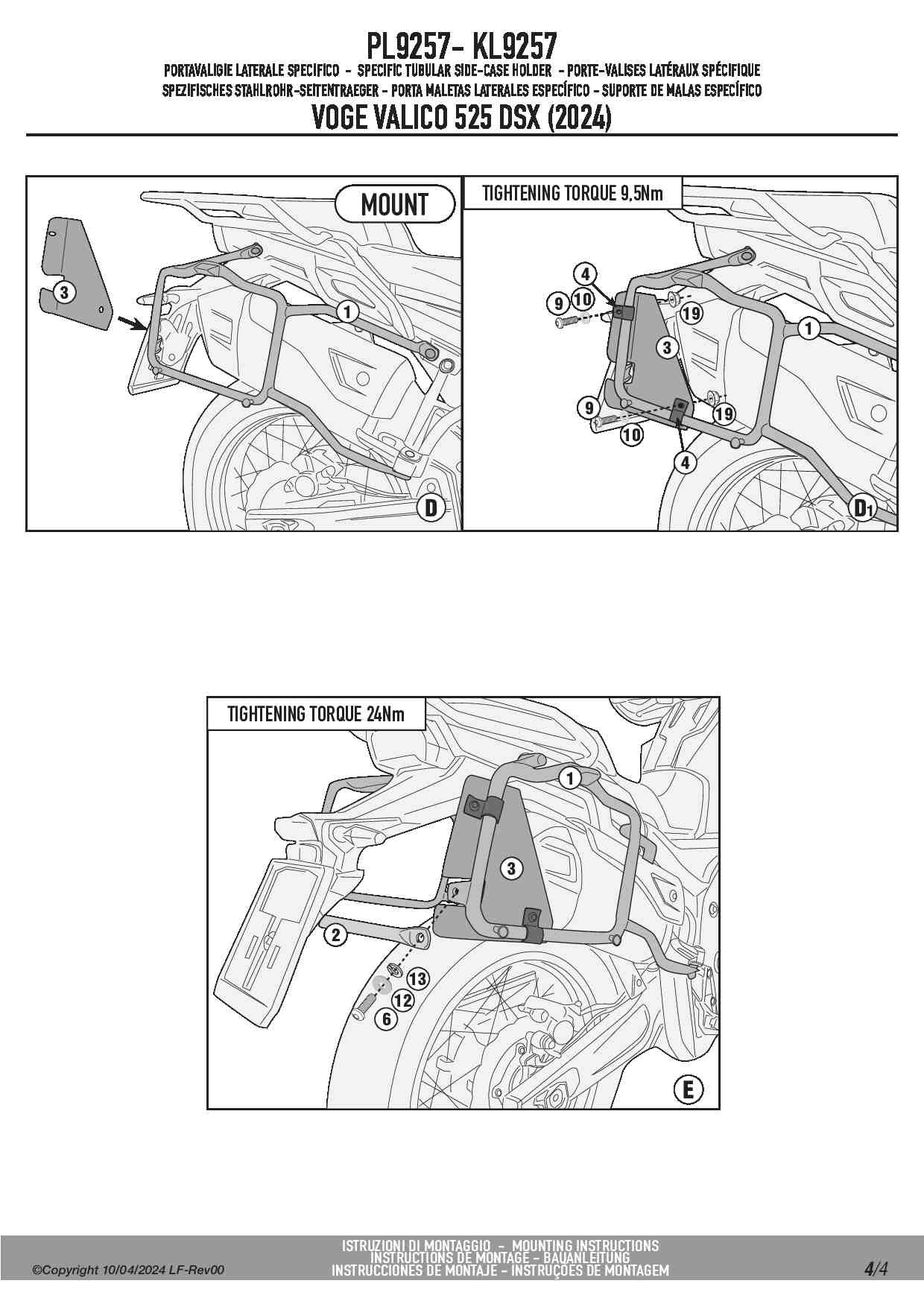 Kappa KL9257 Stelaż kufrów bocznych Voge Valico 525 DSX (24-25) / 625 DSX (25)