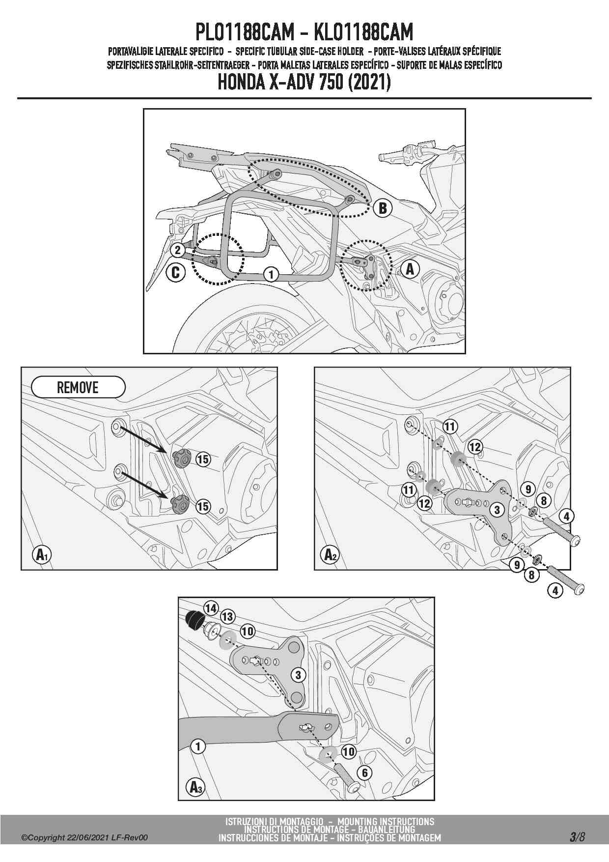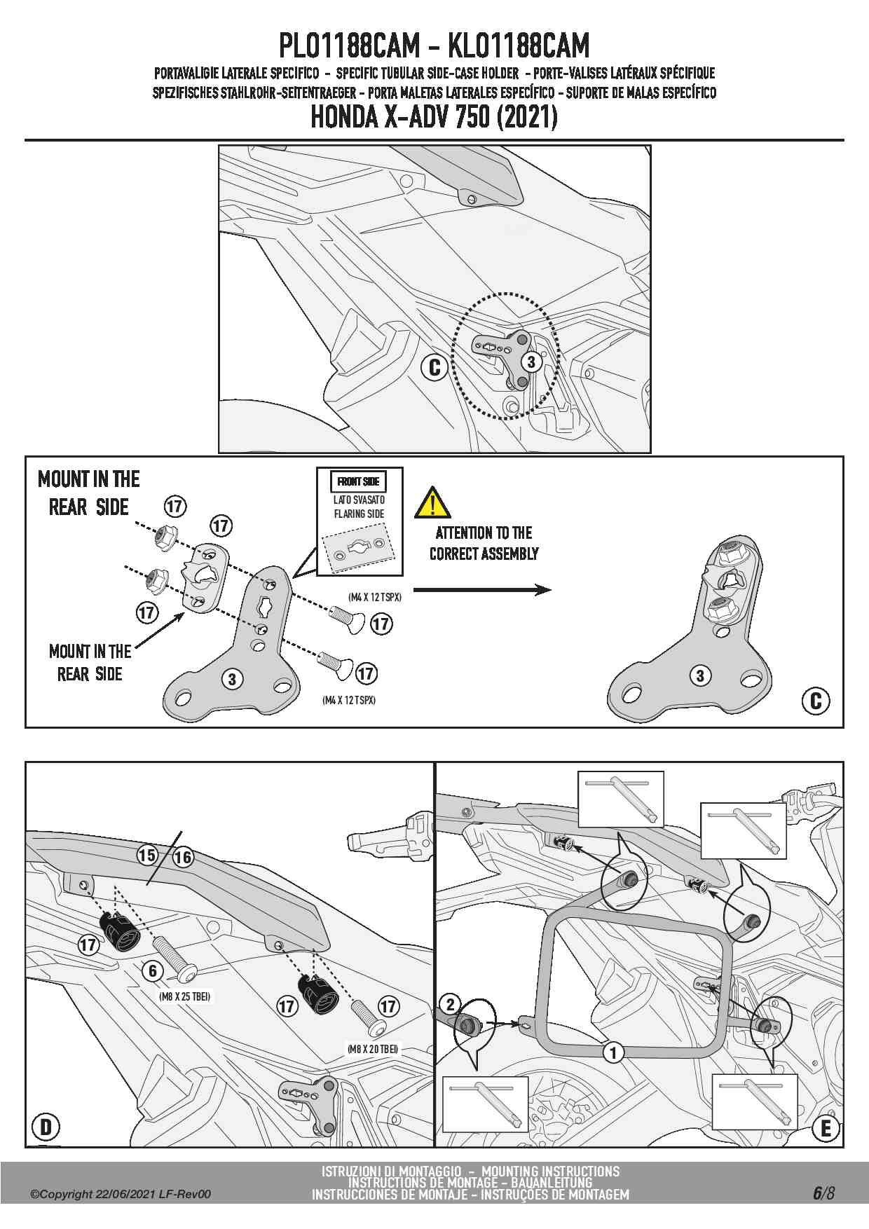 Do zamontowania potrzebny jest stelaż centralny KR1188 lub oryginalny stelaż Hondy, dostępny jako opcja u producenta.