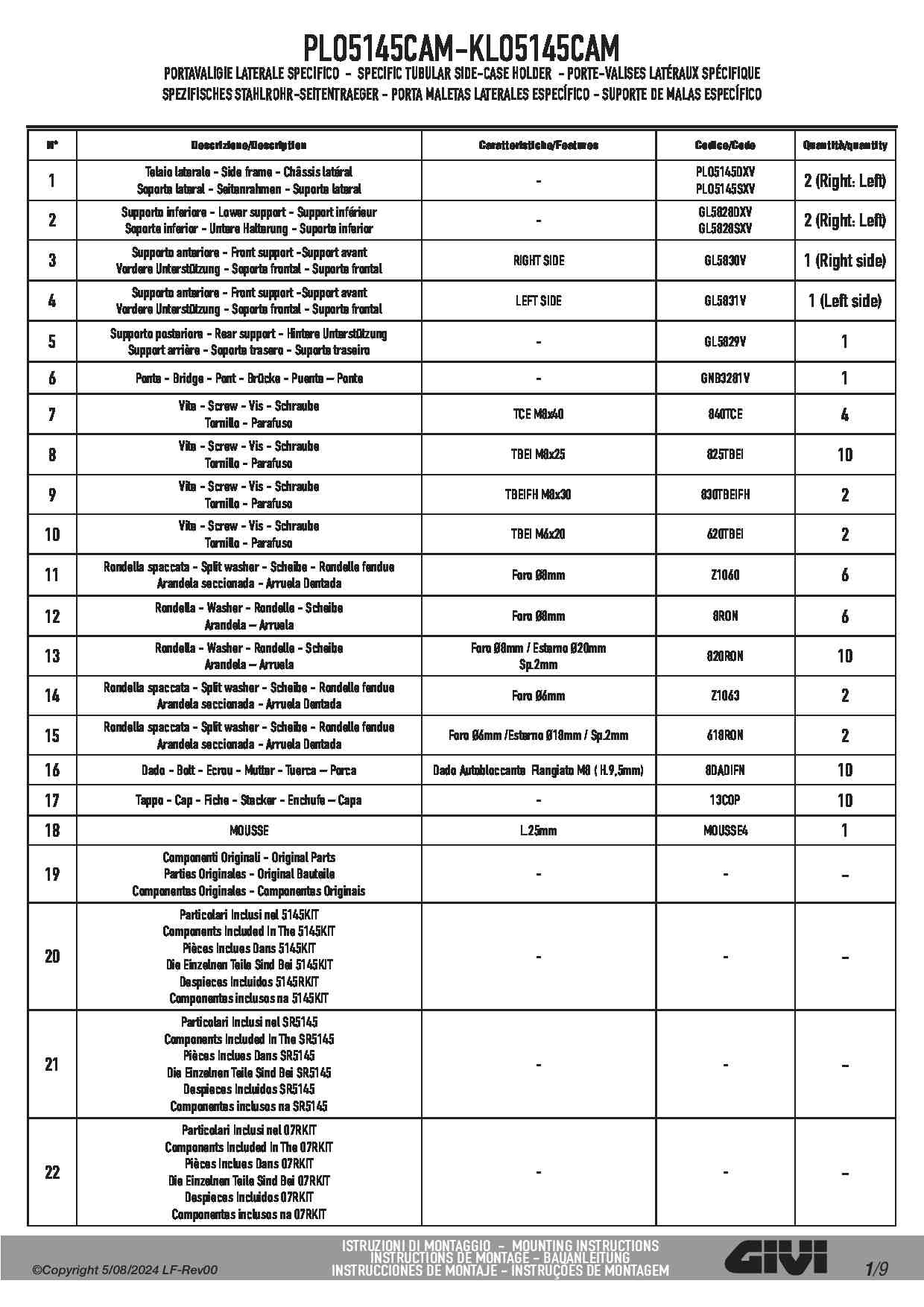 Indeks KLO_CAM to wersja w konfiguracji MONOKEY CAM-SIDE, która umożliwia montaż wszystkich kufrów z tym rozwiązaniem. Dzięki nowoczesnemu systemowi KL ONE-FIT stelaż ten można w prosty sposób przebudować. Jeżeli z jakichś powodów będziesz chciał lub zajdzie potrzeba zmiany kufrów, na takie które posiadają inny system mocowania, nie trzeba będzie zmieniać stelaży. Wystarczy dokupić i zamontować zestaw KOFMK, aby mieć możliwość założenia wszystkich kufrów bocznych w systemie MONOKEY. Trzecia możliwość to demontaż systemu mocowania i pozostawienie samych ramek, do których można zamontować dowolne sakwy boczne np. sakwy GRT709 firmy Givi, które jak najbardziej pasują do stelaży Kappa.