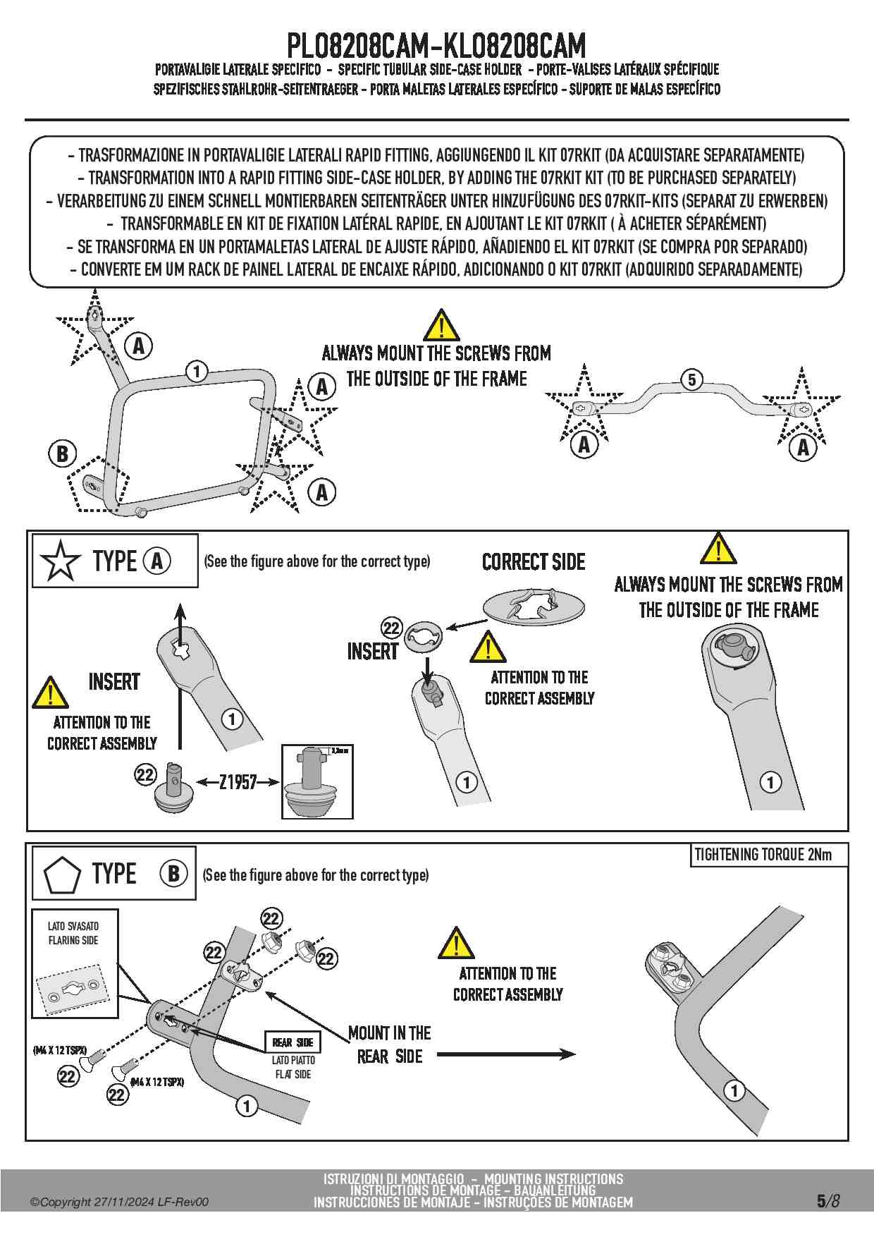 Dodatkowe informacje dla stelaża bocznego KLO8208CAM: