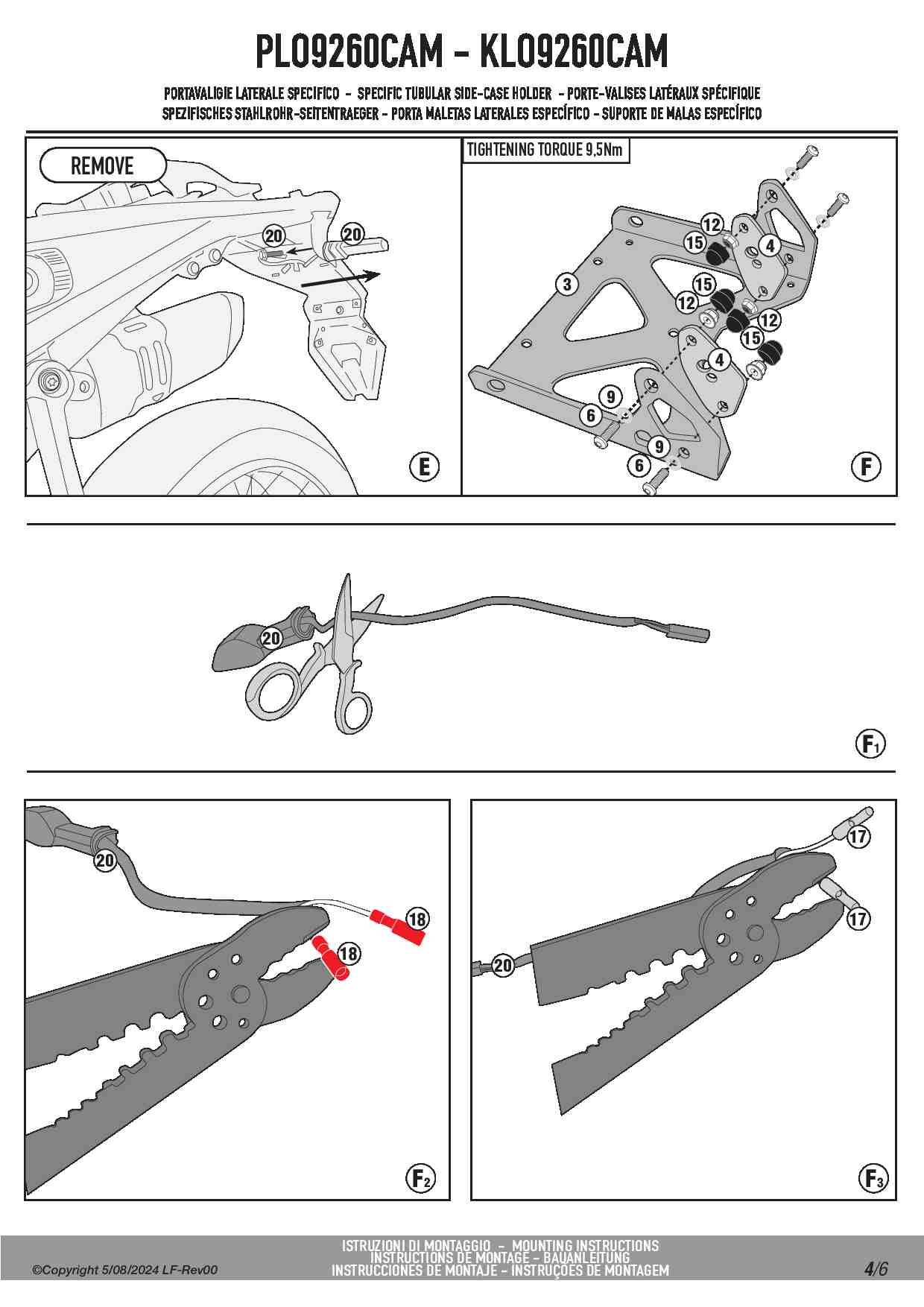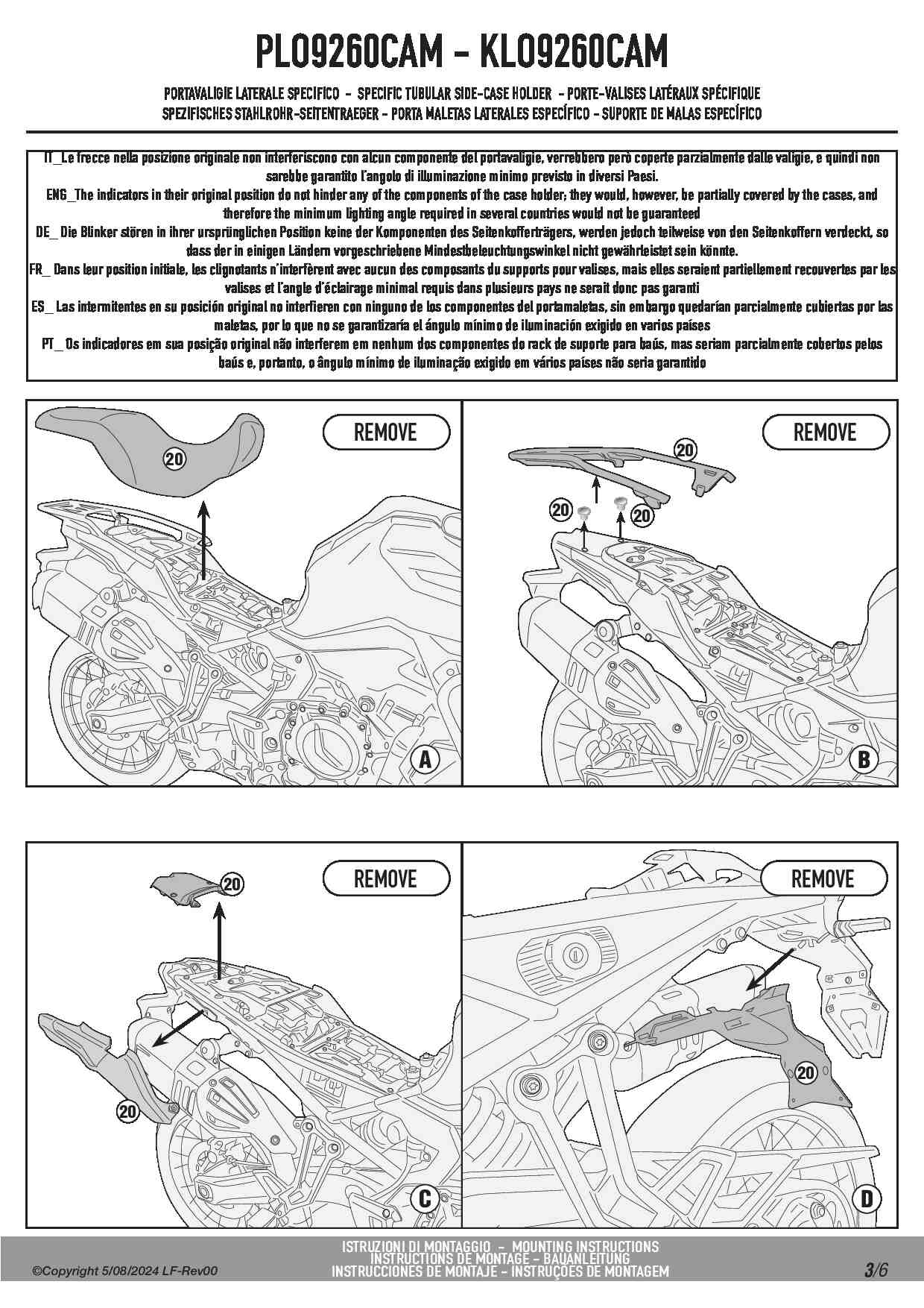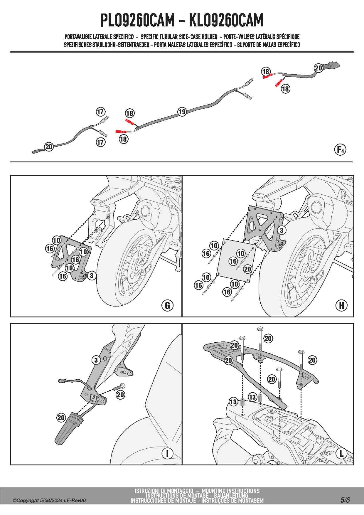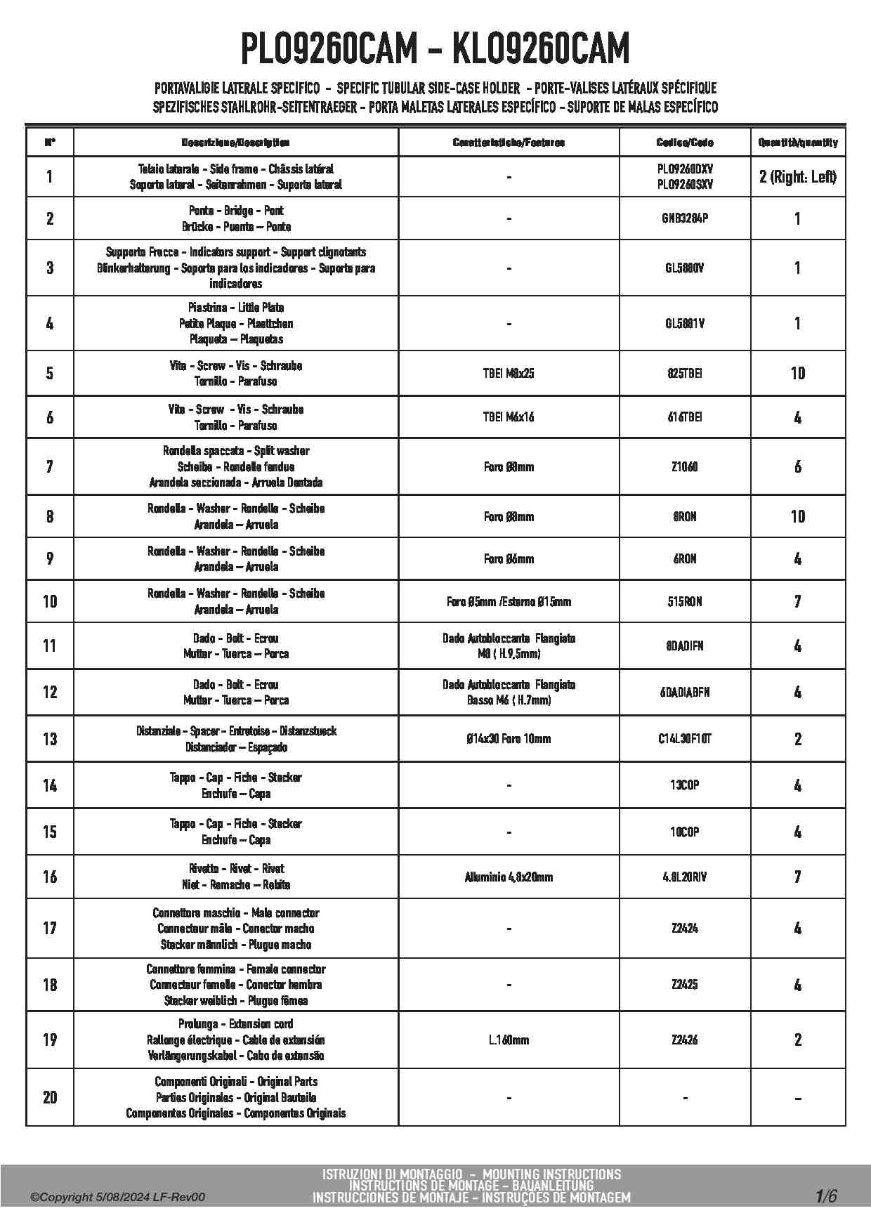 Indeks KLO_CAM to wersja w konfiguracji MONOKEY CAM-SIDE, która umożliwia montaż wszystkich kufrów z tym rozwiązaniem. Dzięki nowoczesnemu systemowi KL ONE-FIT stelaż ten można w prosty sposób przebudować. Jeżeli z jakichś powodów będziesz chciał lub zajdzie potrzeba zmiany kufrów, na takie które posiadają inny system mocowania, nie trzeba będzie zmieniać stelaży. Wystarczy dokupić i zamontować zestaw KOFMK, aby mieć możliwość założenia wszystkich kufrów bocznych w systemie MONOKEY. Trzecia możliwość to demontaż systemu mocowania i pozostawienie samych ramek, do których można zamontować dowolne sakwy boczne np. sakwy GRT709 firmy Givi, które jak najbardziej pasują do stelaży Kappa.