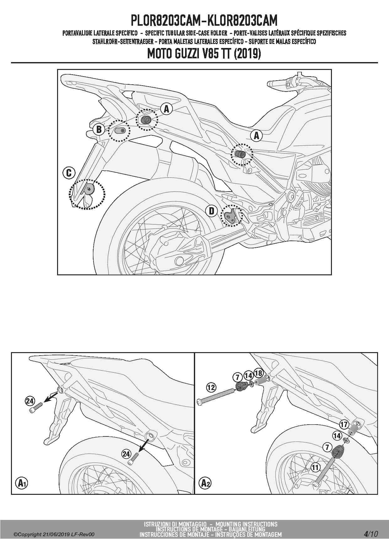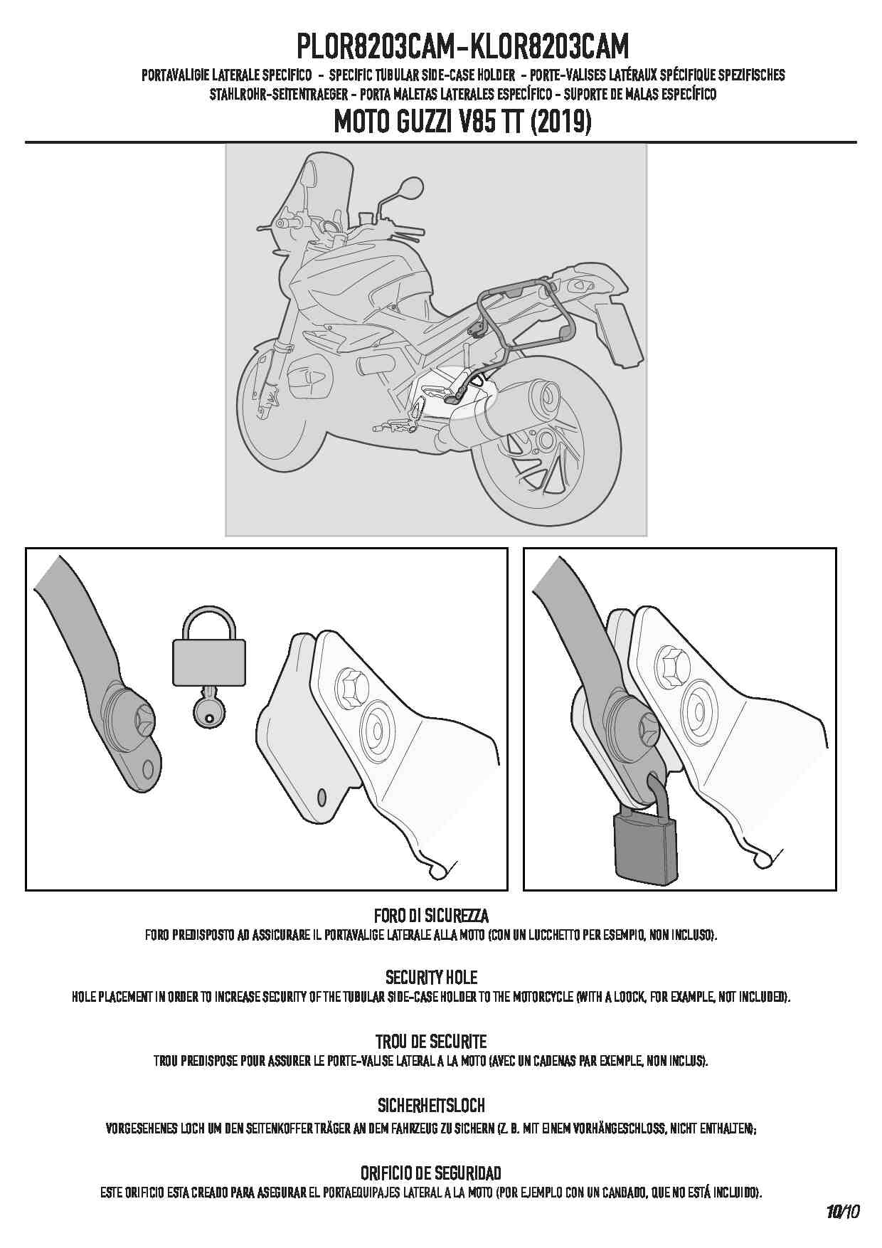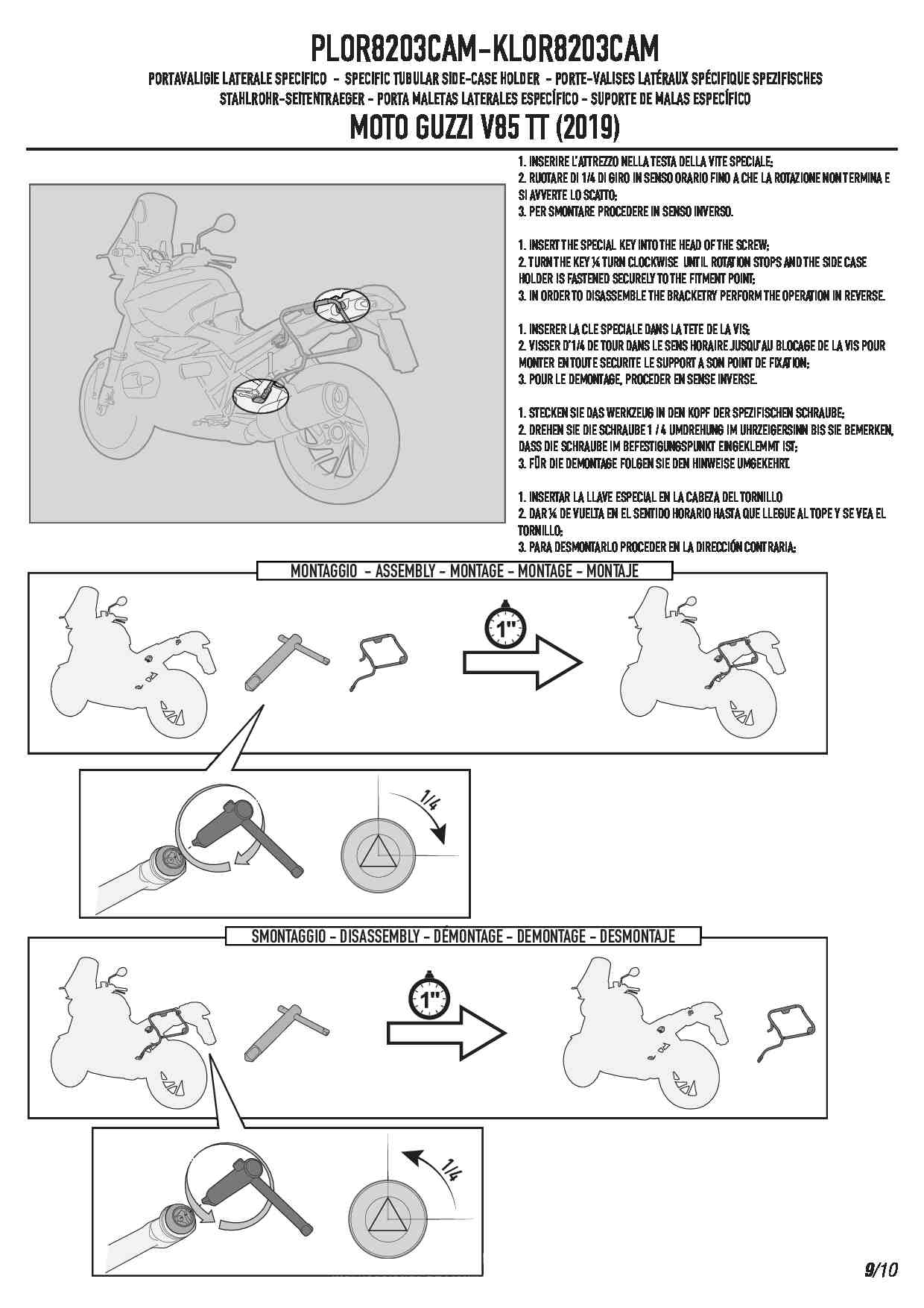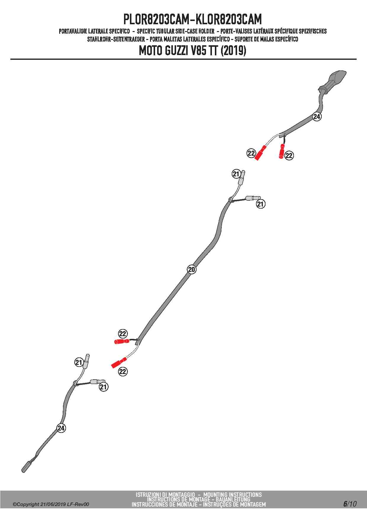 Stelaż kufrów bocznych Kappa KLOR8203CAM ONE-FIT Rapid release do motocykla Moto Guzzi V85 TT (19-23)
