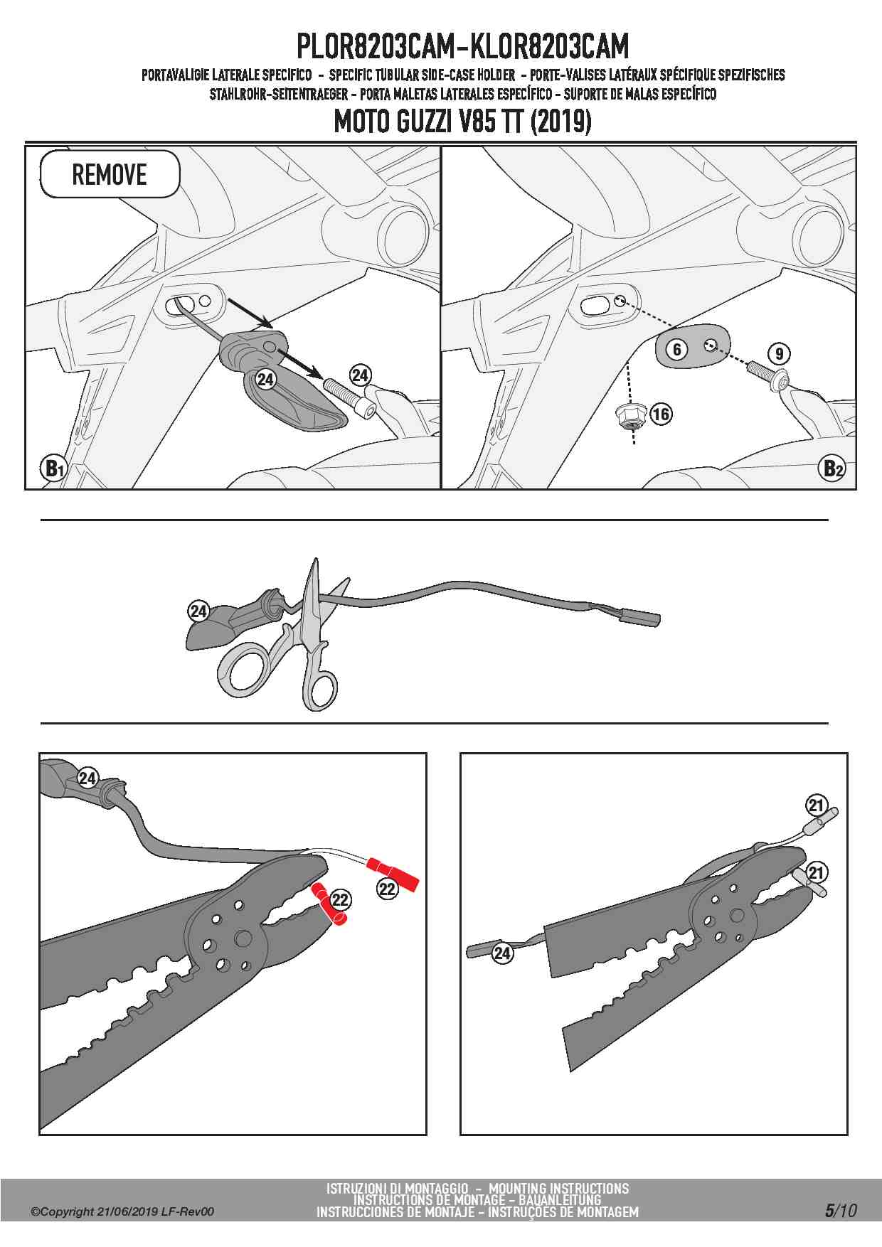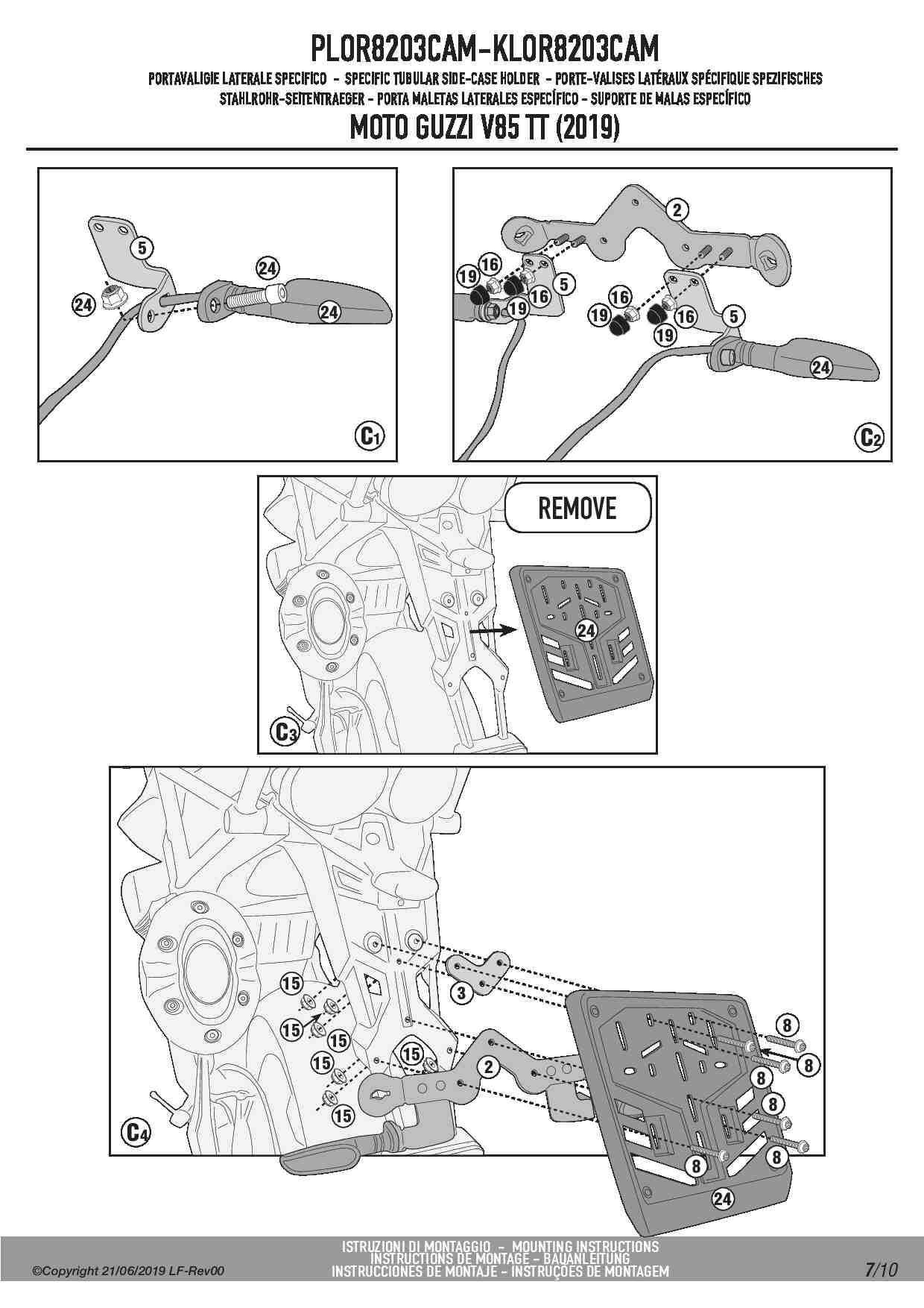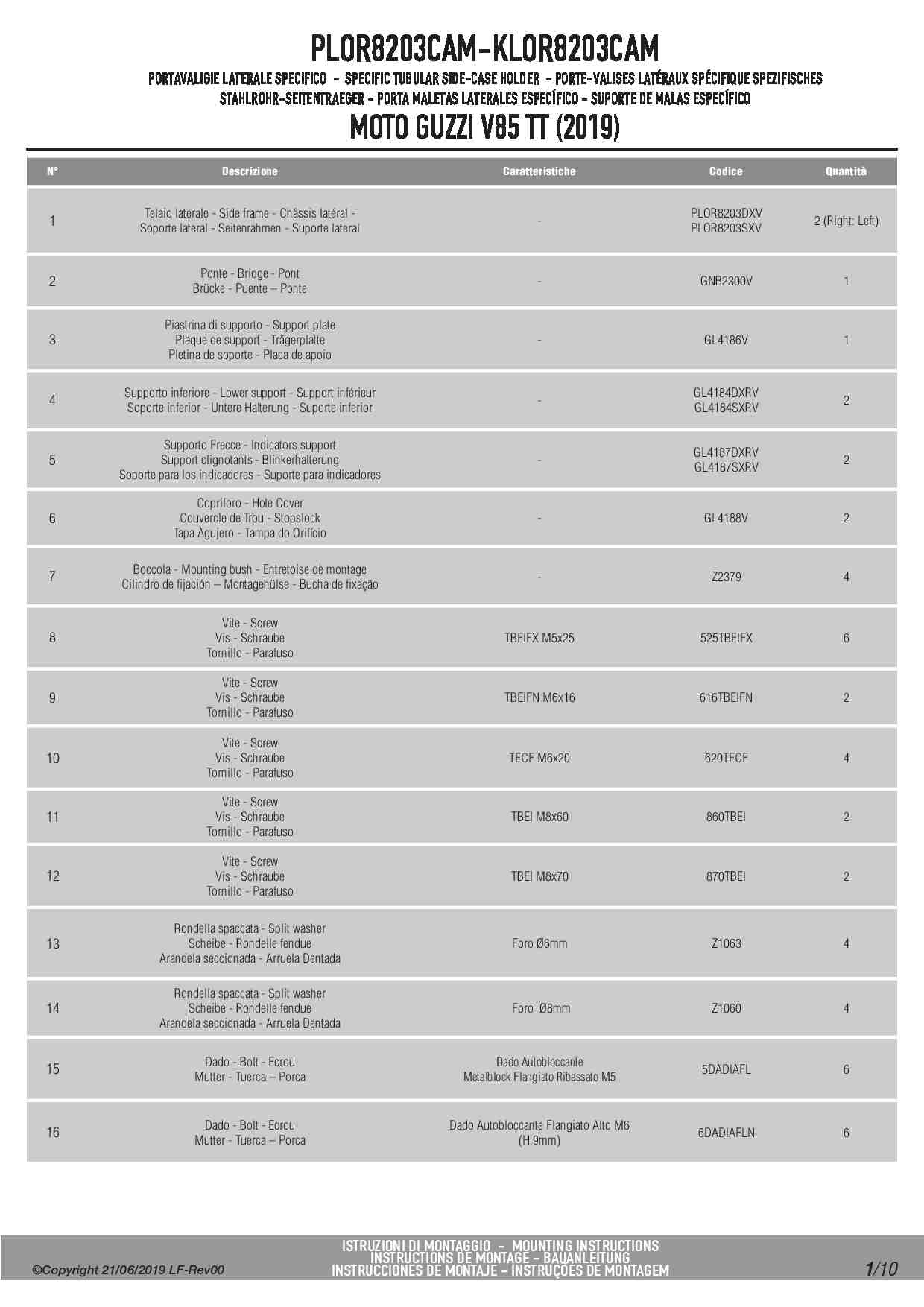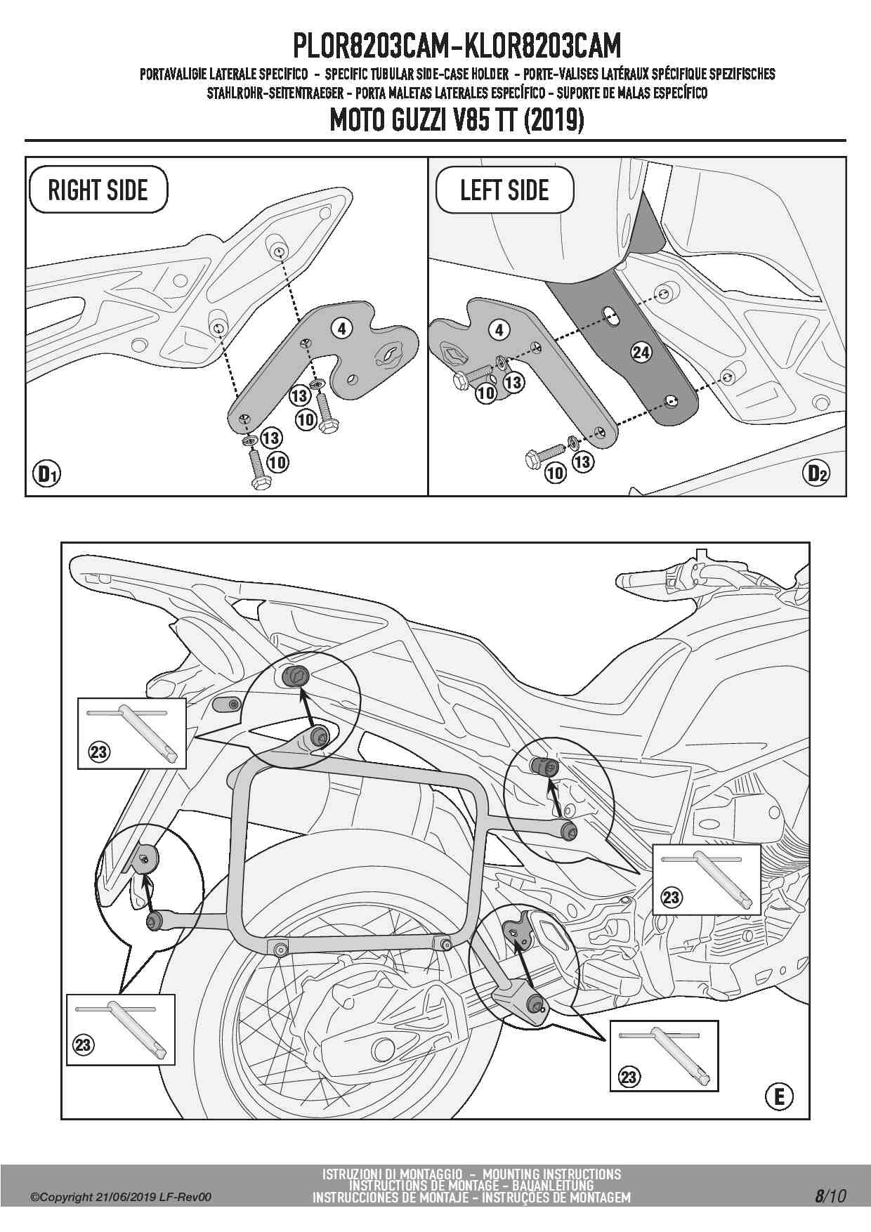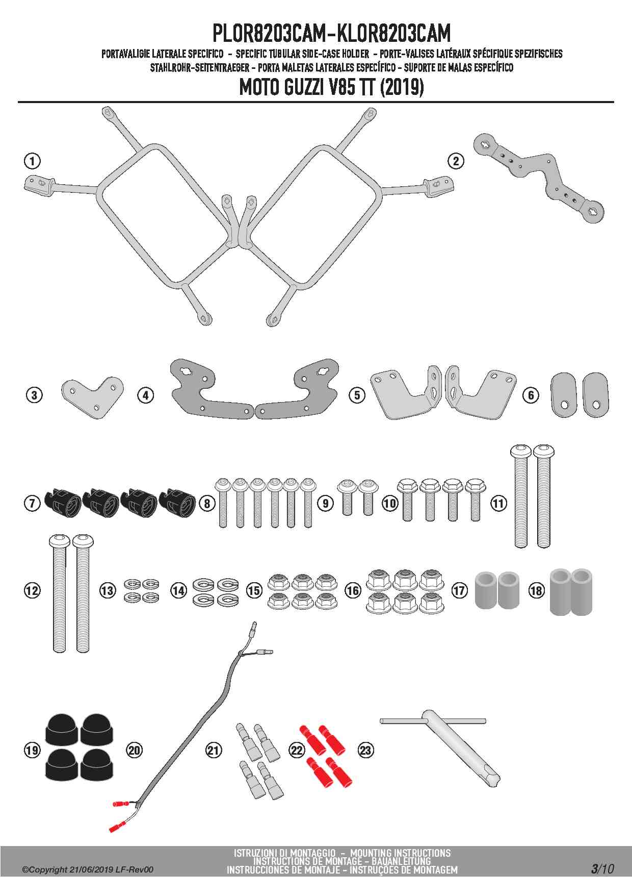 Stelaż kufrów bocznych Kappa KLOR8203CAM ONE-FIT Rapid release do motocykla Moto Guzzi V85 TT (19-23)