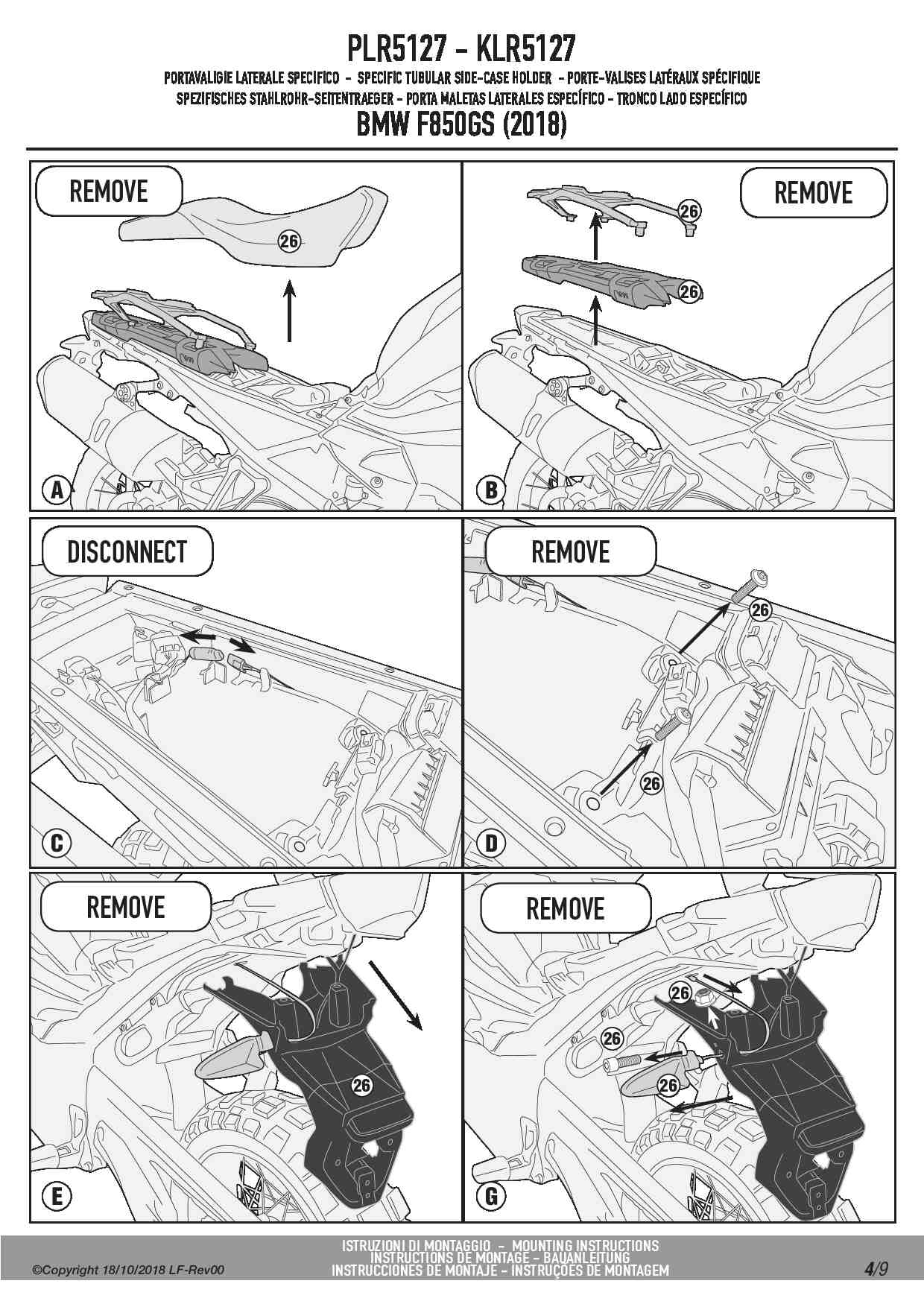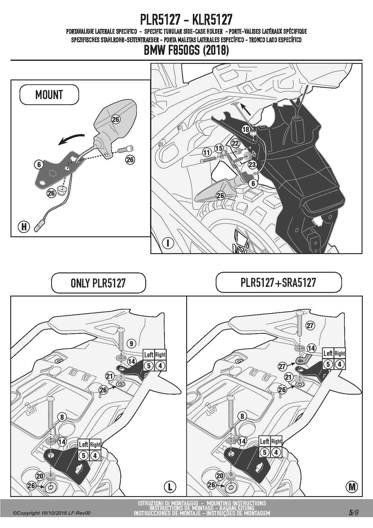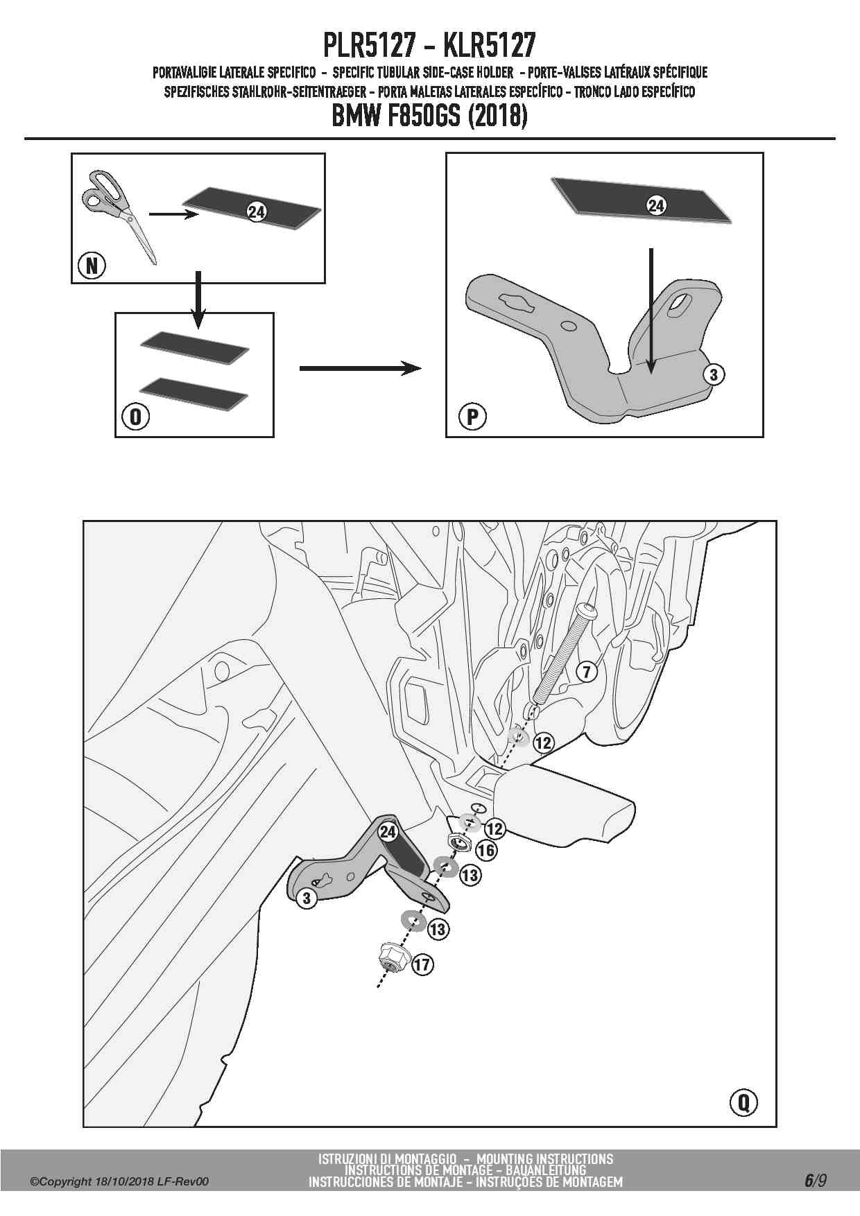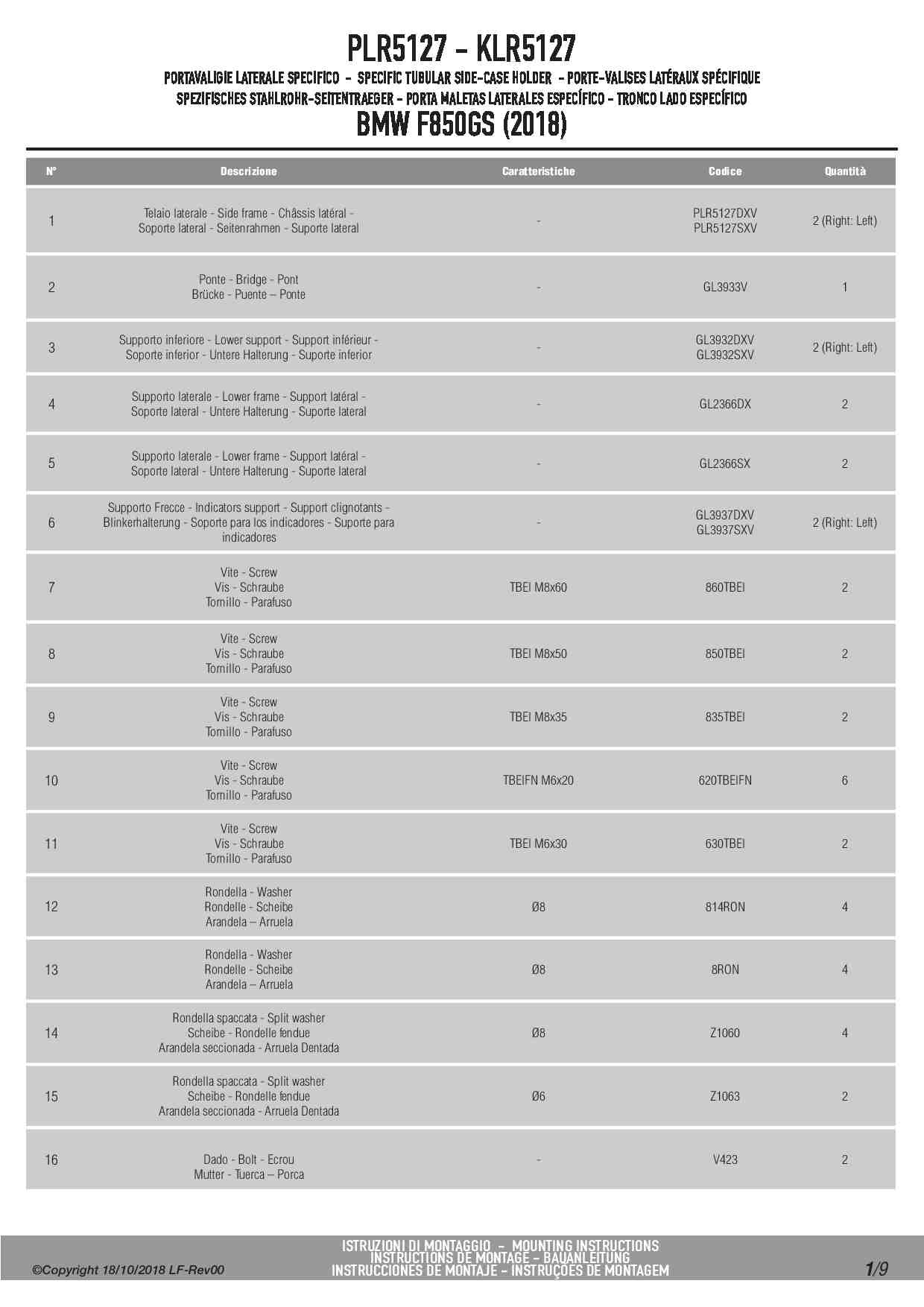 Stelaż kufrów bocznych Kappa KLR5127 do motocykla BMW F 750 GS (18-23) / F 850 GS (18-23) / F 850 GS Adventure (19-23) / F 800 GS (24-25) / F 900 GS Adventure (24-25)