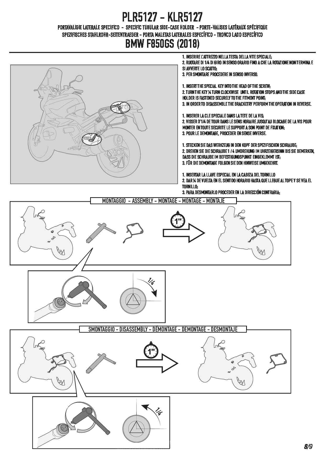 Stelaże KLR posiadają system RAPID RELEASE, który daje możliwość błyskawicznego zdjęcia stelaża z motocykla, pozostawiając na nim samą bazę, która nie rzuca się w oczy. Demontaż za pomocą dołączonego do zestawu klucza trwa dosłownie kilkadziesiąt sekund.