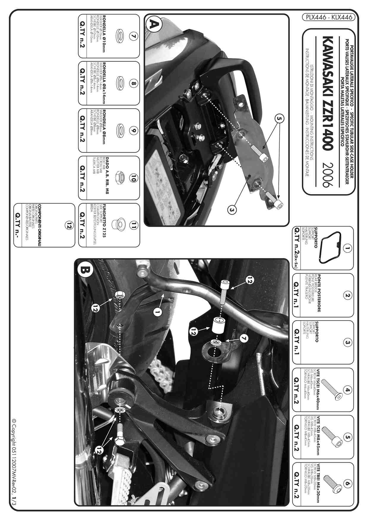Stelaż kufrów bocznych Kappa KLX446 do motocykla Kawasaki ZZR 1400 / ZX 14 (06-11)