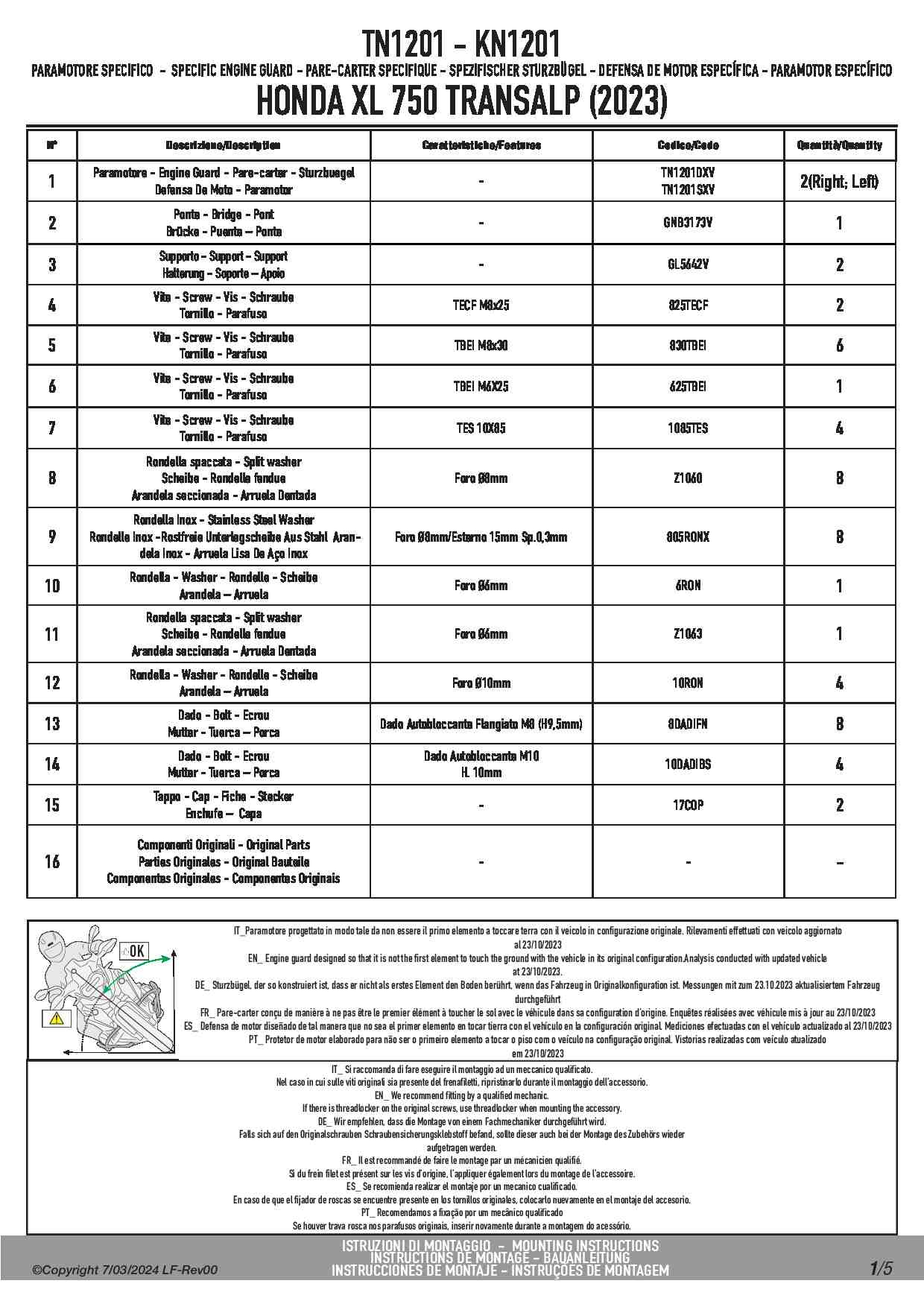 Kappa KN1201 Gmole, osłony silnika Honda XL 750 Transalp (23-25)