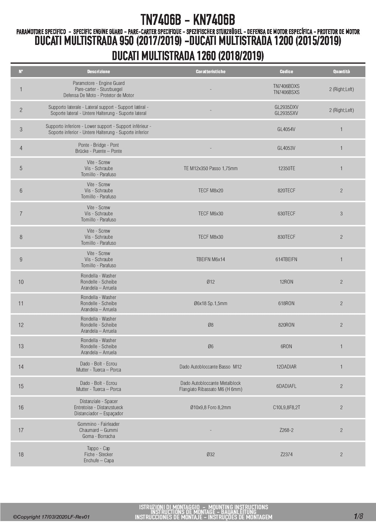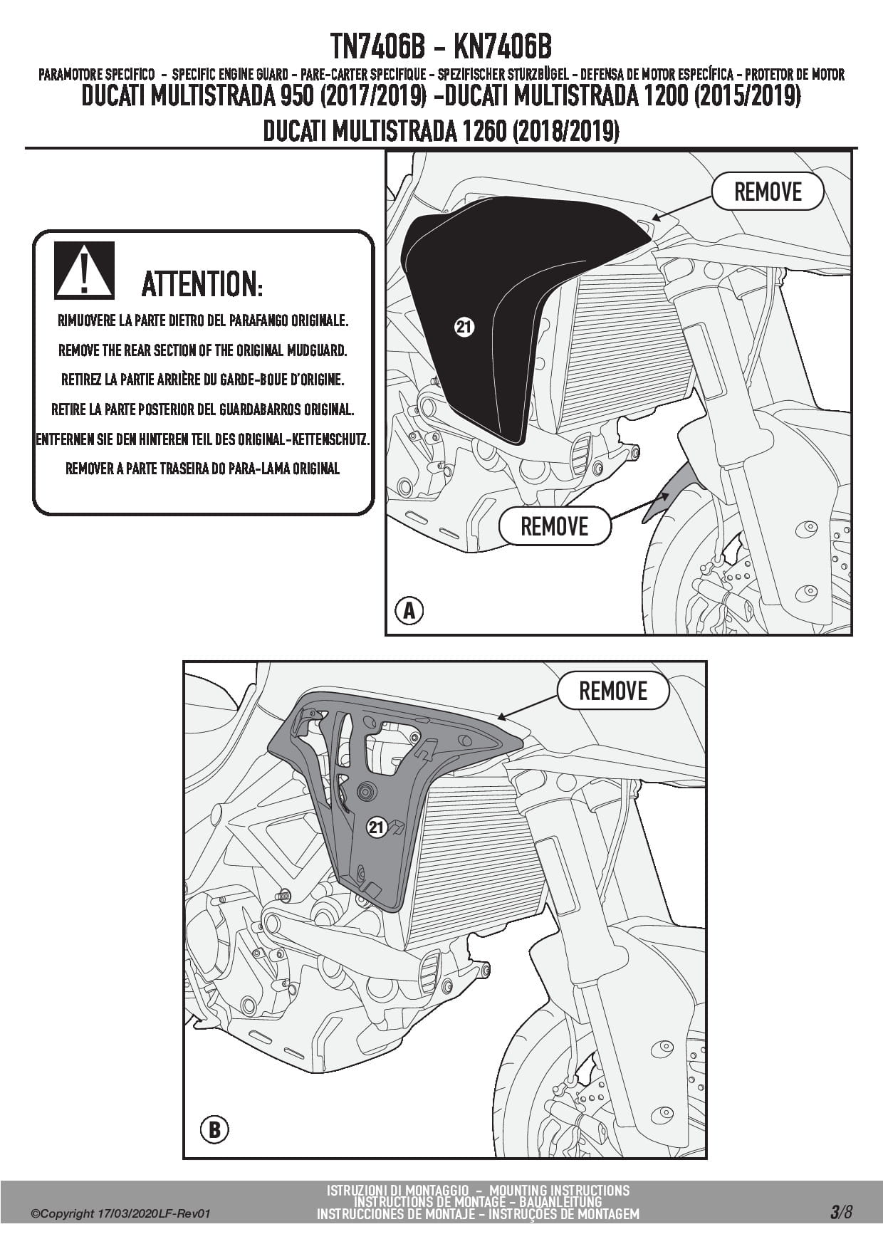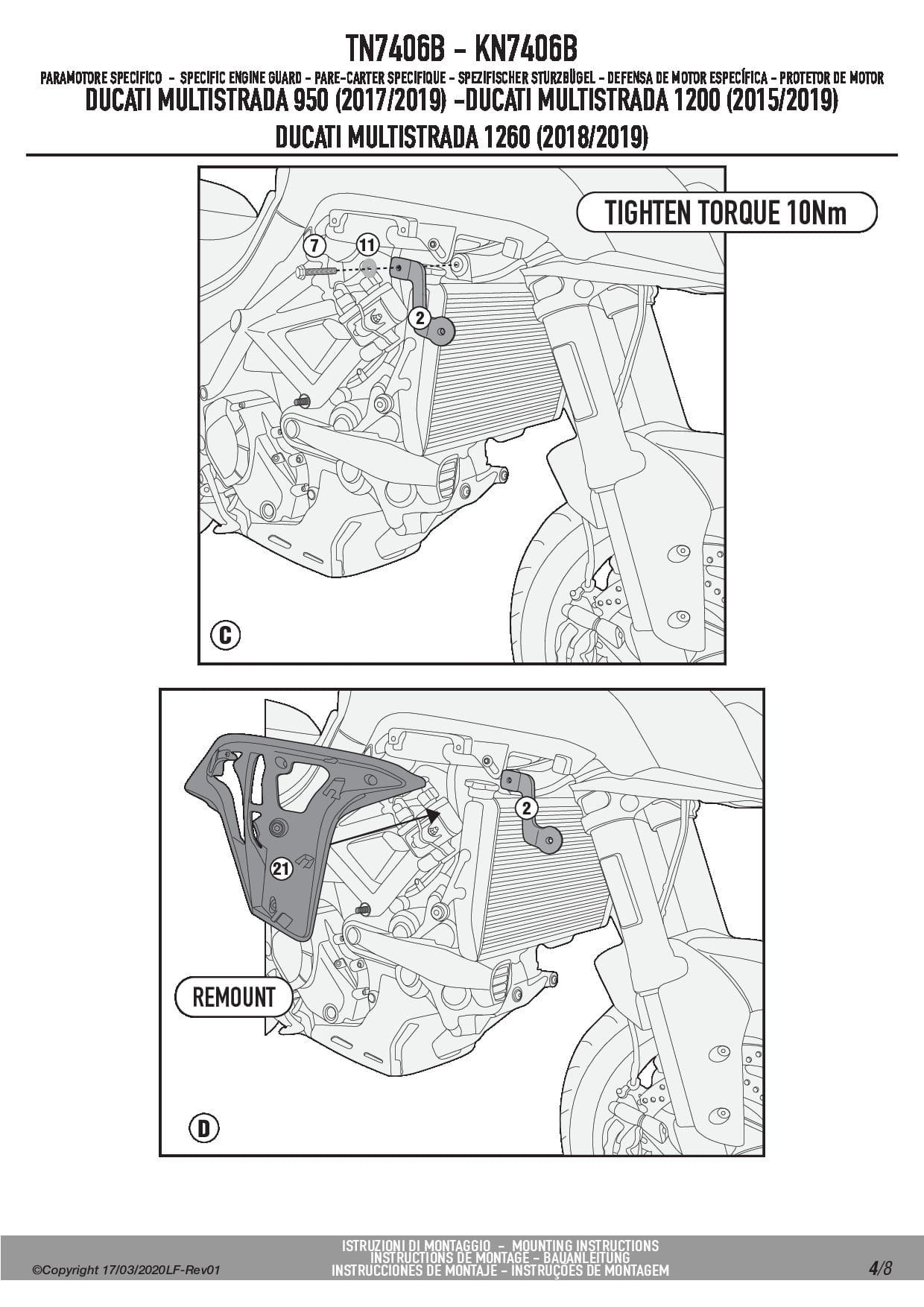 Kappa KN7406B Osłony silnika gmole Ducati Multistrada 950/950 S (17-21) / Multistrada 1200/1260 (15-20)