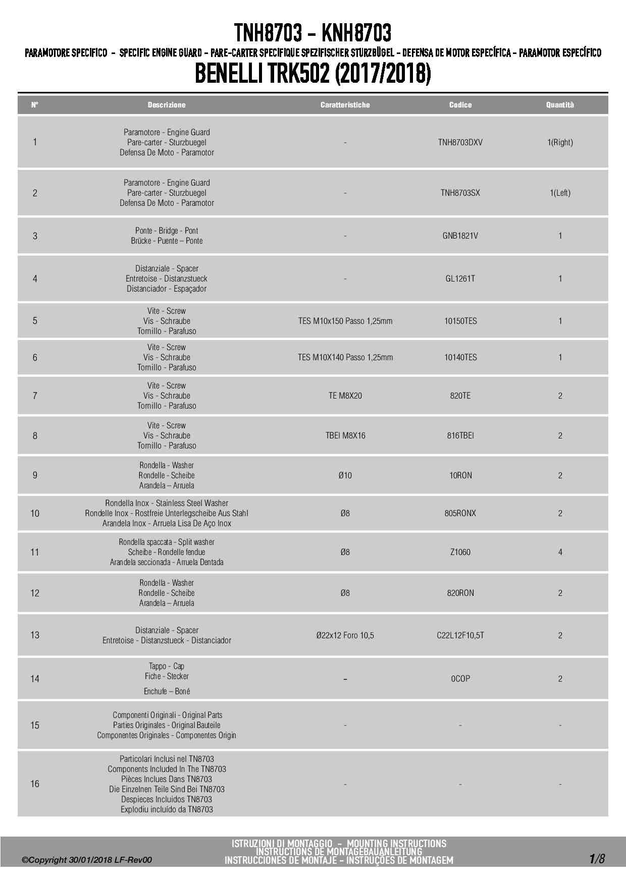 Kappa KNH8703 Górne osłony Benelli TRK502 (17-25) / TRK502 X (20-25)