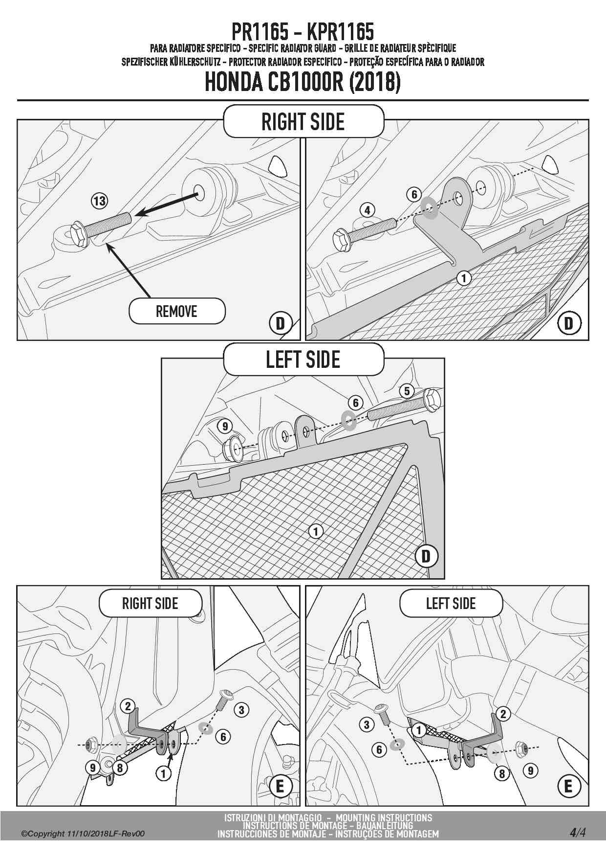 Osłona chłodnicy ze stali nierdzewnej Kappa KPR1165 do motocykla Honda CB 1000 R (18-20)