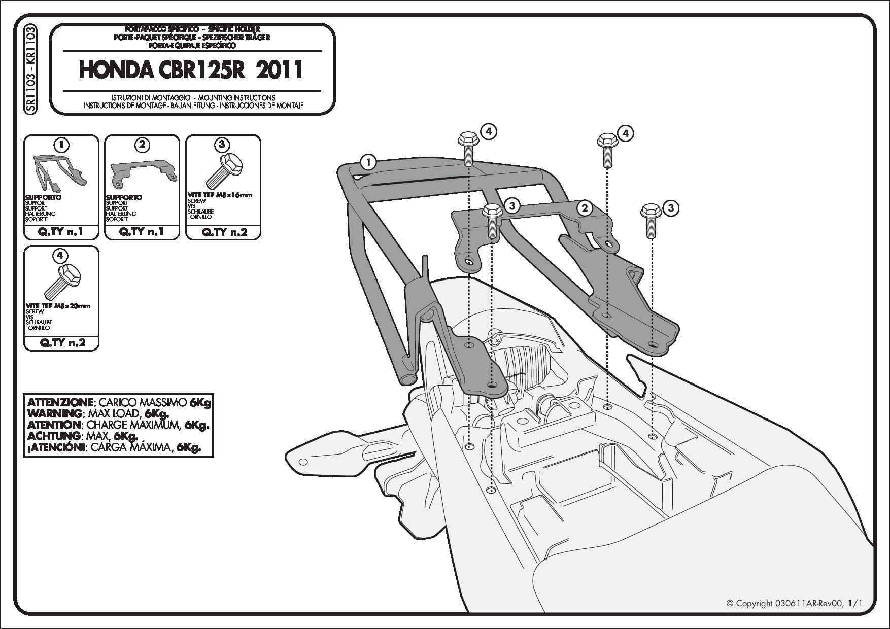 Stelaż kufra centralnego Kappa KR1103 do motocykla Honda CBR 125 R (11-17) / CBR 250 R (11-15)