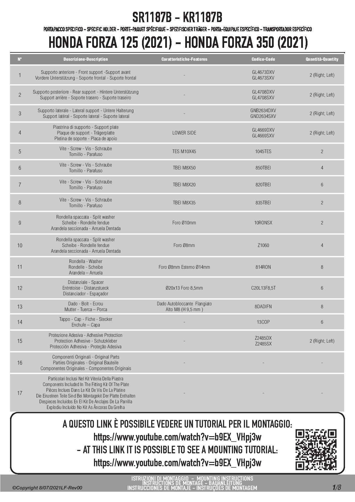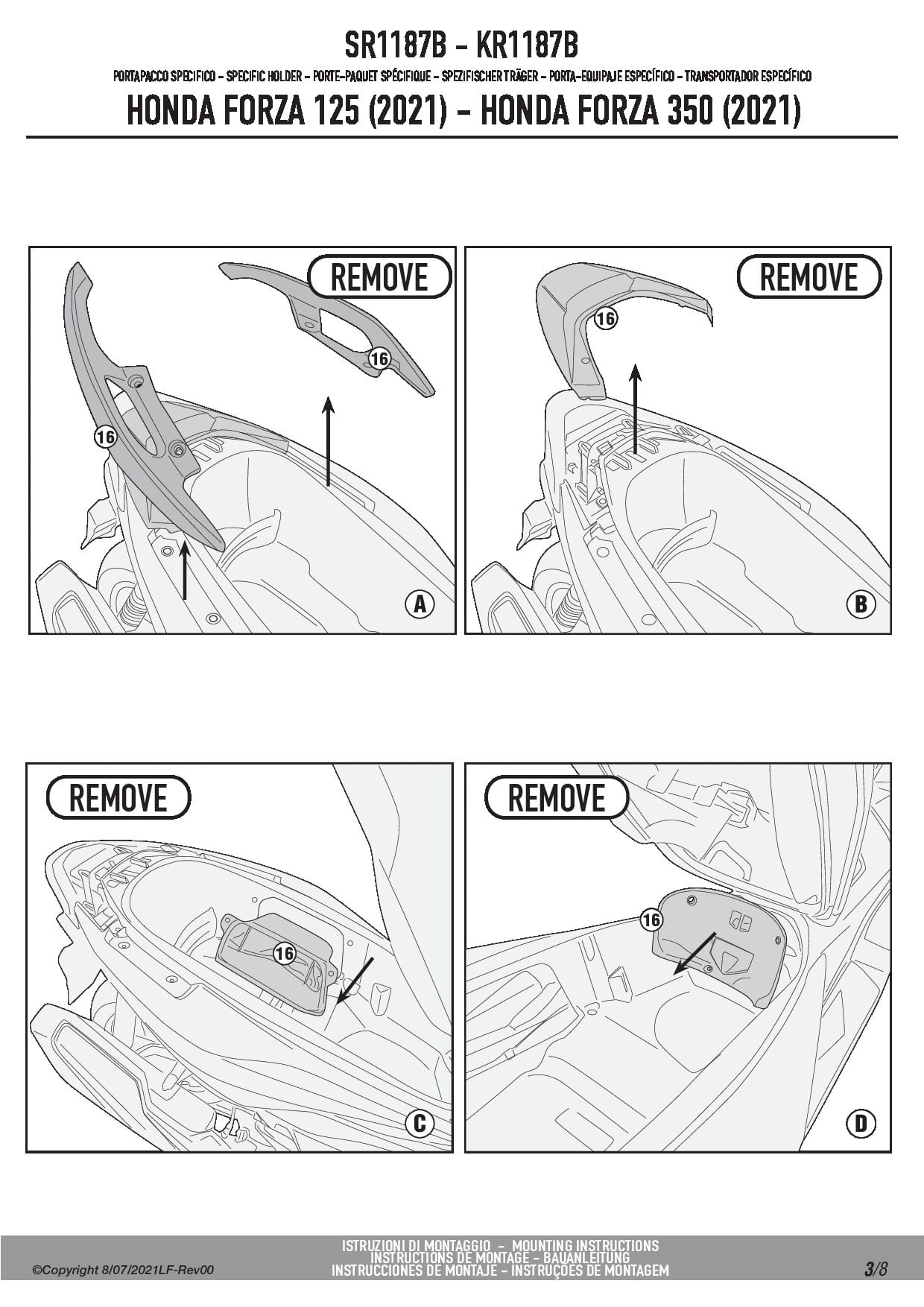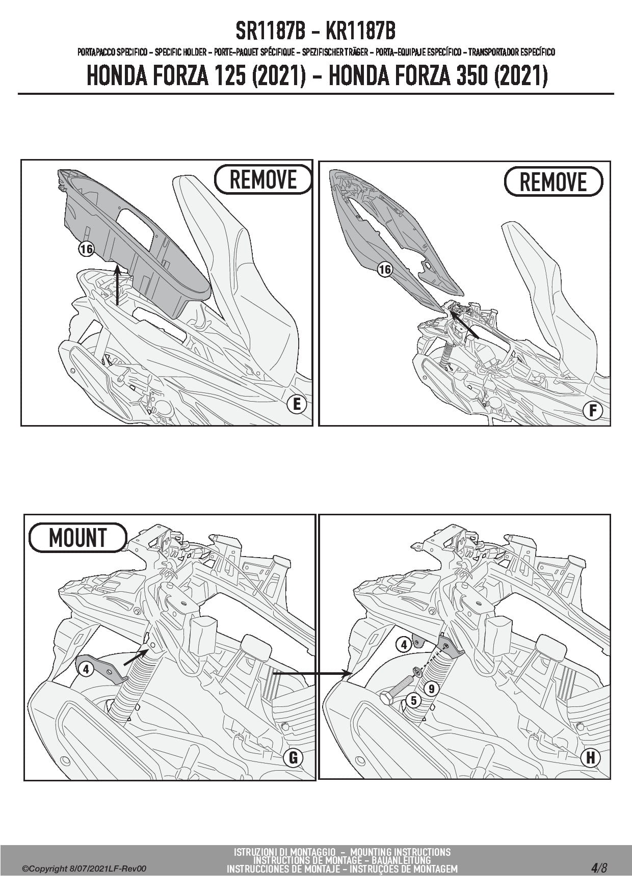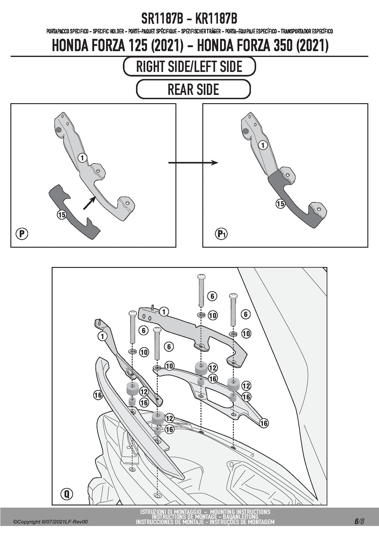 Stelaż kufra centralnego Kappa KR1187B do skutera Honda Forza 125/350 (21-22)