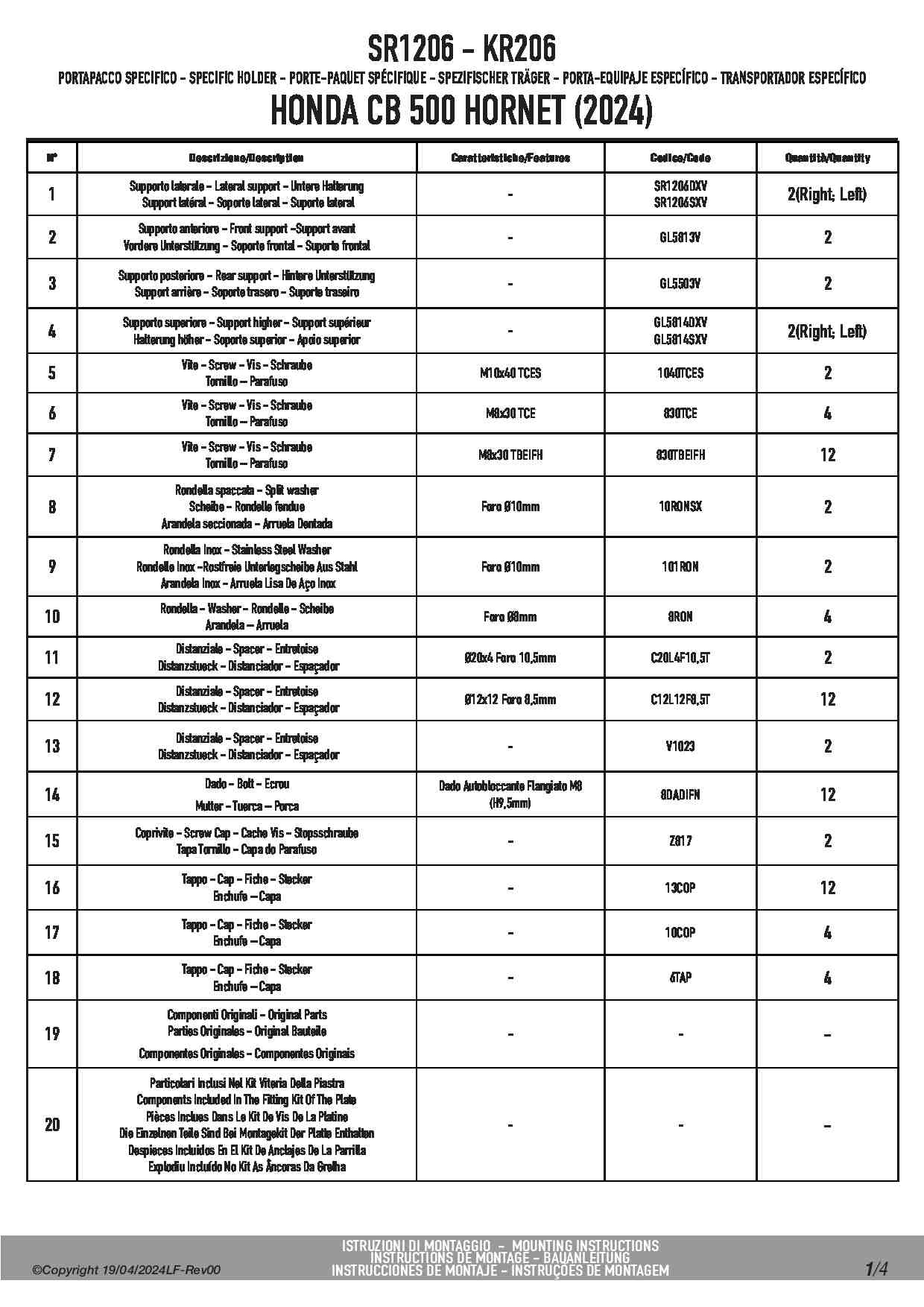 Stelaż kufra centralnego Kappa KR1206 do motocykla Honda CB 500 Hornet (24-25)