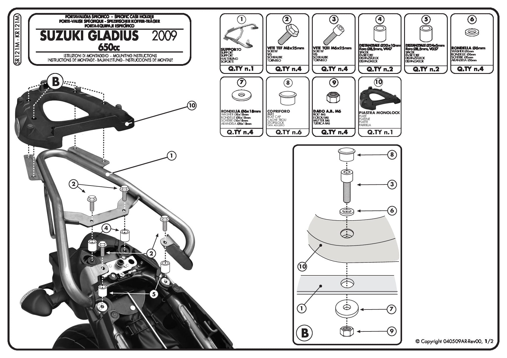 Stelaż kufra centralnego Kappa KR121M do motocykla Suzuki Gladius 650 (09-16)