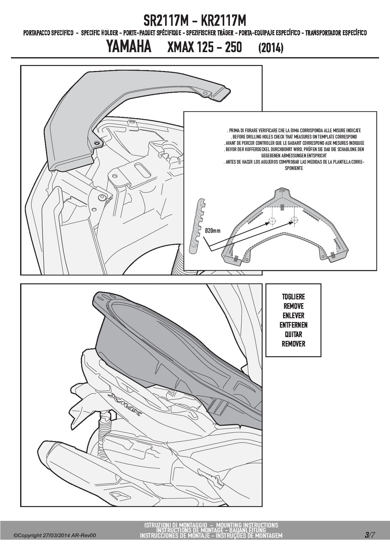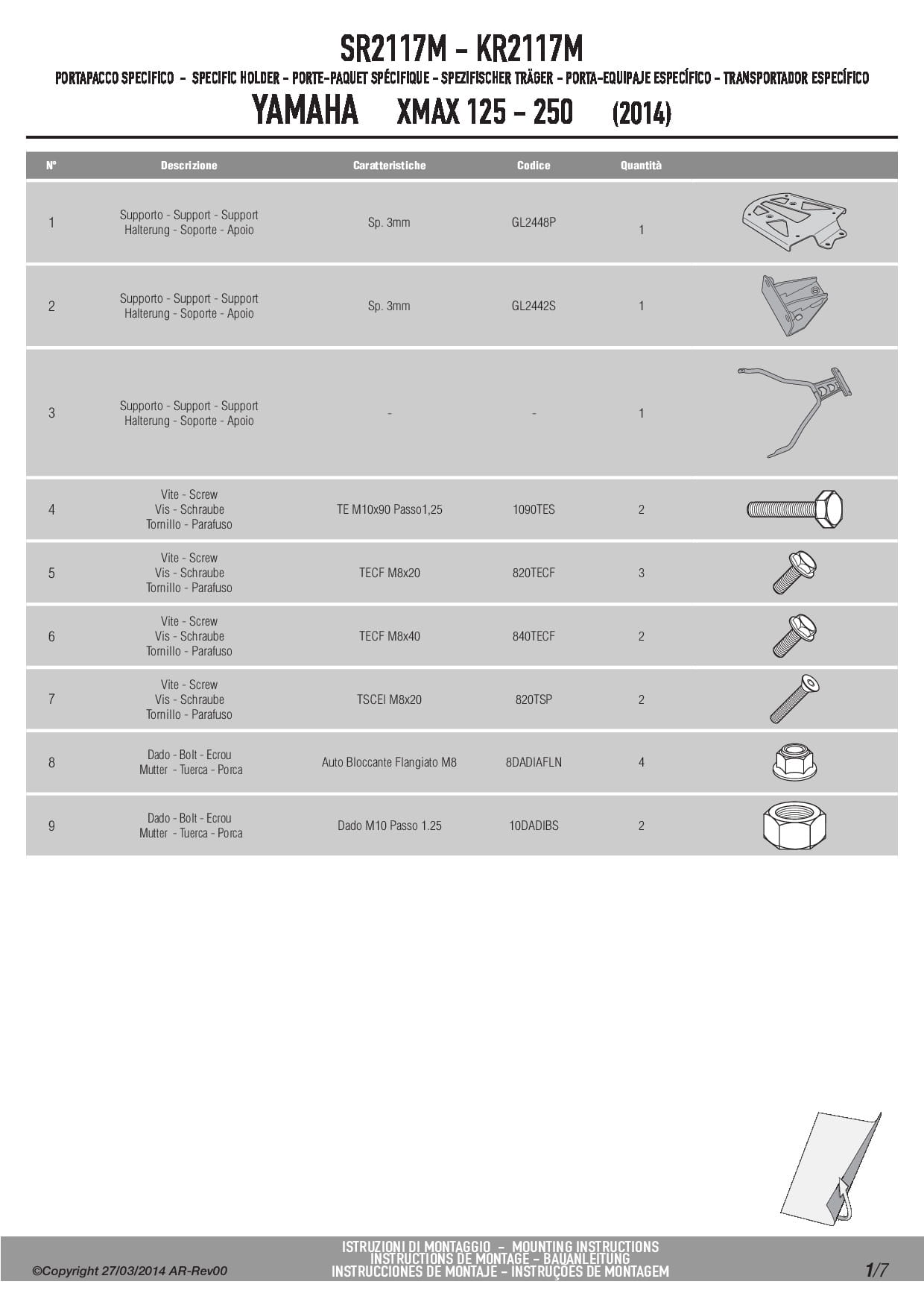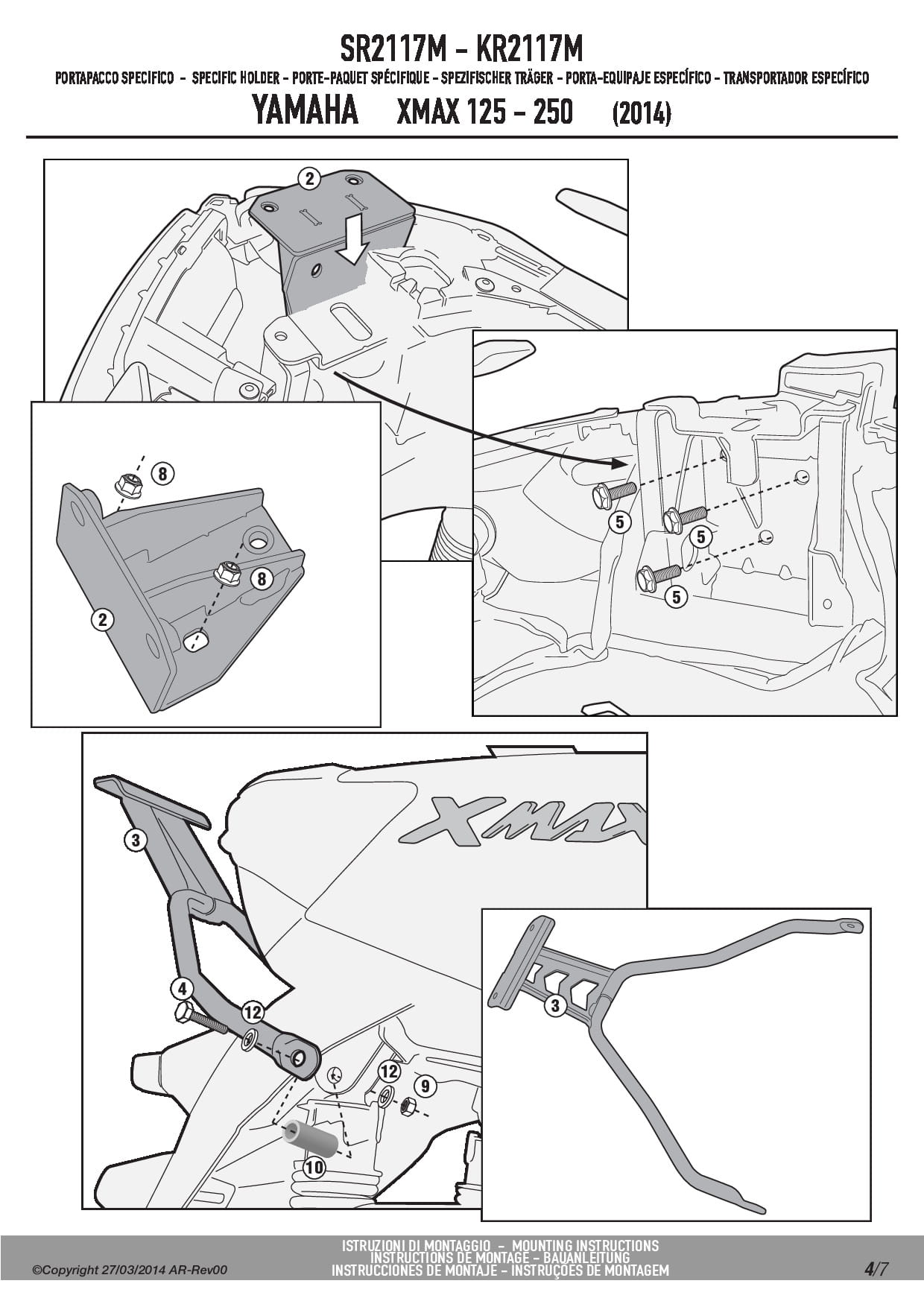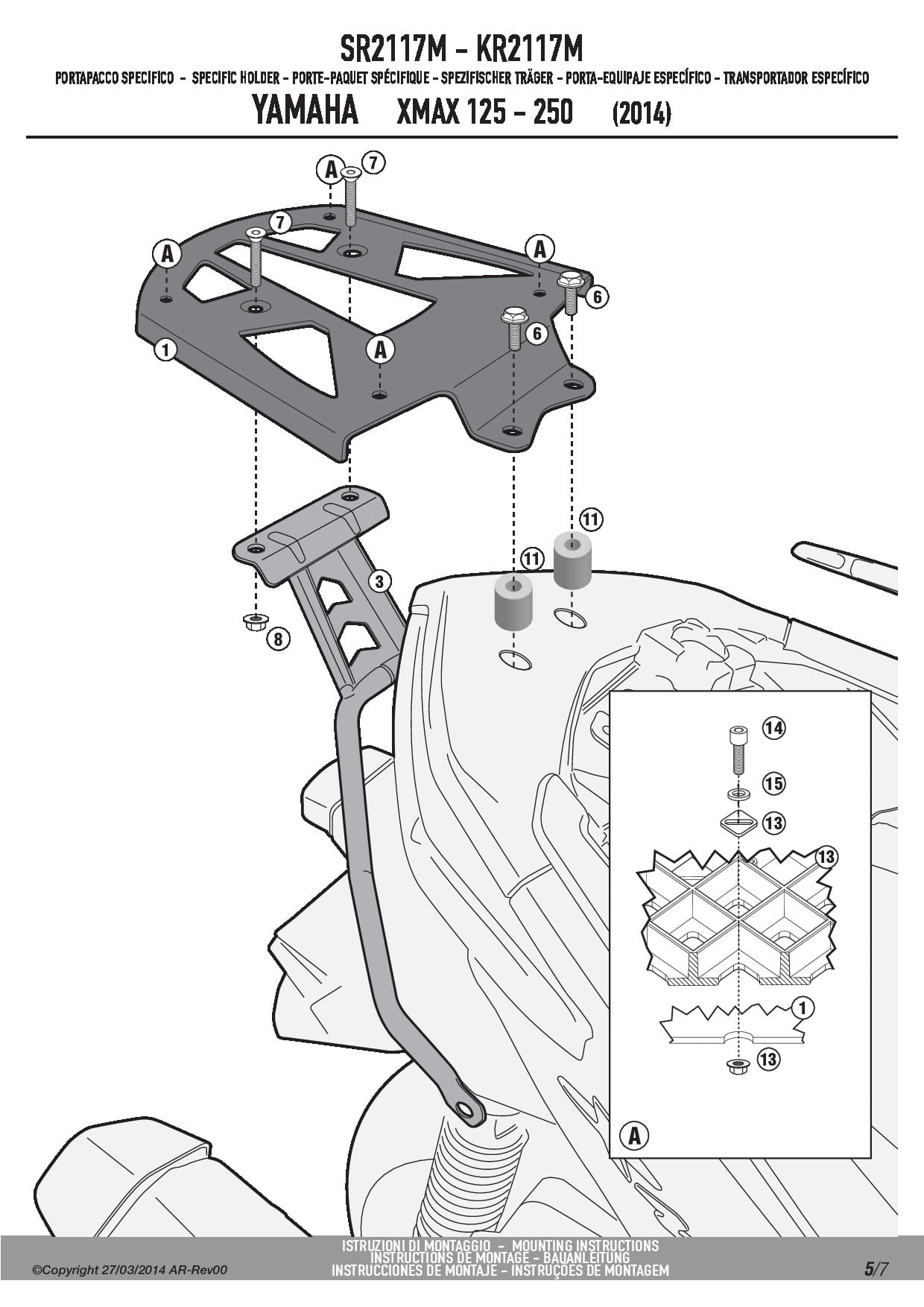 Stelaż kufra centralnego Kappa KR2117M do skutera Yamaha X-Max 125-250 (14-17) / MBK Skyliner 125-250 (14) / Evolys 125-250 (14-17)