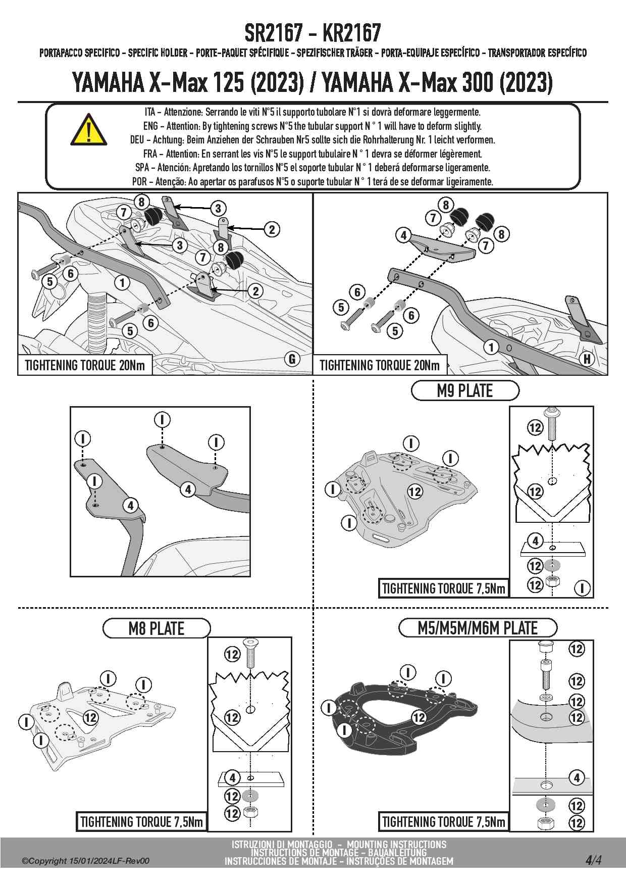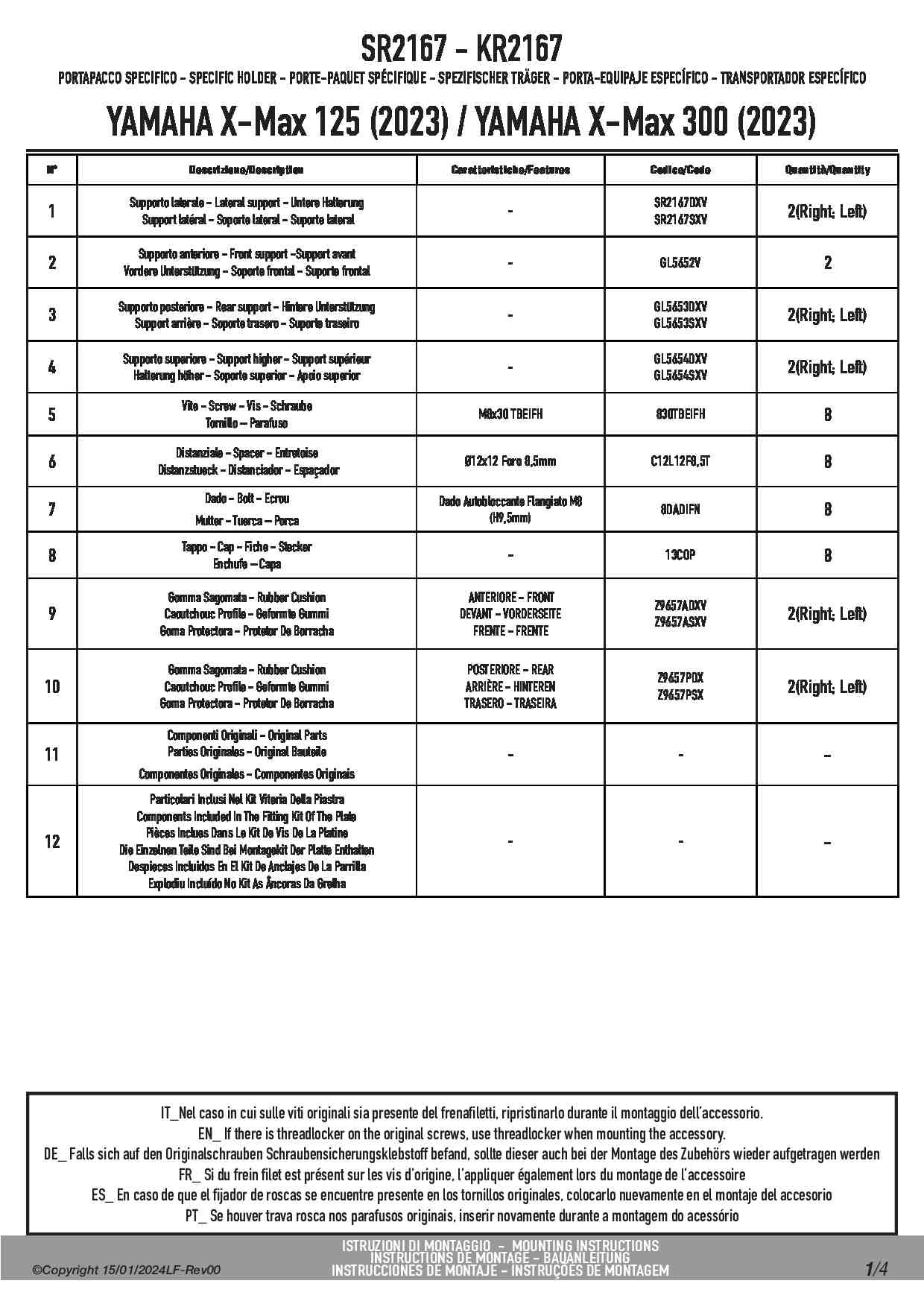 Stelaż kufra centralnego Kappa KR2167 do skutera Yamaha X-Max 125 / 300 (23-25) / X-Max 300 Tech MAX (25)