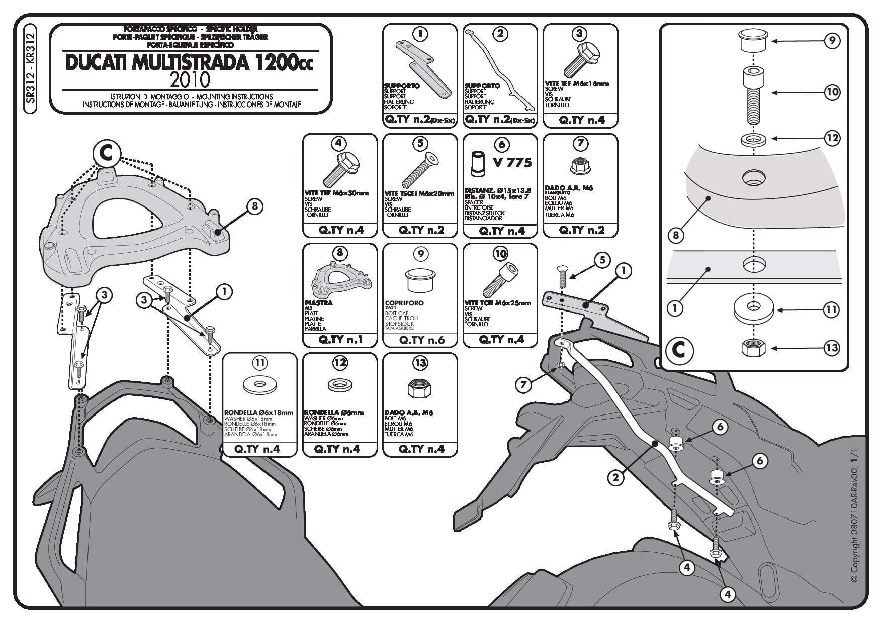 Stelaż kufra centralnego Kappa KR312 do motocykla Ducati Multistrada 1200 (10-14)