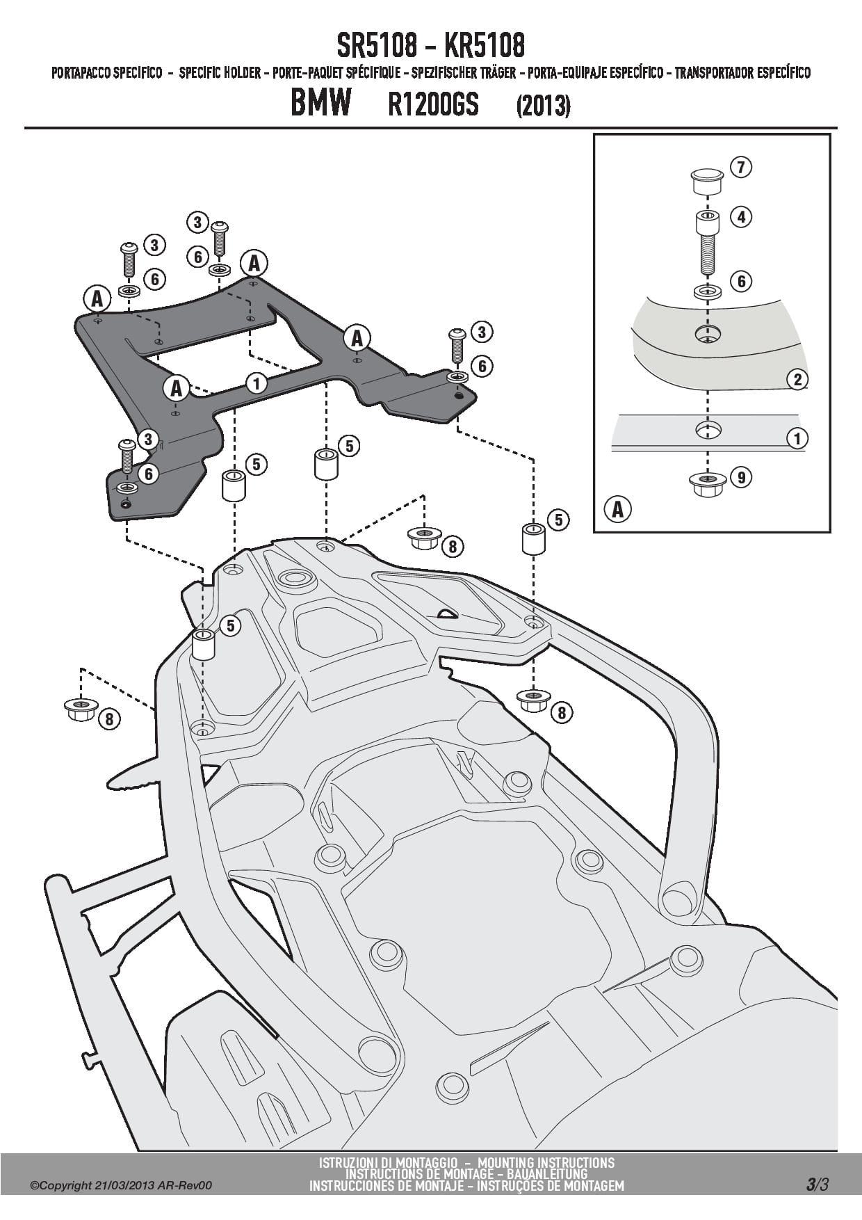 Stelaż kufra centralnego Kappa KR5108 do motocykla BMW R 1200 GS (13-18) / R 1250 GS (19-23)