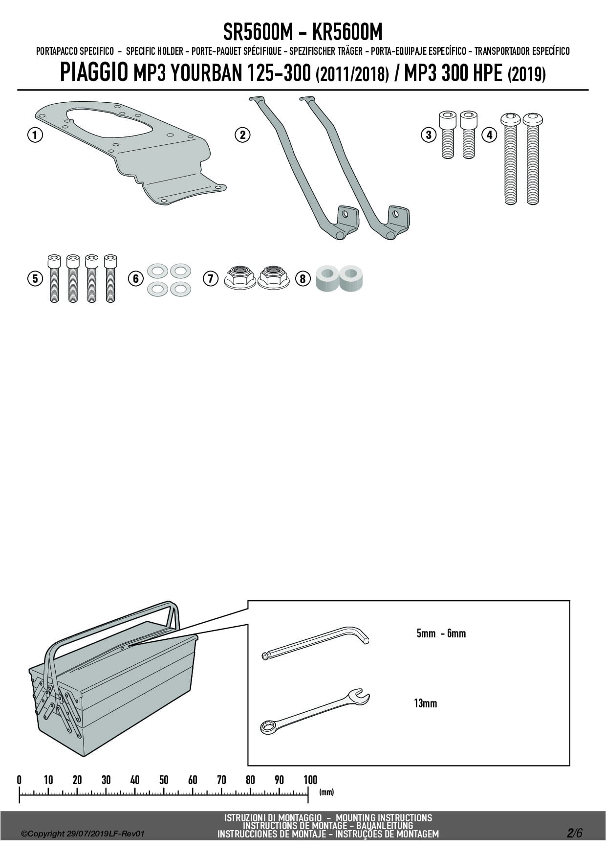 Stelaż kufra centralnego Kappa KR5600M do skutera Piaggio MP3 Yourban 125-300 (11-18) / MP3 300 HPE (19-24)