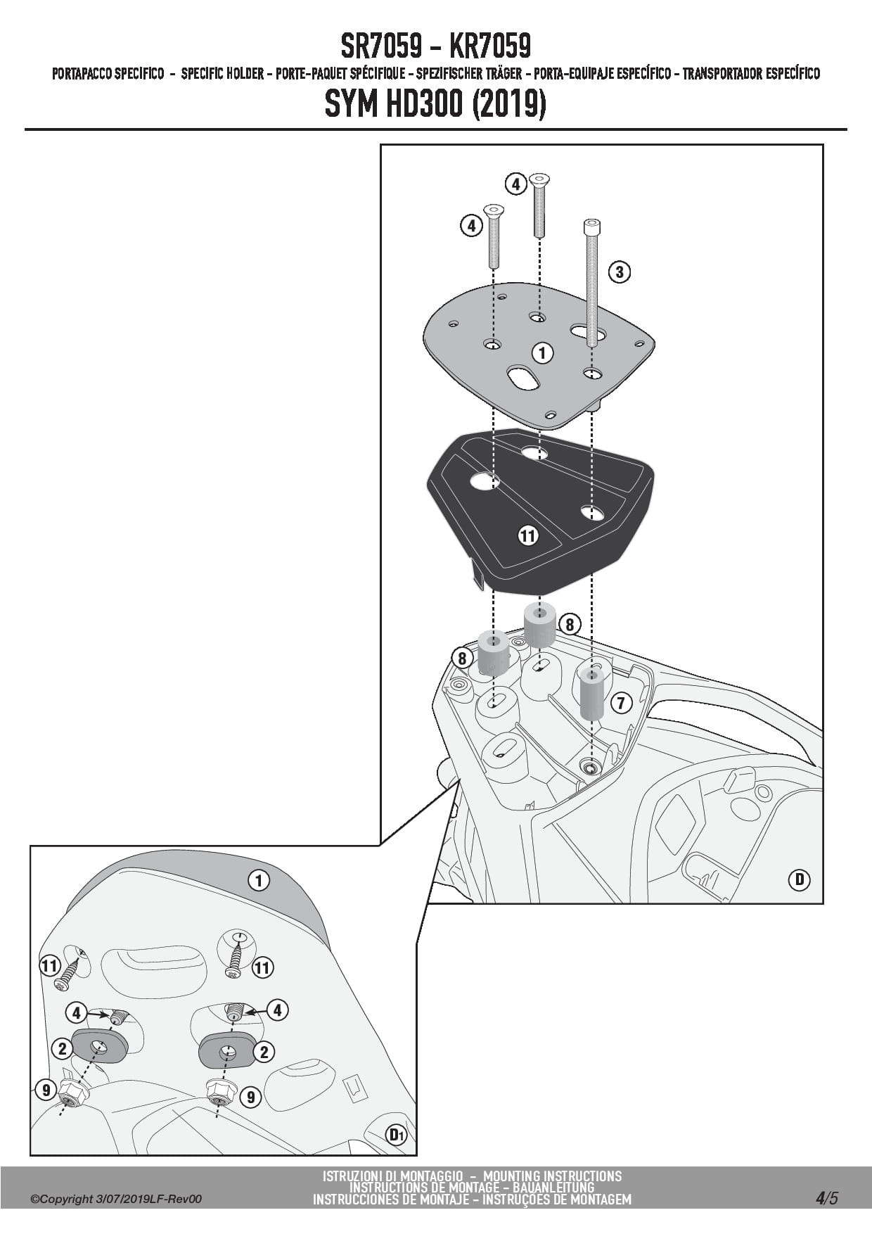 * Skuter SYM HD300 wychodził z dwoma różnymi bagażnikami fabrycznymi. Sprawdź czy potrzebujesz KR7059 czy KR7057.