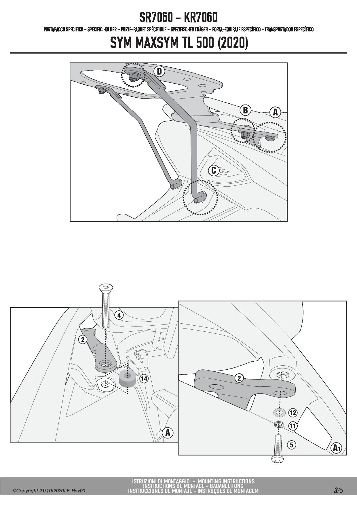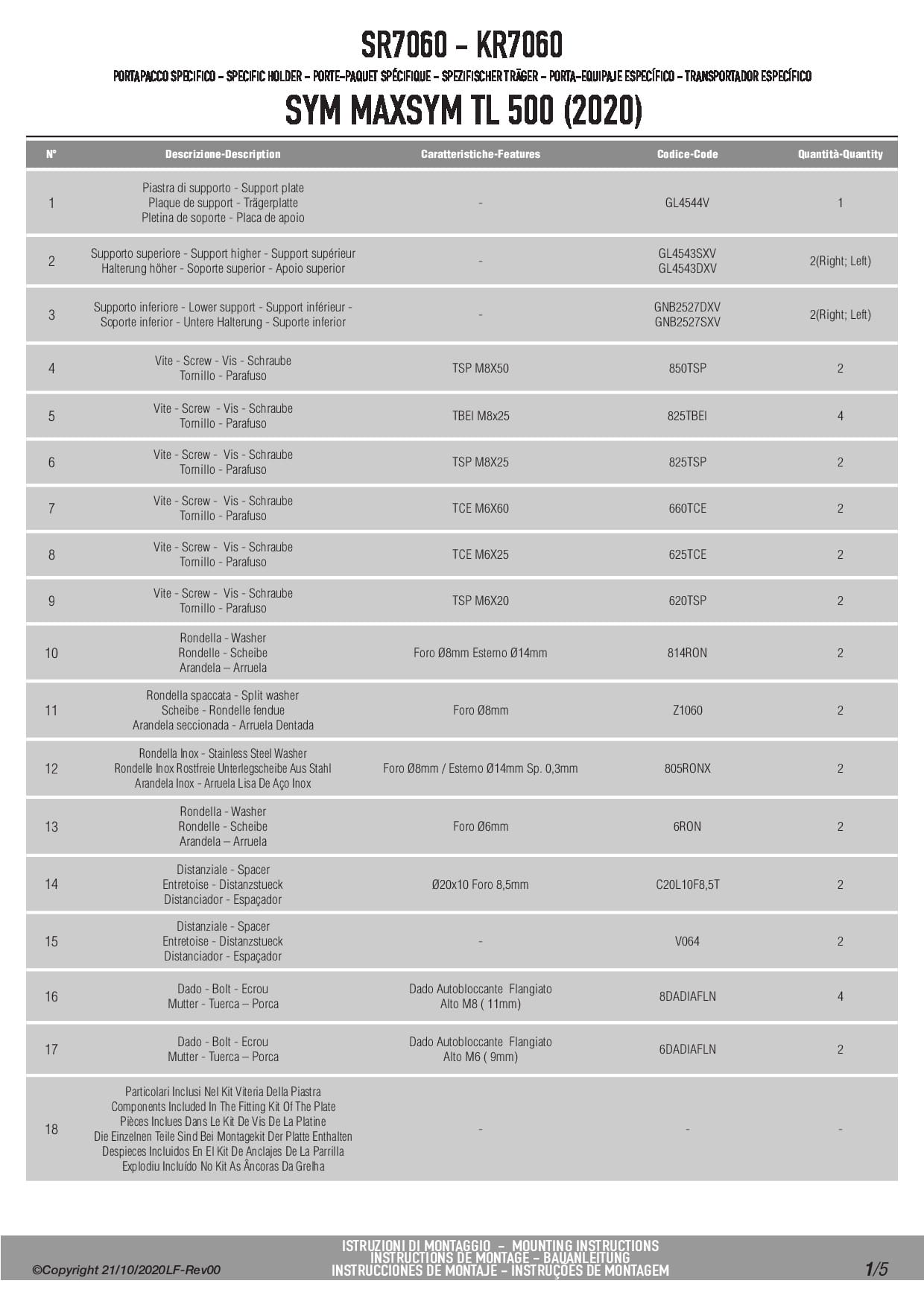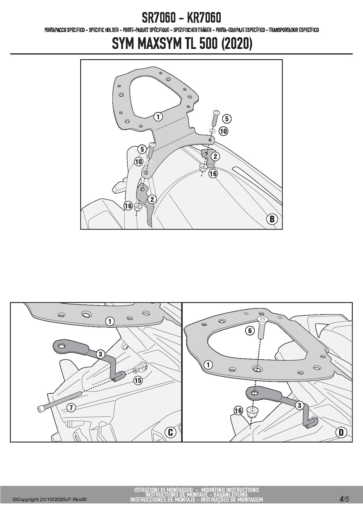 Stelaż kufra centralnego Kappa KR7060 do skutera Sym Maxsym TL 500 / 508 (20-25)