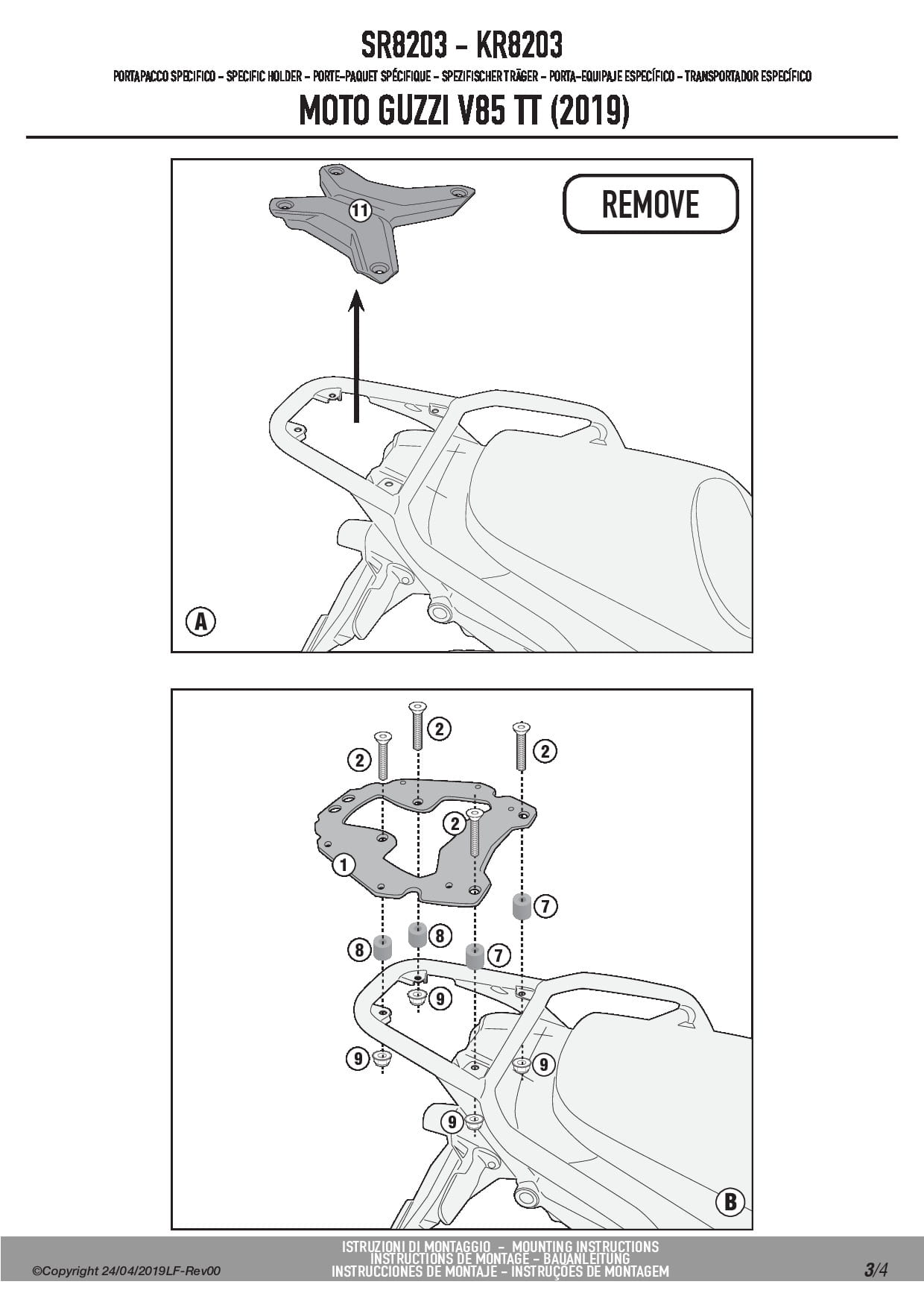 Stelaż kufra centralnego Kappa KR8203 do motocykla Moto Guzzi V85 TT (19-23)