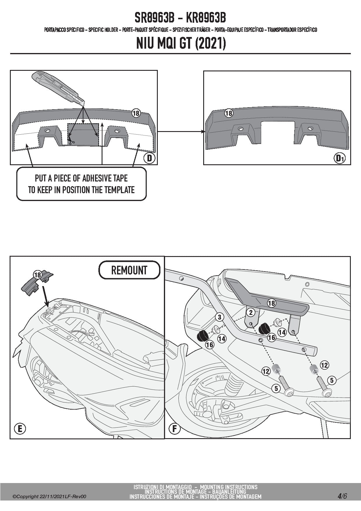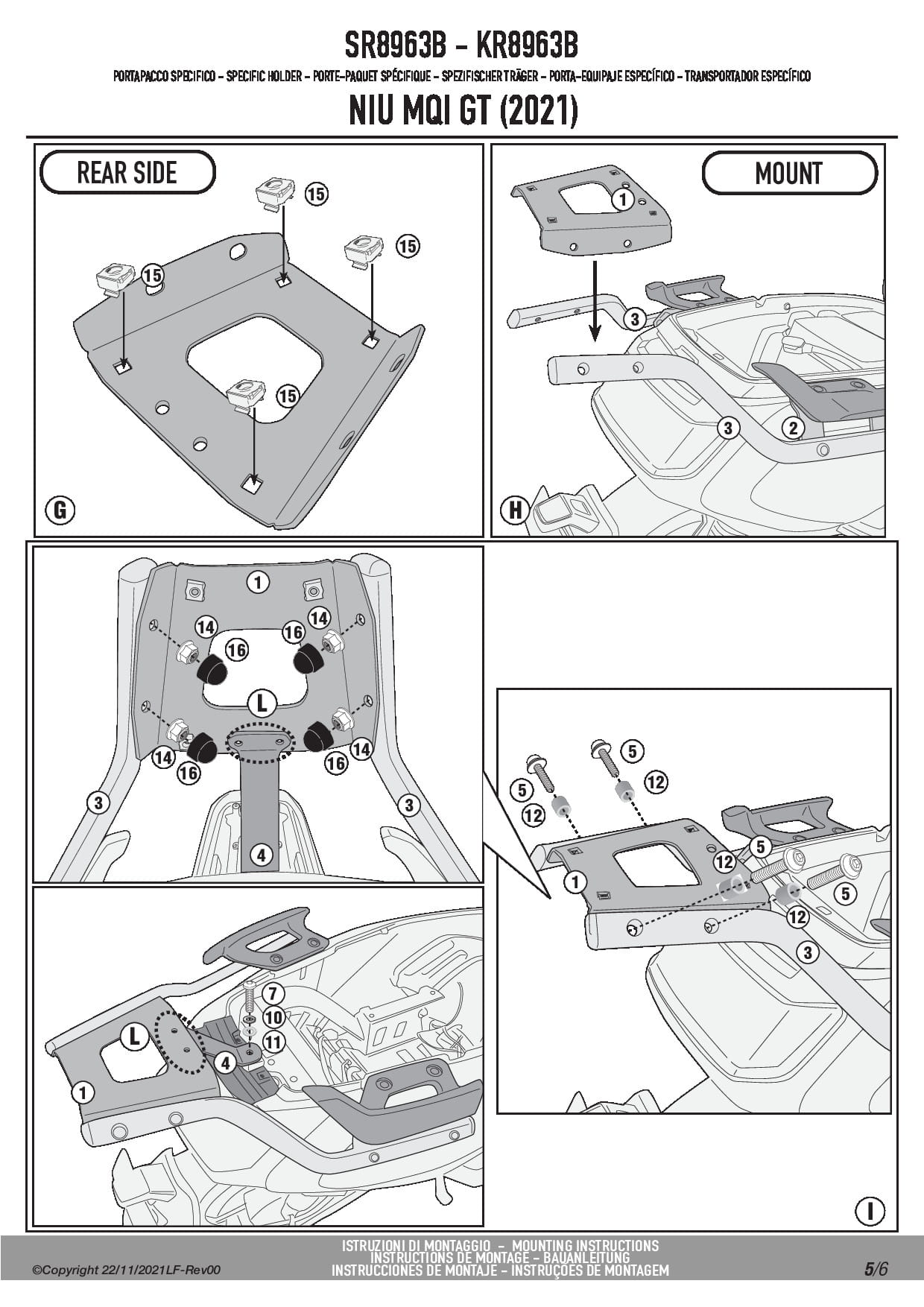 Stelaż kufra centralnego Kappa KR8963B do skutera NIU MQi GT (21-25)
