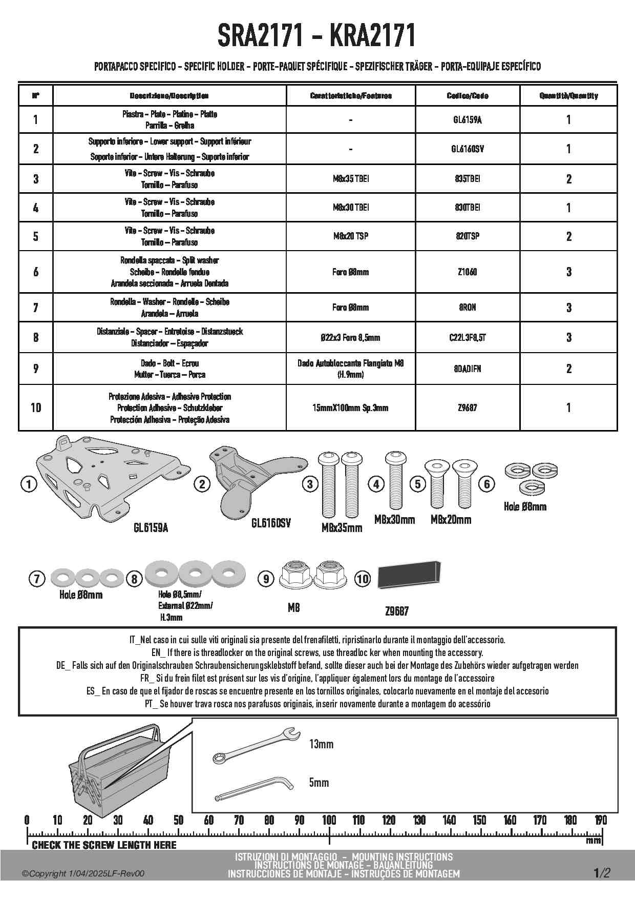 Seria "KRA" to rozwinięta wersja stelaży "KR" w komplecie z piękną, aluminiową płytą w systemie MONOKEY, która podkreśla linię motocykla. Stelaże przeznaczone głównie do turystycznych motocykli z serii ADVENTURE, ale zdarzają się także wyjątki dla sportowo-turystycznych jednośladów. Stelaże z tej serii polecamy połączyć z kuframi aluminiowymi, gdzie całość na motocyklu prezentuje się kapitalnie. Producent określa wytrzymałość stelaża na 6kg, ale gdy zachodzi potrzeba utrzymania większego ciężaru bez problemu sobie poradzi :)